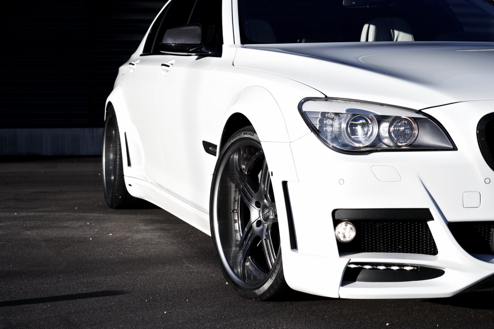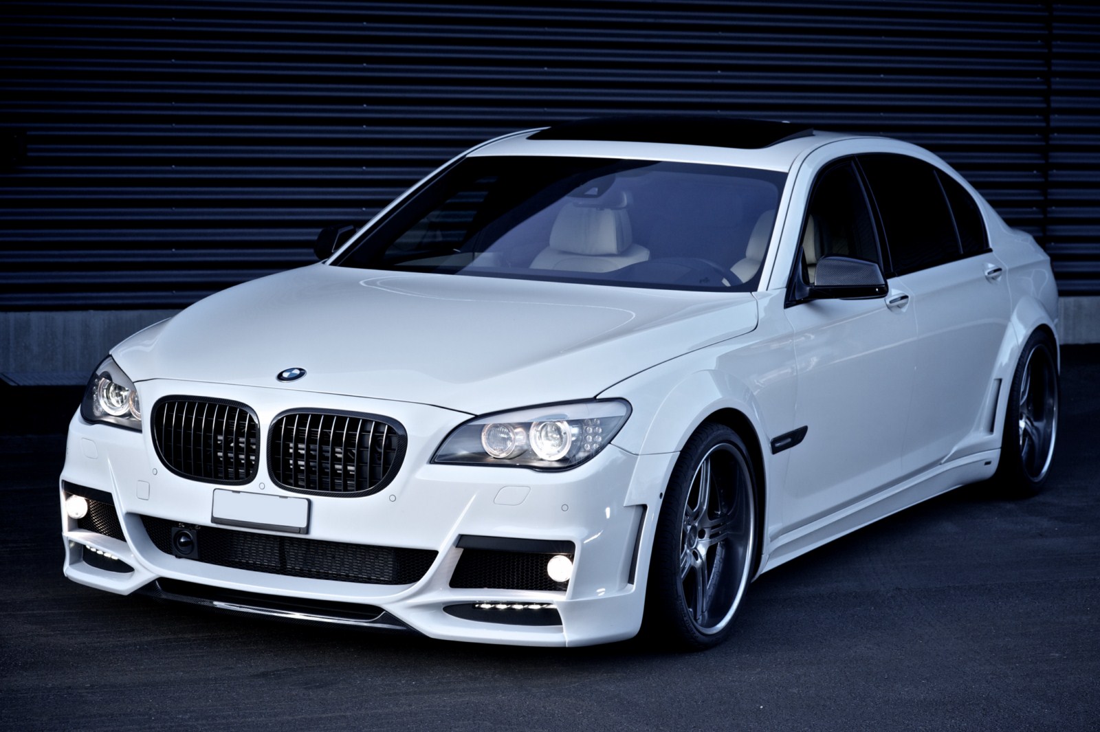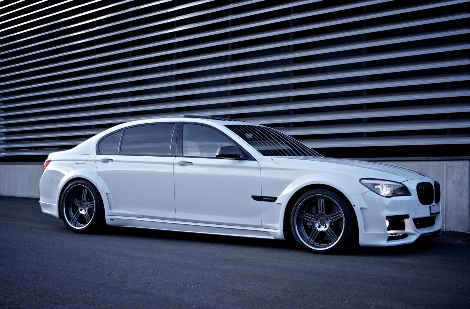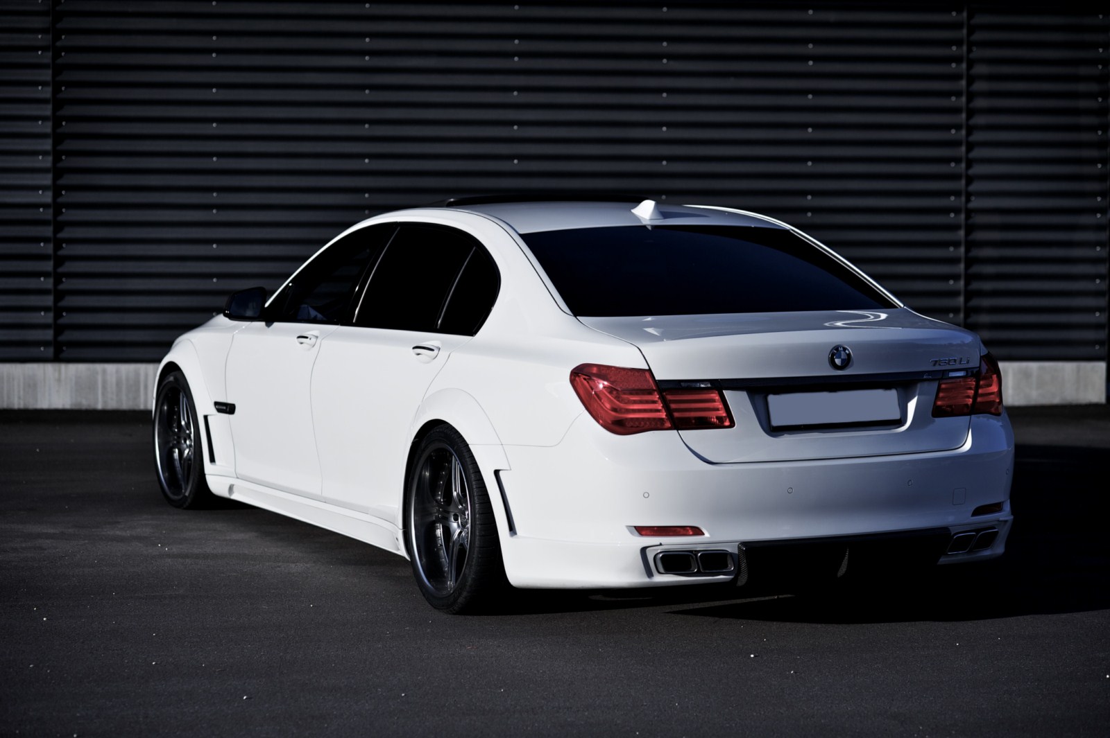 An der Heckschürze, den Seitenschwellern und den vier Türen wurde ebenfalls Hand angelegt, um die bereits angesprochenen Radlaufverbreiterungen harmonisch ans Gesamtdesign anzupassen. Dennoch dürfte die sportliche Optik an einem BMW 7er nicht nur Freunde finden. Außerdem ist das Tuning mit einer Tieferlegung verbunden, die den 7er etwas näher an den Asphalt bringt.