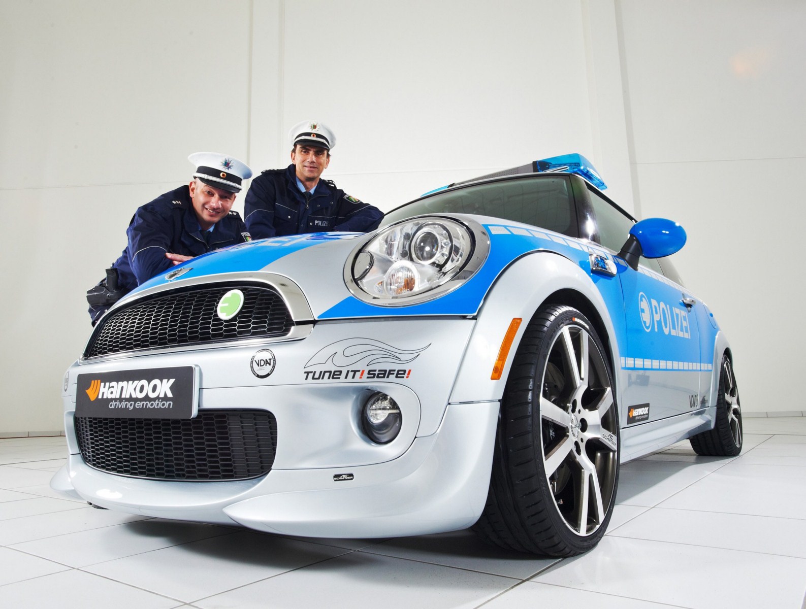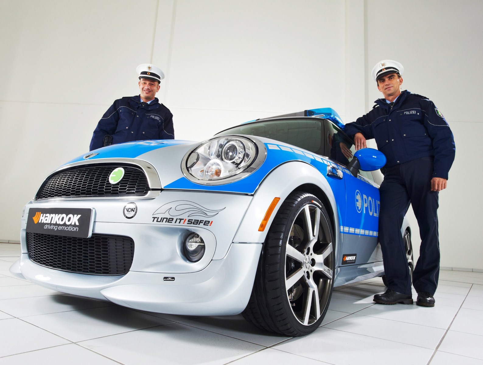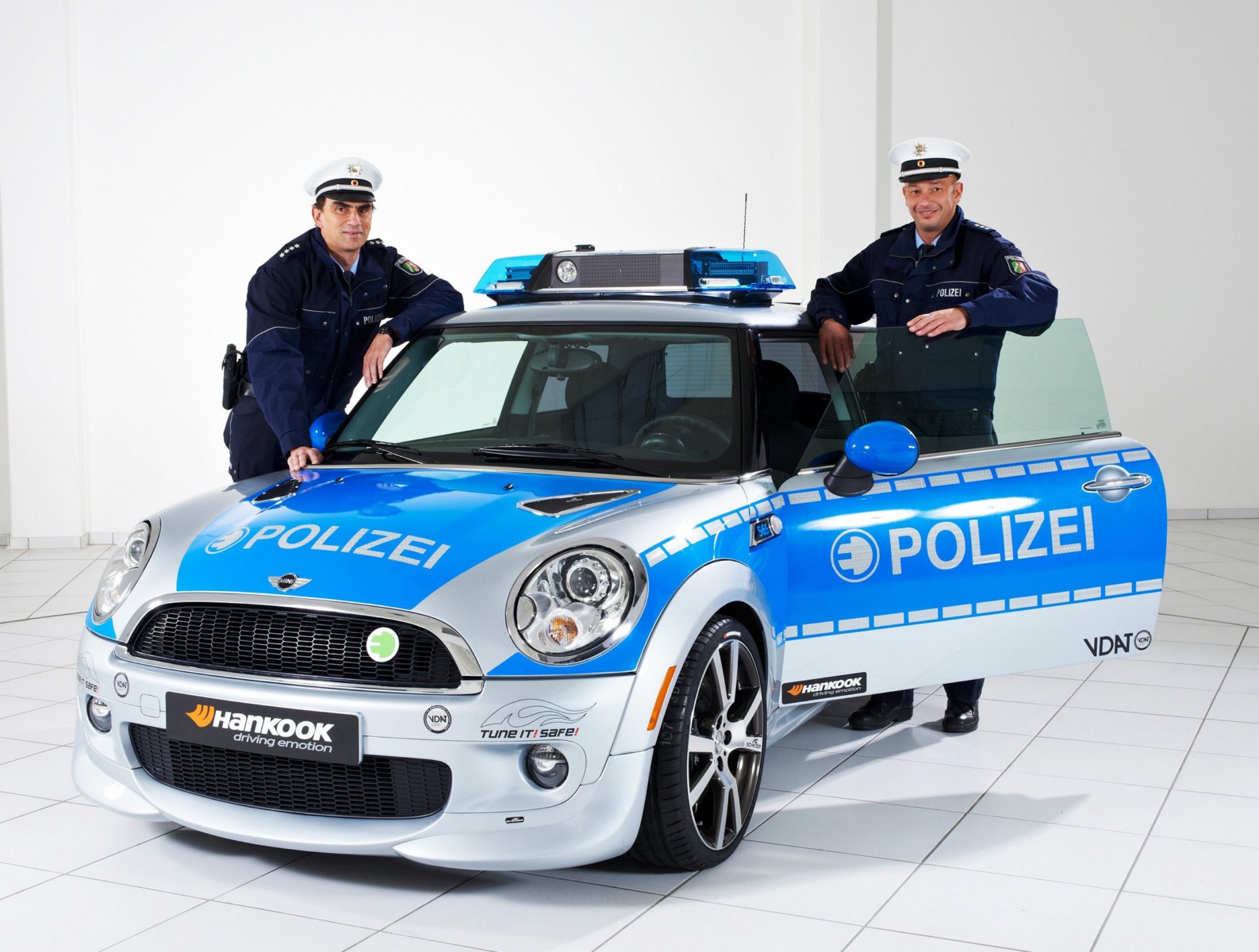 Der Verband Deutscher Automobil Tuner e.V. (VDAT) wirbt seit längerem mit der Kampagne Tune it! Safe! für sicheres Tuning und lässt zu diesem Zweck immer wieder verschiedene Fahrzeuge von namhaften Mitgliedern des Verbands zu Polizei-Fahrzeugen umrüsten. Somit soll klar werden, dass Tuning und Sicherheit zusammengehören. Nachdem AC Schnitzer bereits vor einiger Zeit ein BMW 123d Coupé für die Kampagne umgerüstet hatte, folgt in Form des MINI E nun erstmals ein lokal emissionsfreies Fahrzeug.
