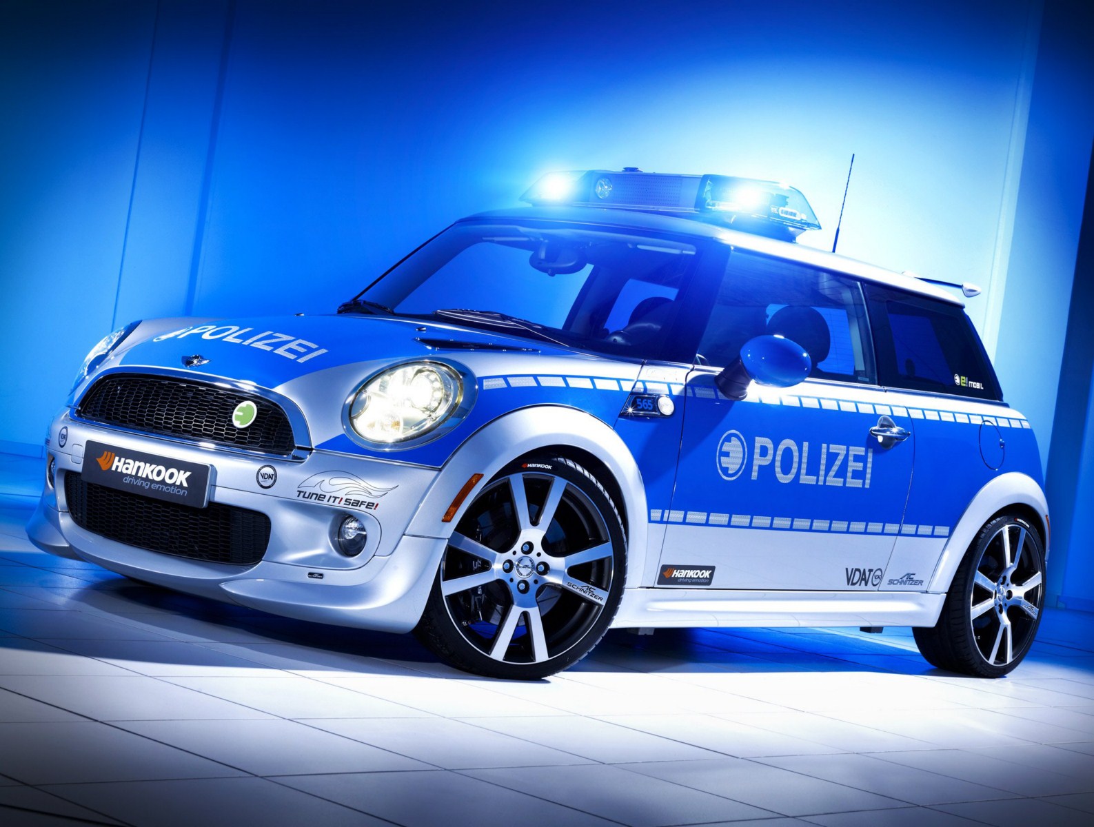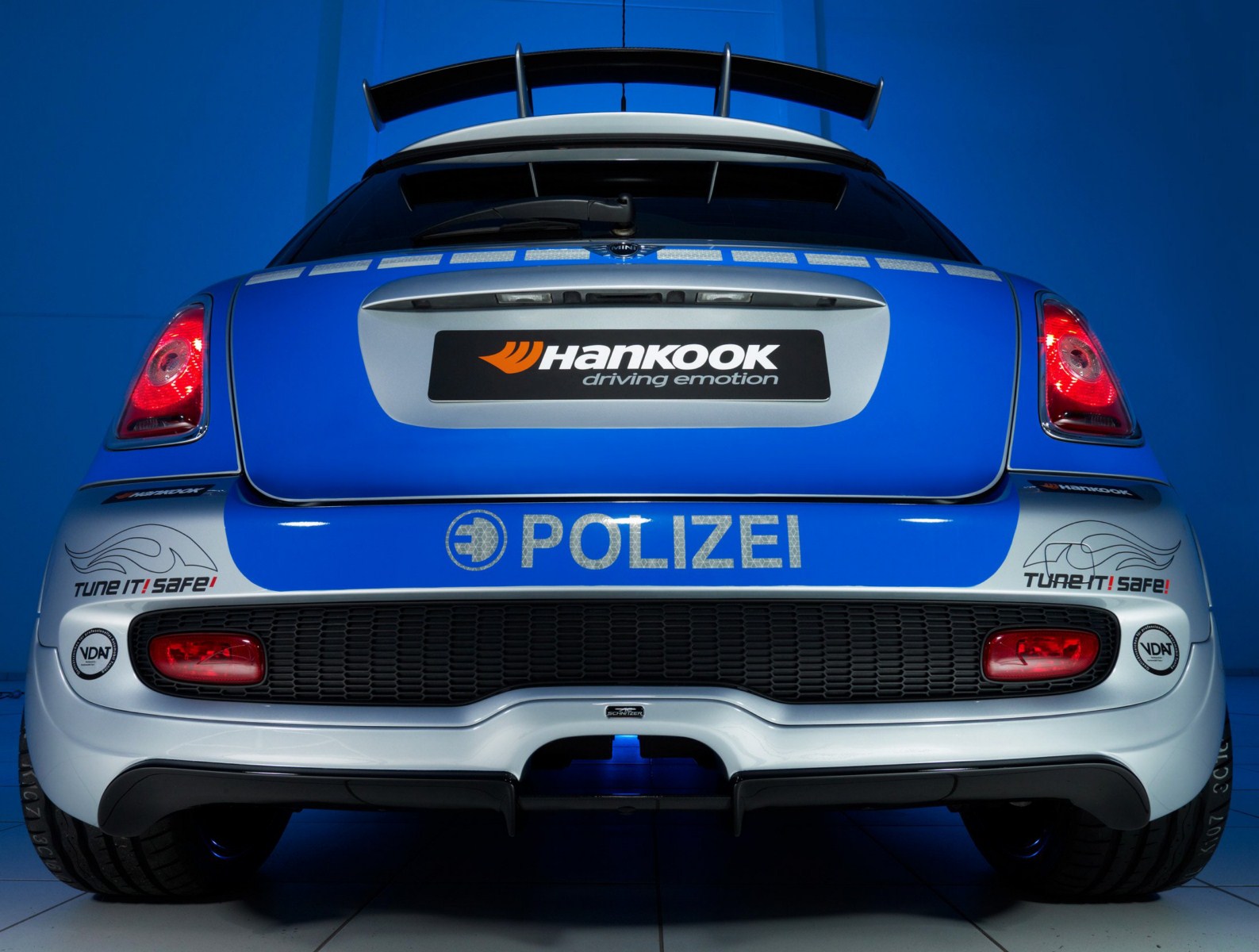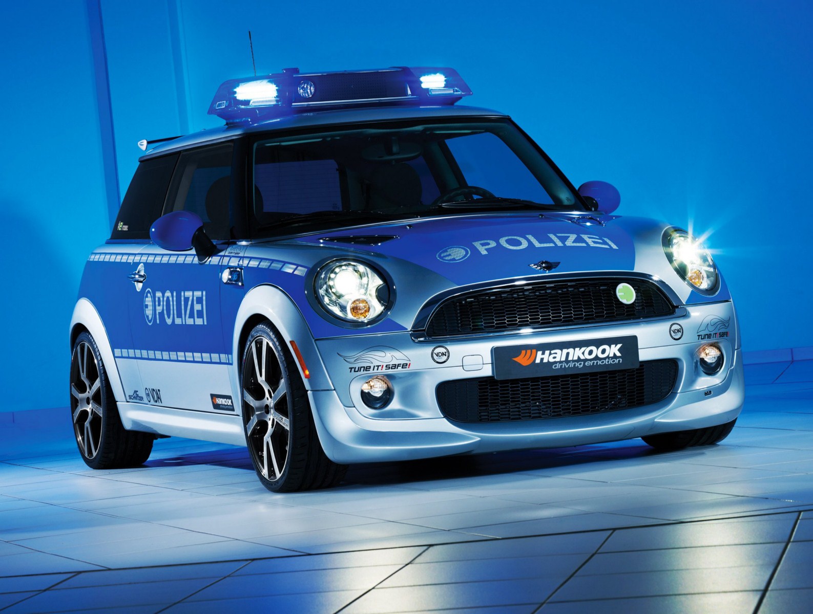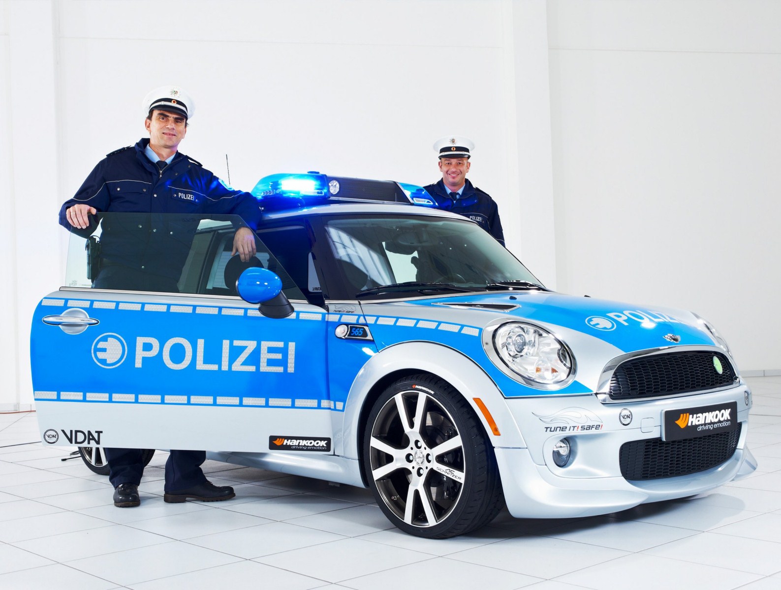 Der Verband Deutscher Automobil Tuner e.V. (VDAT) wirbt seit längerem mit der Kampagne Tune it! Safe! für sicheres Tuning und lässt zu diesem Zweck immer wieder verschiedene Fahrzeuge von namhaften Mitgliedern des Verbands zu Polizei-Fahrzeugen umrüsten. Somit soll klar werden, dass Tuning und Sicherheit zusammengehören. Nachdem AC Schnitzer bereits vor einiger Zeit ein BMW 123d Coupé für die Kampagne umgerüstet hatte, folgt in Form des MINI E nun erstmals ein lokal emissionsfreies Fahrzeug.