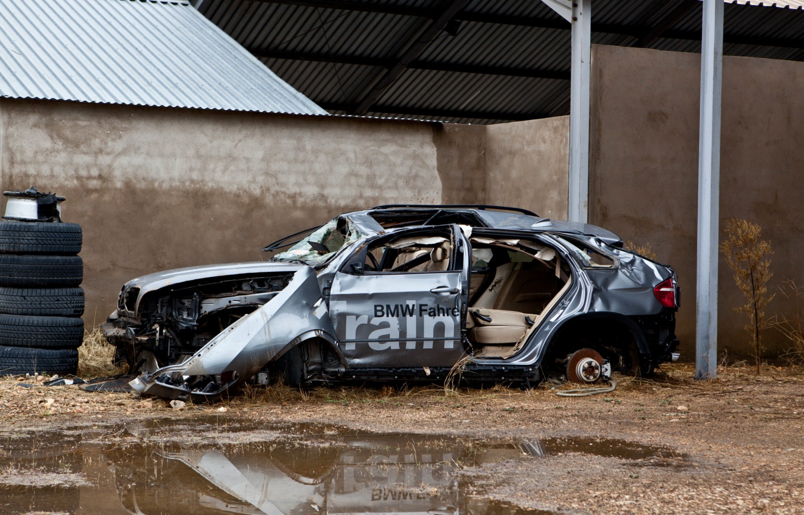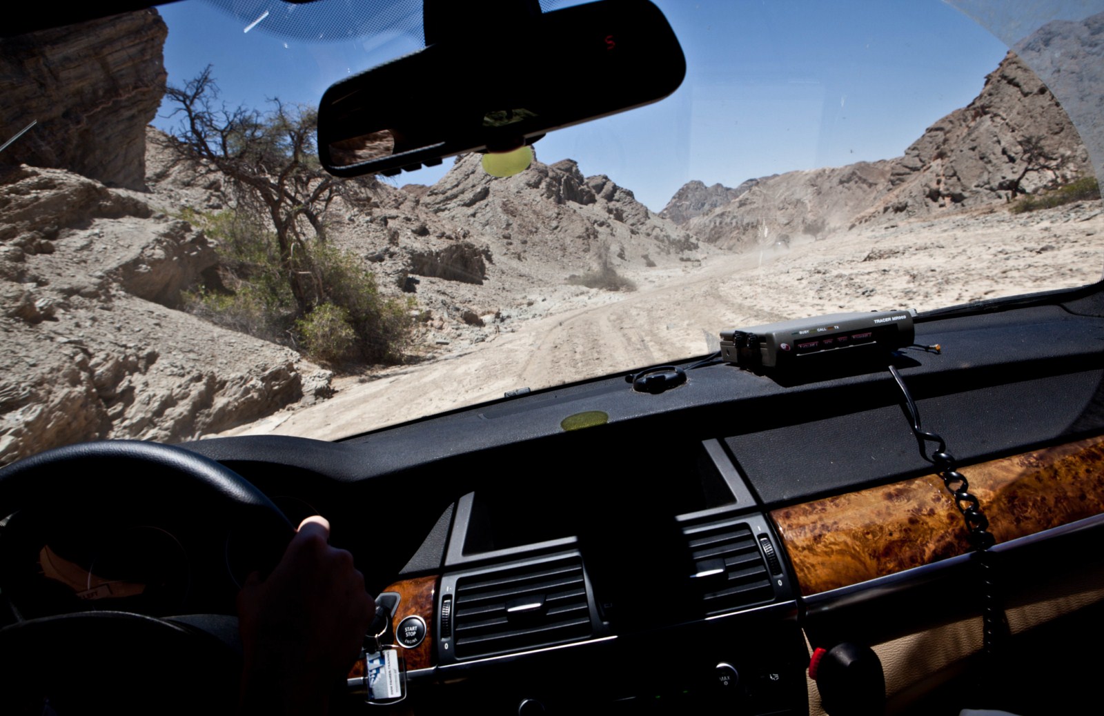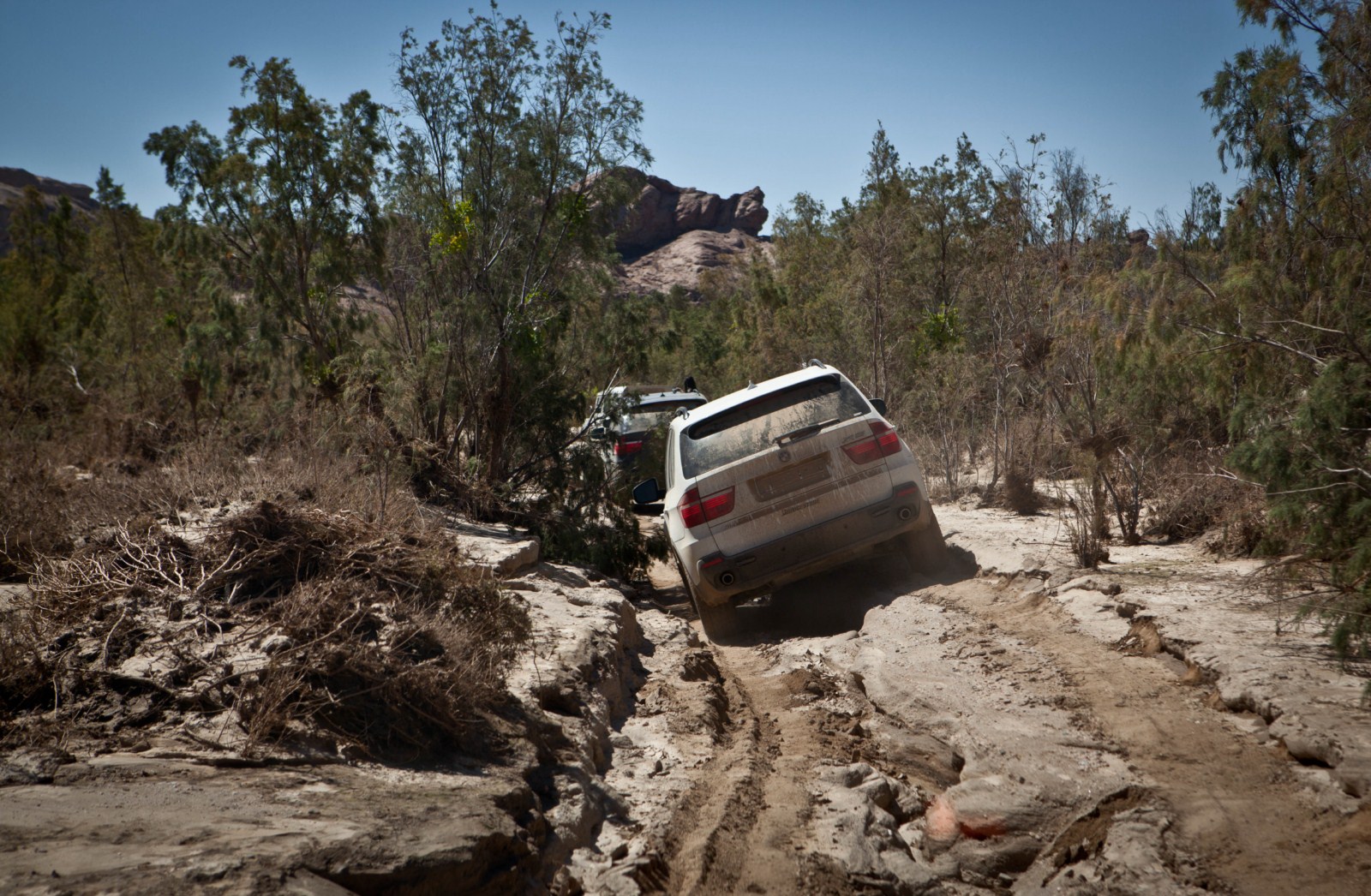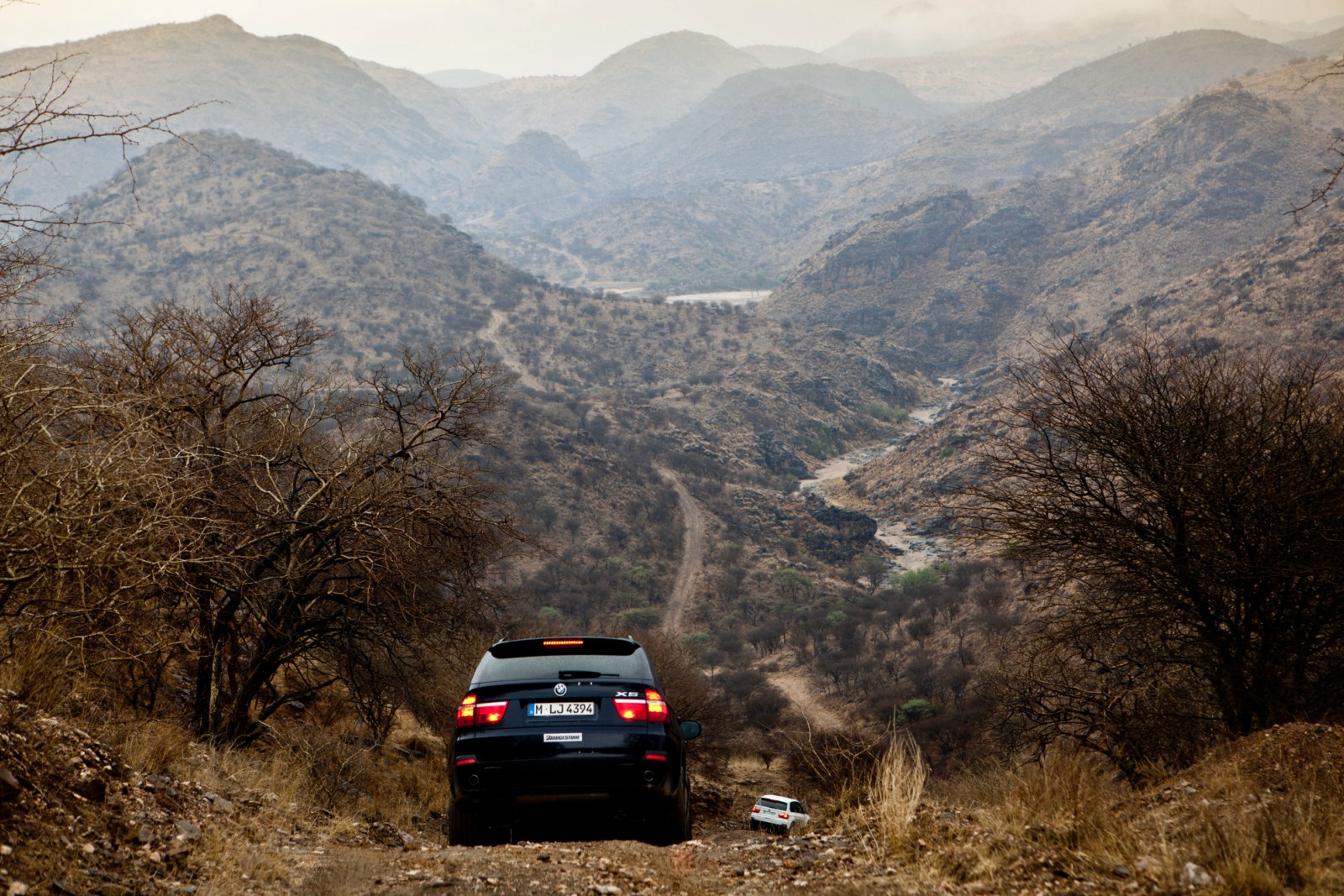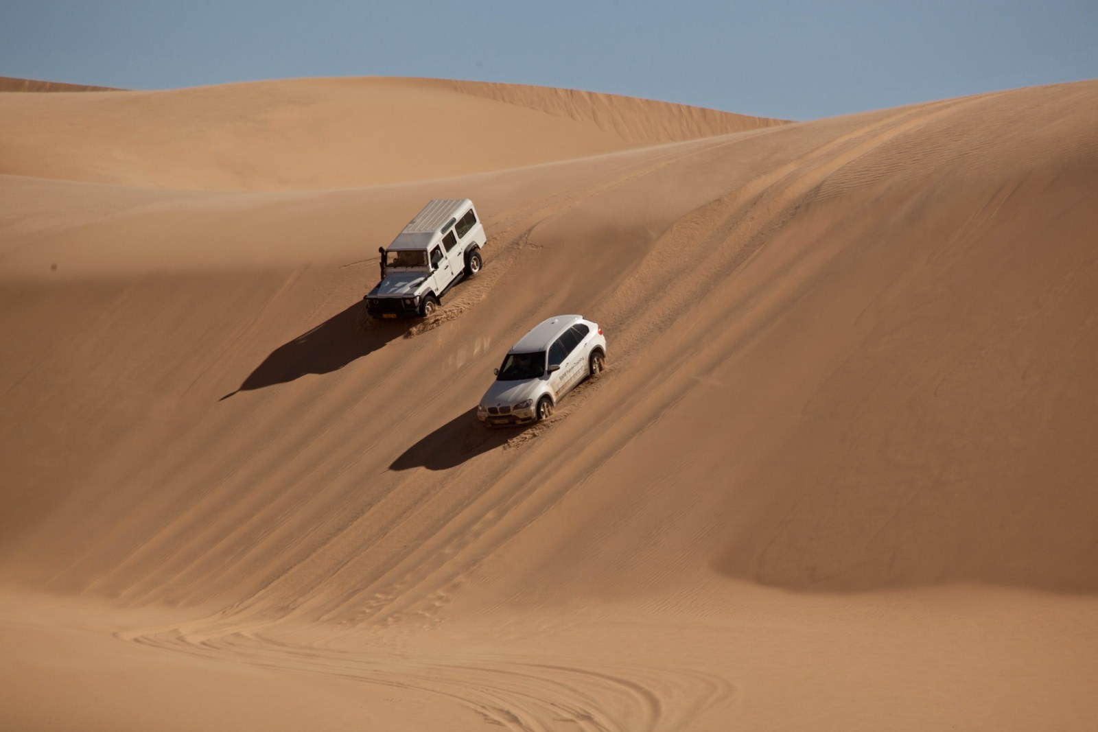 Das Ziel des fünften Tages war die rund 300 Kilometer entfernte Hafenstadt Swakopmund. Auf dem Weg lagen nicht nur Uran- und Kupferminen, sondern auch diverse Canyons, deren Durchquerung eine echte Herausforderung darstellte. Nachdem sich zunächst ein X5 und dann auch noch der Land Rover Defender festgefahren hatten, konnte die Fahrt nur noch mit der Hilfe eines zufällig vorbeikommenden weiteren Geländewagens von Toyota fortgesetzt werden.