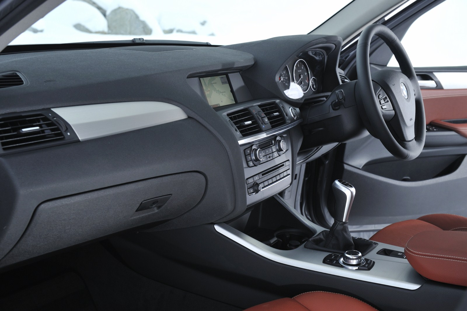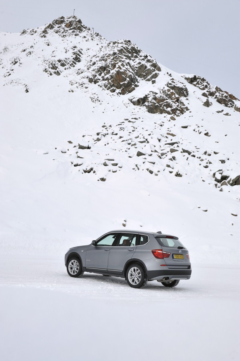 Im Rahmer dieser Aufnahmen sind offenbar noch einige weitere Fotos im Umfeld des österreichischen Sölden entstanden, die uns den BMW X3 F25 in winterlicher Umgebung zeigen. Interessant sind die Bilder aber auch mit Blick auf das Interieur, denn wir sehen hier ein weiteres Mal das “kleine” Navigationssystem Business – zwar in der englischen Rechtslenker-Variante mit gespiegeltem Innenraum, aber die große freie Fläche rechts und links des Displays gibt es hier natürlich ebenso.