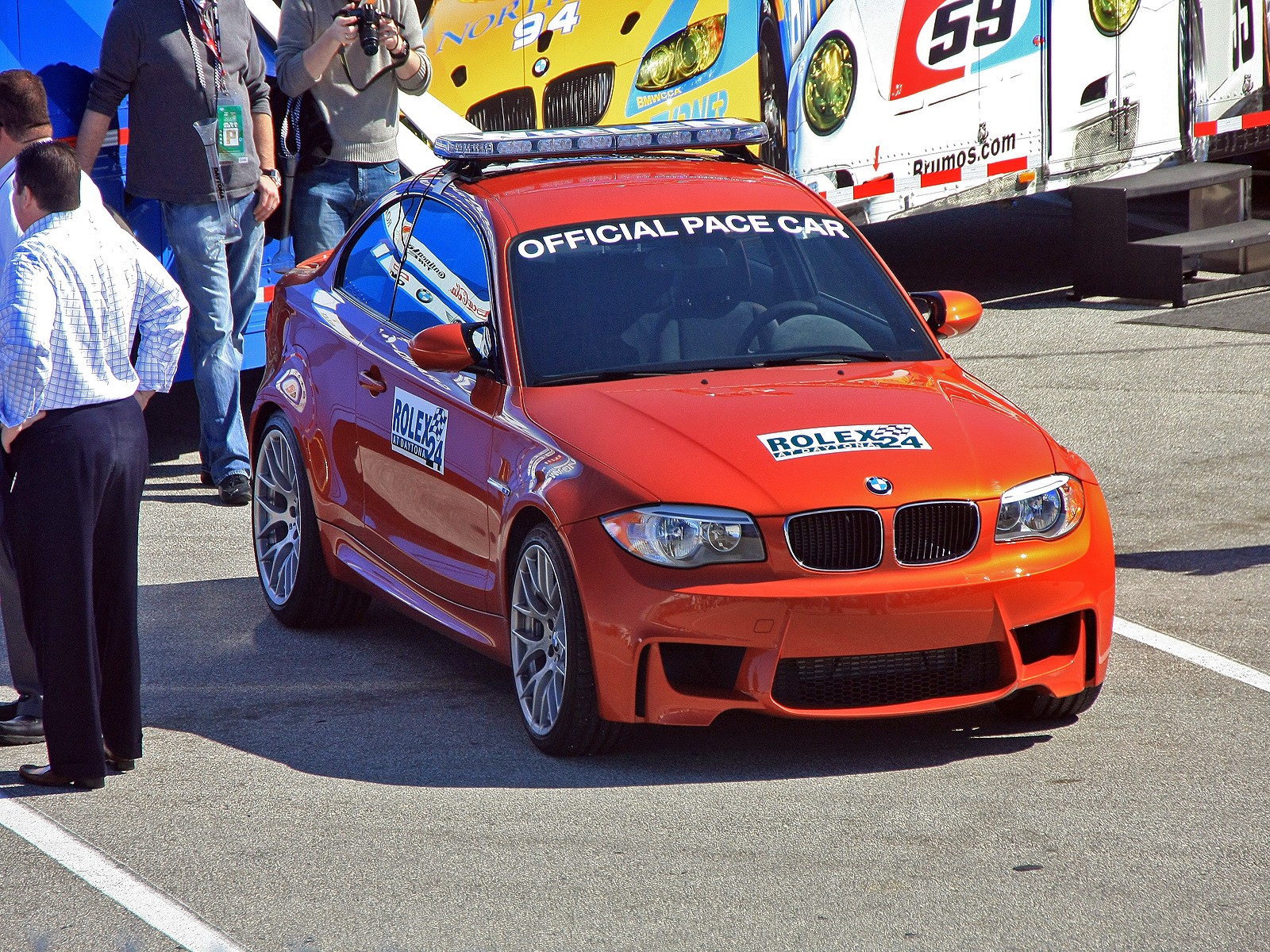 Vom Doppelsieg für den Rennstall von Chip Ganassi bei den 24 Stunden von Daytona am vergangenen Wochenende haben wir bereits berichtet, nun können wir euch dank unserem Leser Marge noch einige weitere Bilder von der Veranstaltung liefern. Neben den Daytona Prototypen mit ihrer fragwürdigen Optik waren aber auch eine ganze Reihe ansehnlicher Fahrzeuge am Start, darunter mehrere BMW M3 Coupés (E92) und natürlich das schon angesprochene Pace Car – ein BMW 1er M Coupé in Valencia Orange Metallic.