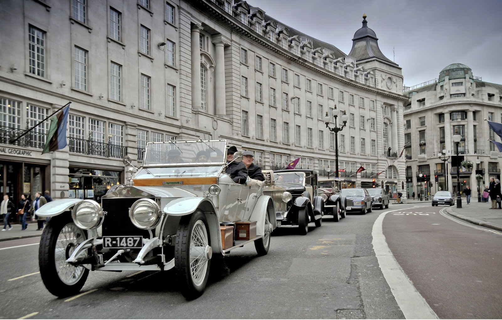 Die Tour führte die 100 automobilen Gratulanten nicht nur an diversen Sehenswürdigkeiten vorbei, sondern auch an wichtigen Orten aus der Geschichte von Rolls-Royce. Beteiligt waren neben den aktuellen Modellen Ghost und Phantom auch die Modelle Silver Ghost, Silver Cloud, Silver Shadow und Silver Spur.