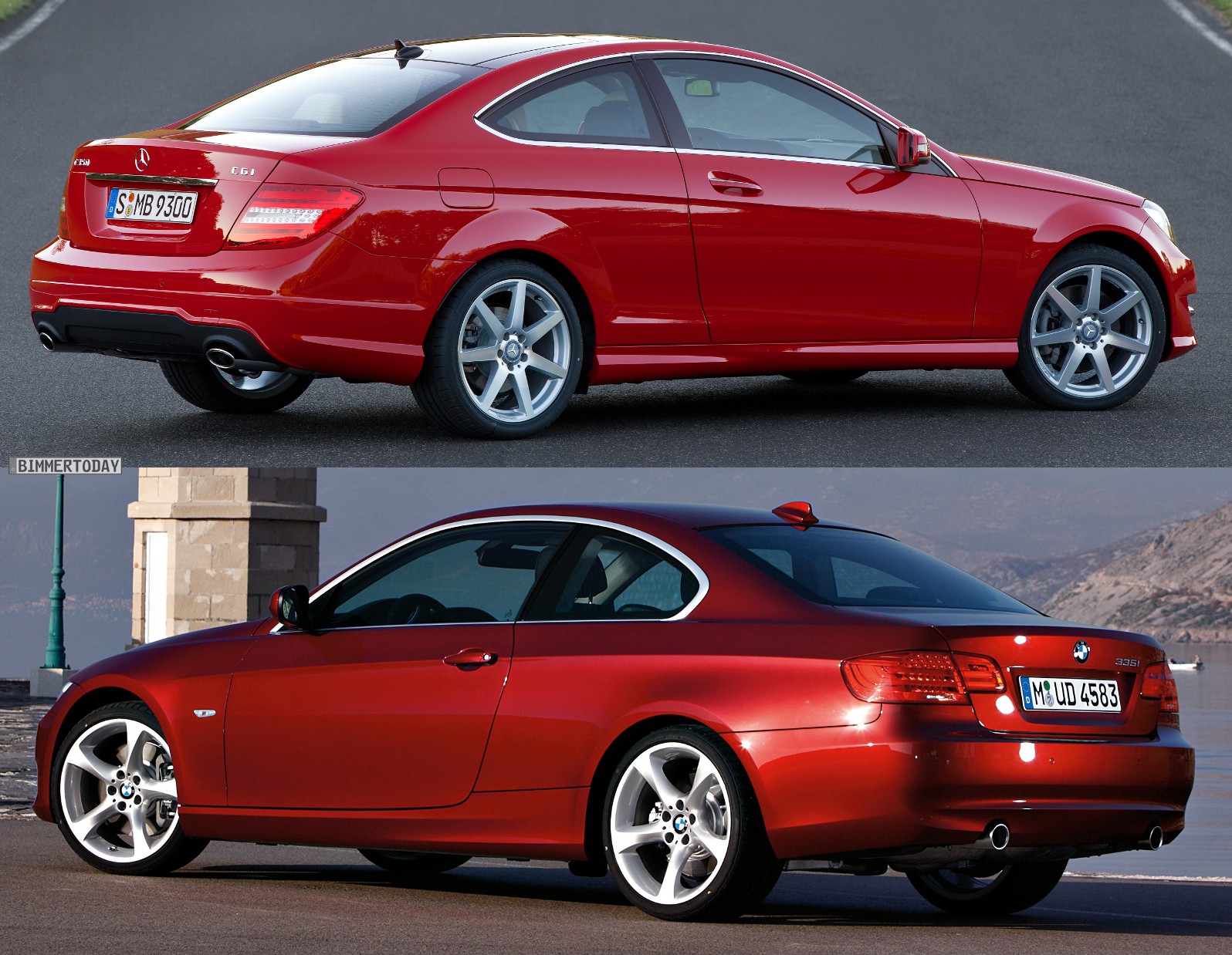 Über das neue Mercedes C-Klasse Coupé haben wir bereits vor wenigen Stunden berichtet, nun gibt es wie gewohnt auch einen Bildvergleich mit dem BMW 3er Coupé E92 LCI. Auch wenn es aus Stuttgart mit dem neun Zentimeter längeren E-Klasse Coupé noch einen weiteren Wettbewerber für das 3er Coupé gibt, soll der Vergleich an dieser Stelle mit dem im Vergleich zum BMW zwei Zentimeter kürzeren C-Klasse Coupé stattfinden.
