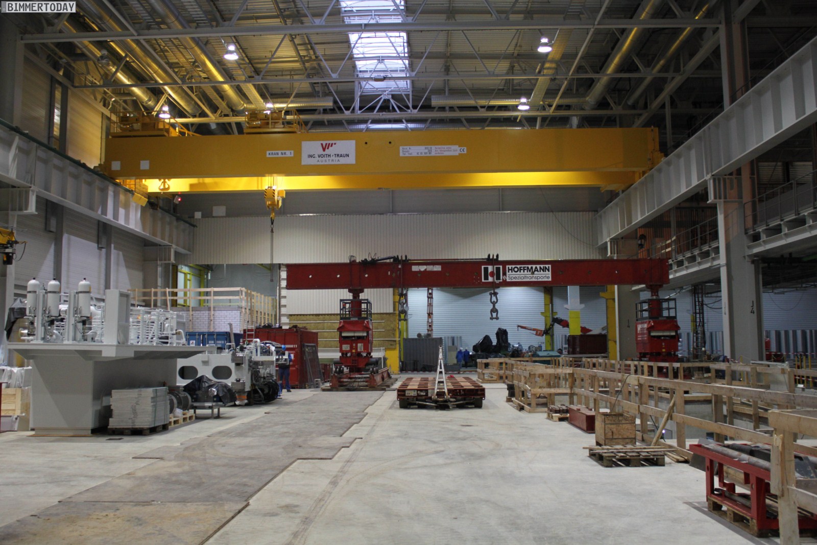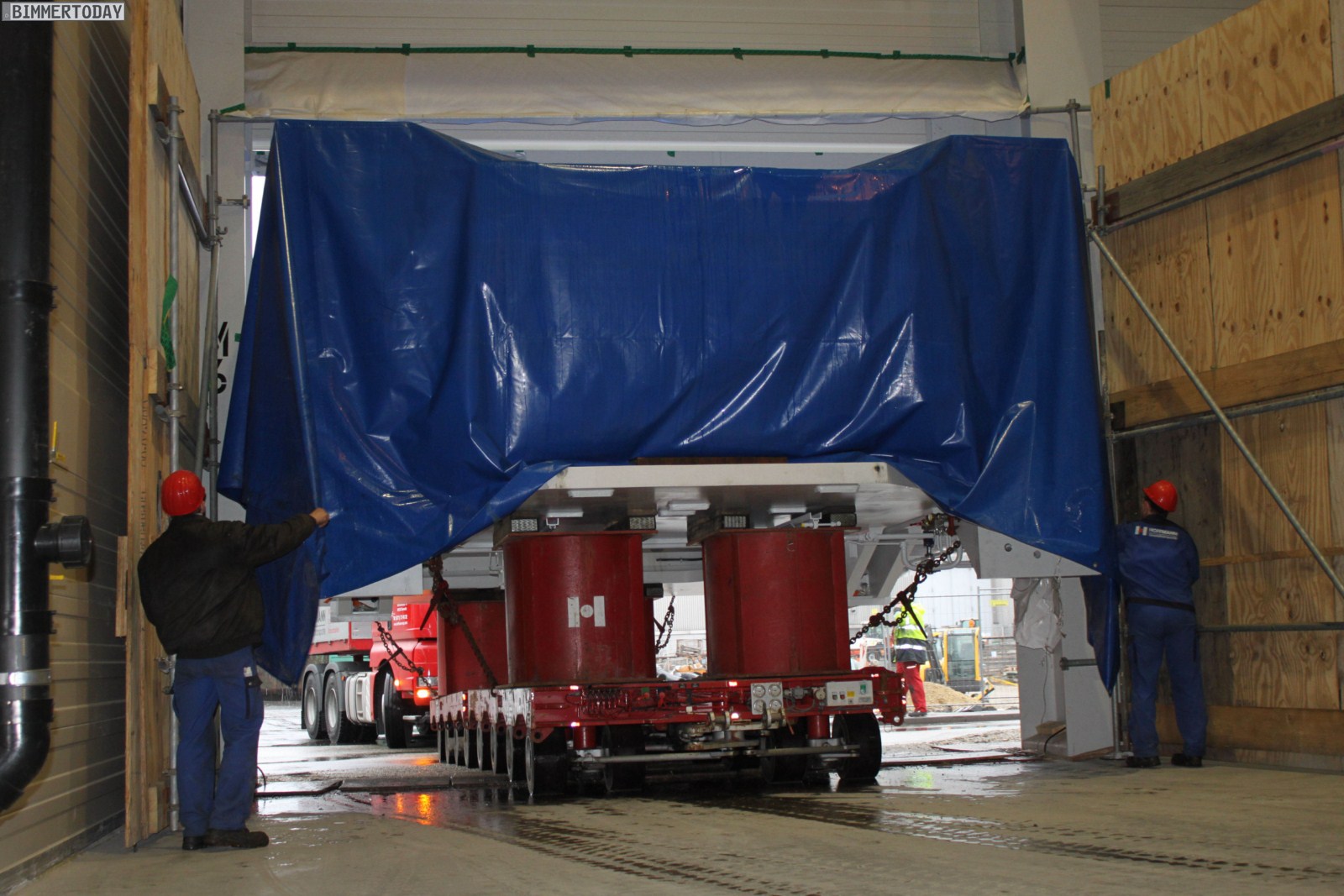 Project i und das Megacity Vehicle werfen ihre Schatten unübersehbar voraus: Im Werk Landshut ist am Samstag eine neue Presse angekommen, mit der die CFK-Elemente für das Megacity Vehicle in Form gebracht werden sollen. Nach dem ersten Spatenstich im Juli 2010 ist in Landshut ein 5.800 Quadratmeter großer Erweiterungsbau aus 1.200 Tonnen Stahl und 5.200 Kubikmetern Beton entstanden, der nun nach und nach mit den Komponenten für die Großserienfertigung der Carbon-Bauteile bestückt wird.