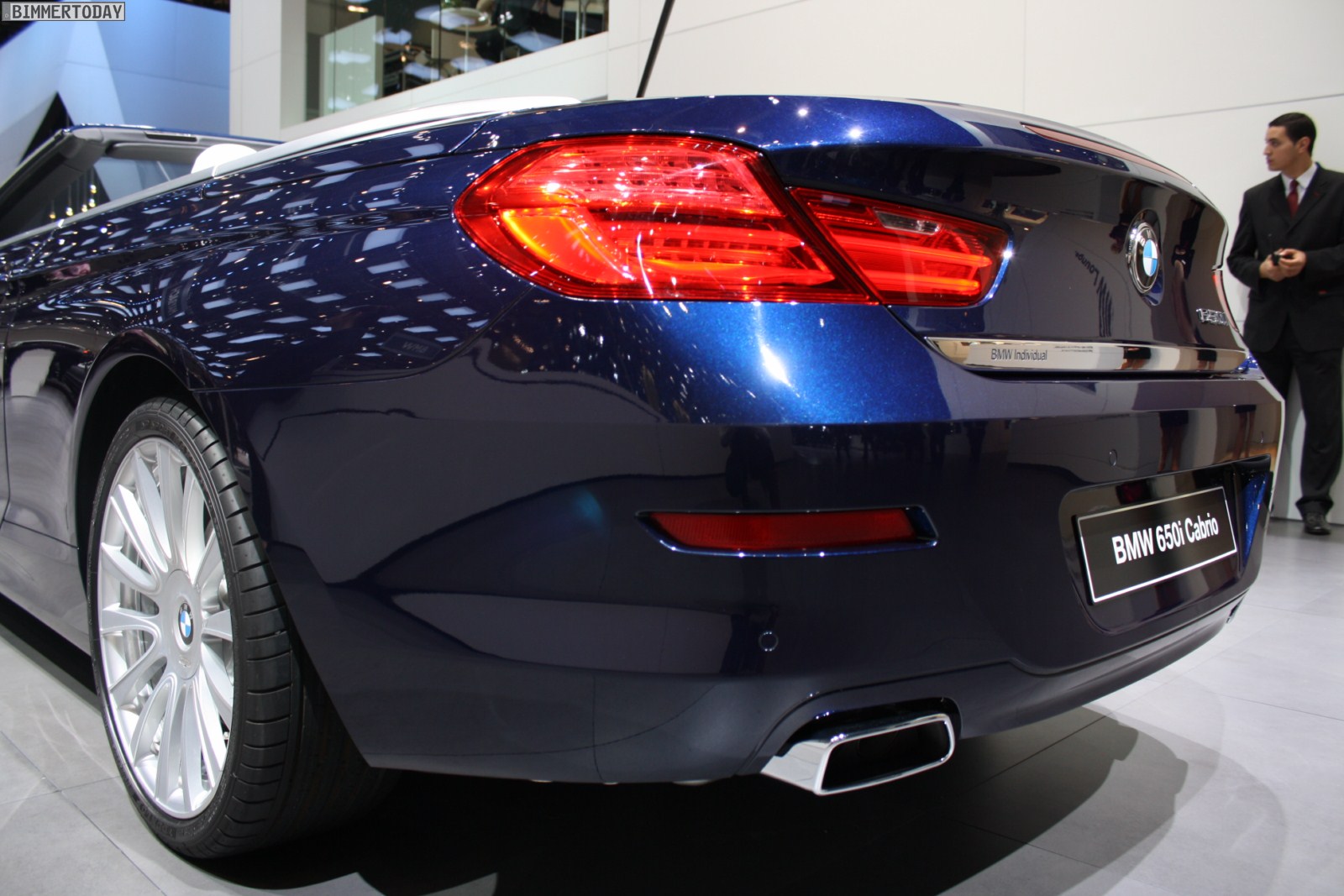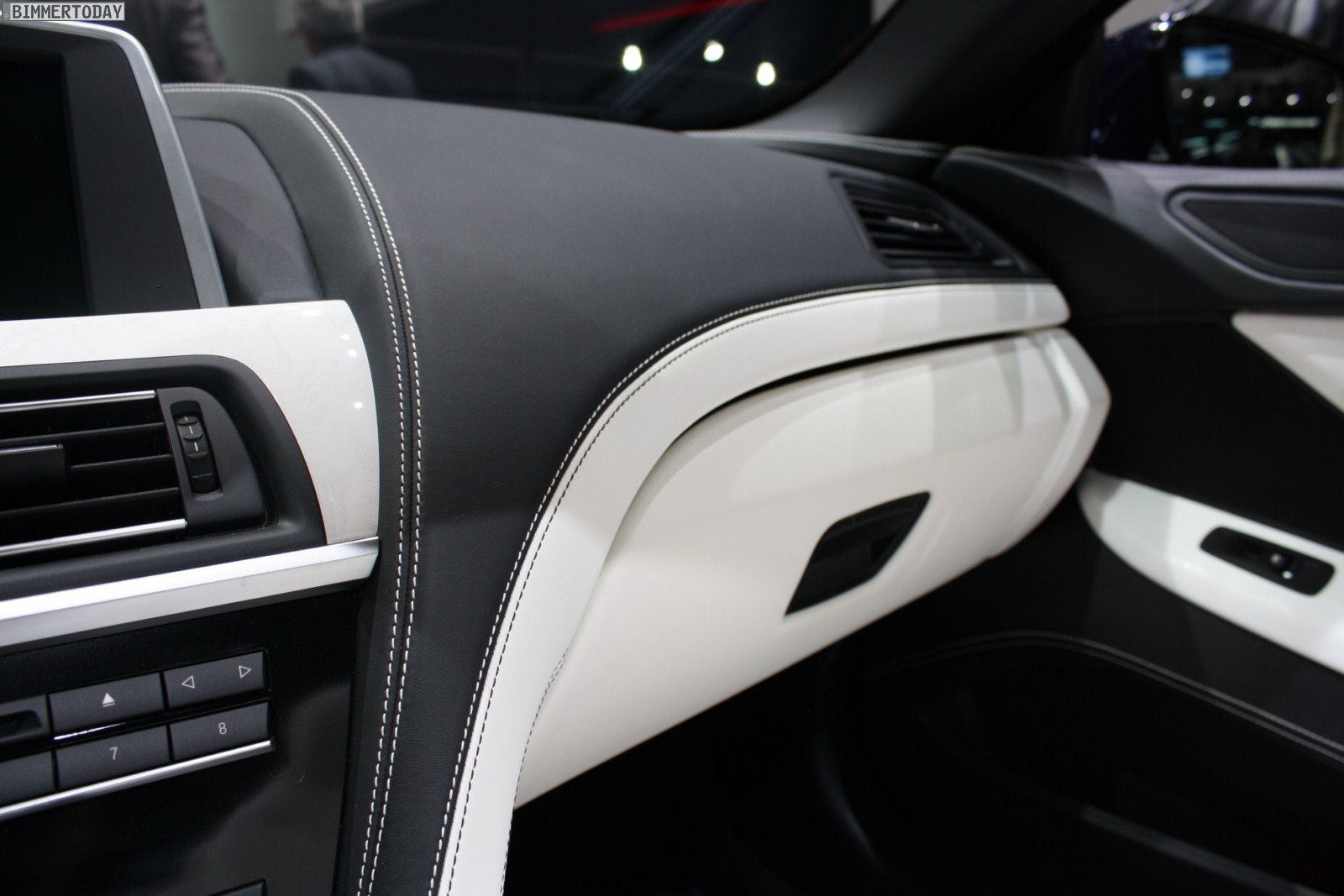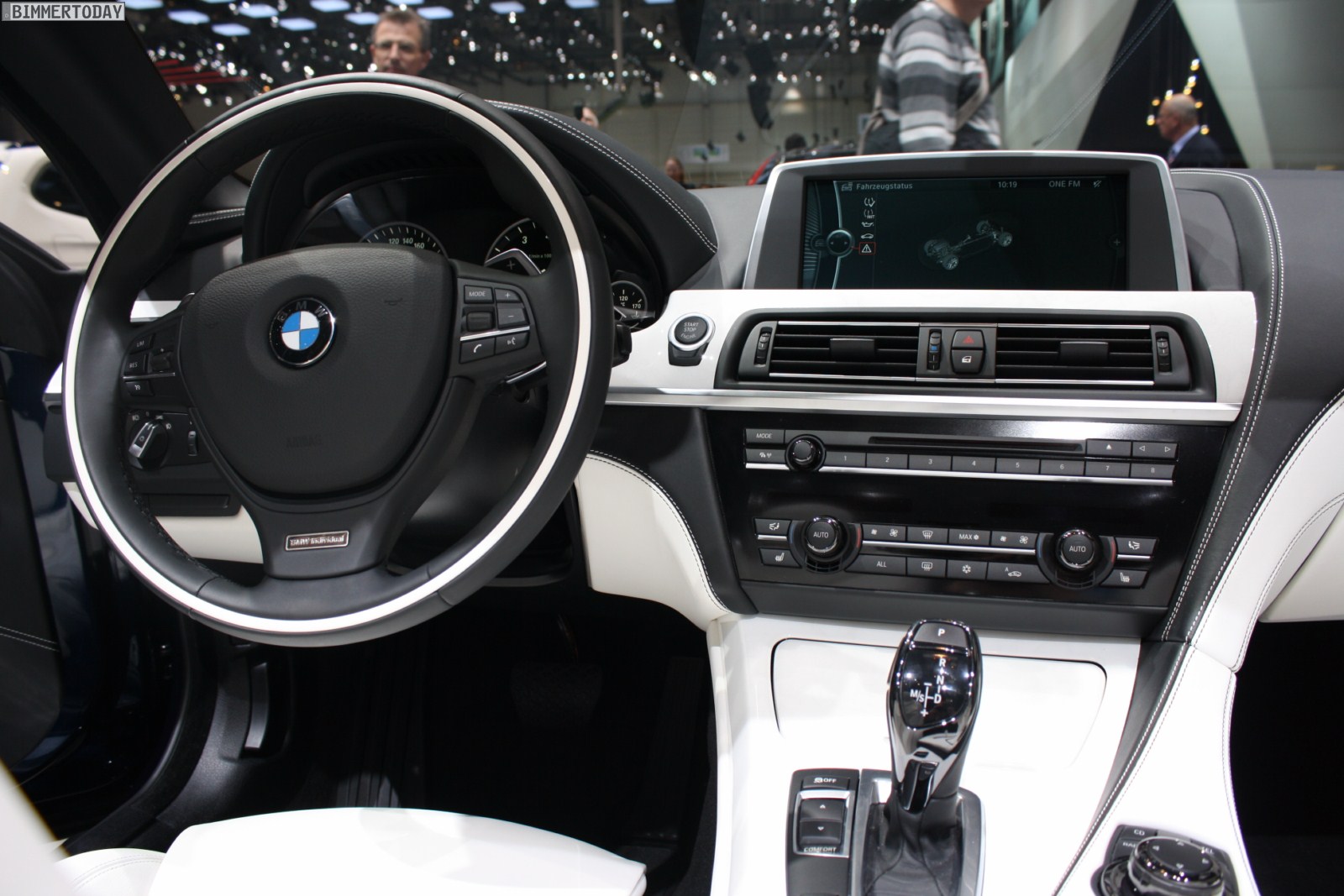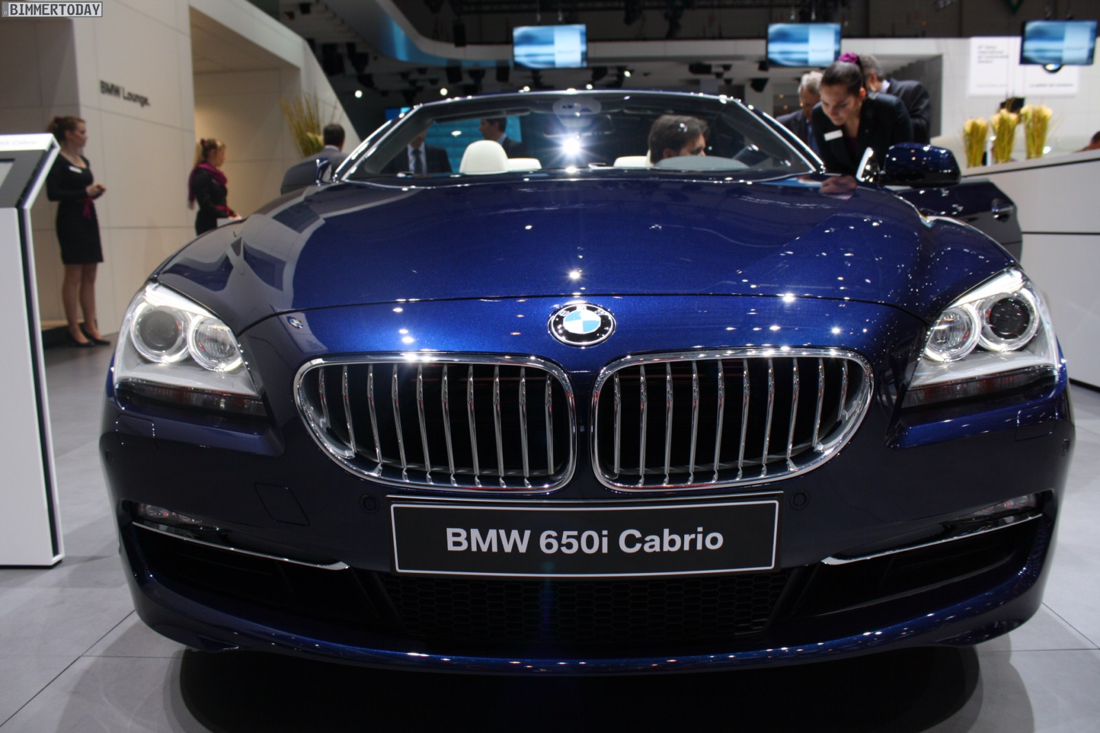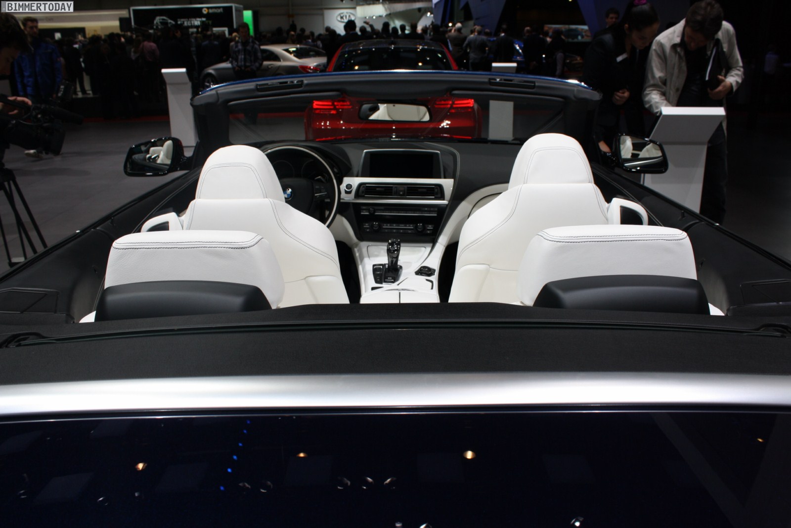 Eines der Highlights auf dem Stand von BMW ist ein neues BMW 650i Cabrio Individual der Generation F12, das in der attraktiven Außenfarbe Tansanitblau Metallic lackiert ist. Beeindruckend ist auch der Innenraum, in dem die Farben Weiß und Schwarz für interessante Kontraste sorgen und eine exklusive Atmosphäre schaffen. Beinahe alle sichtbaren Nähte sind in der jeweiligen Kontrastfarbe ausgeführt und wirken entsprechend hochwertig.