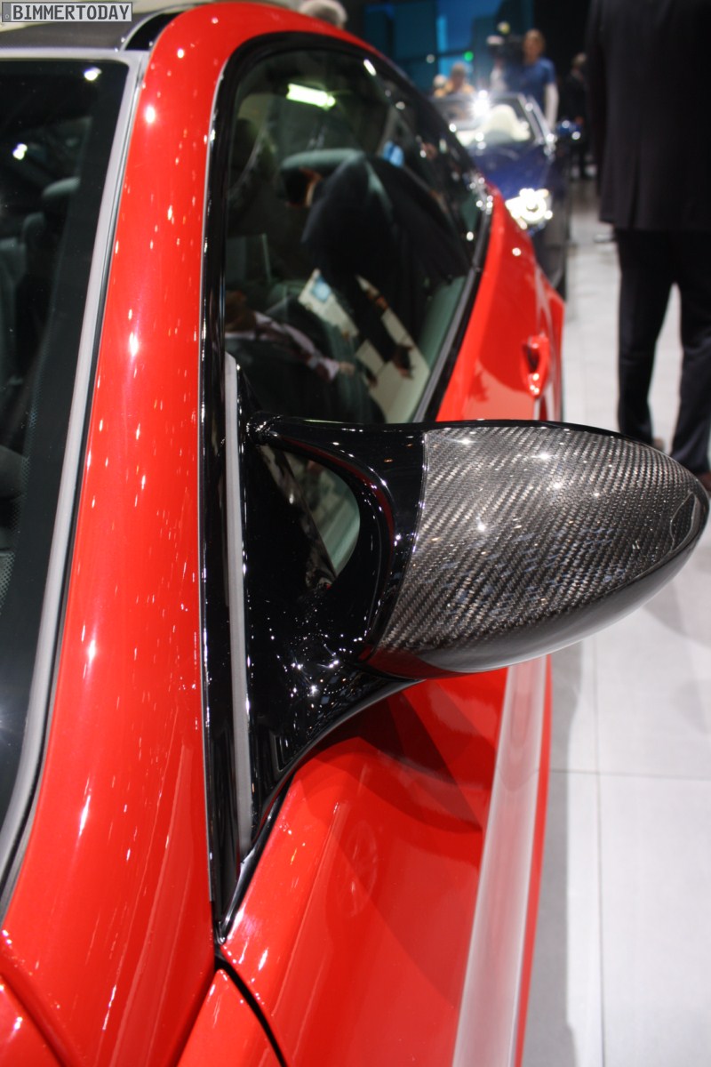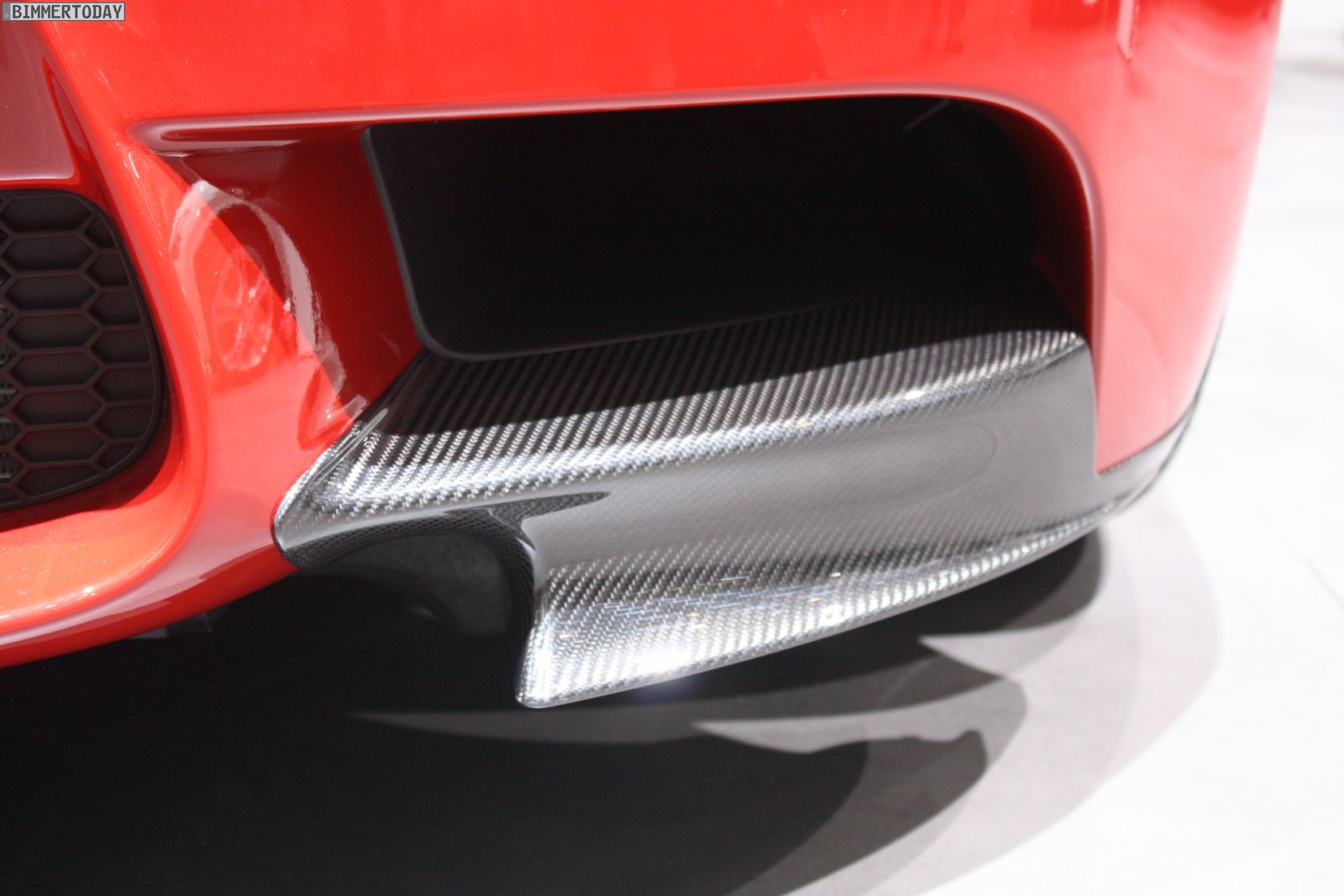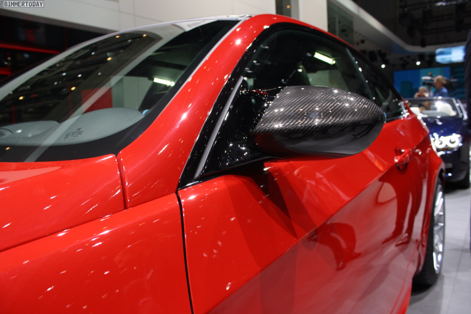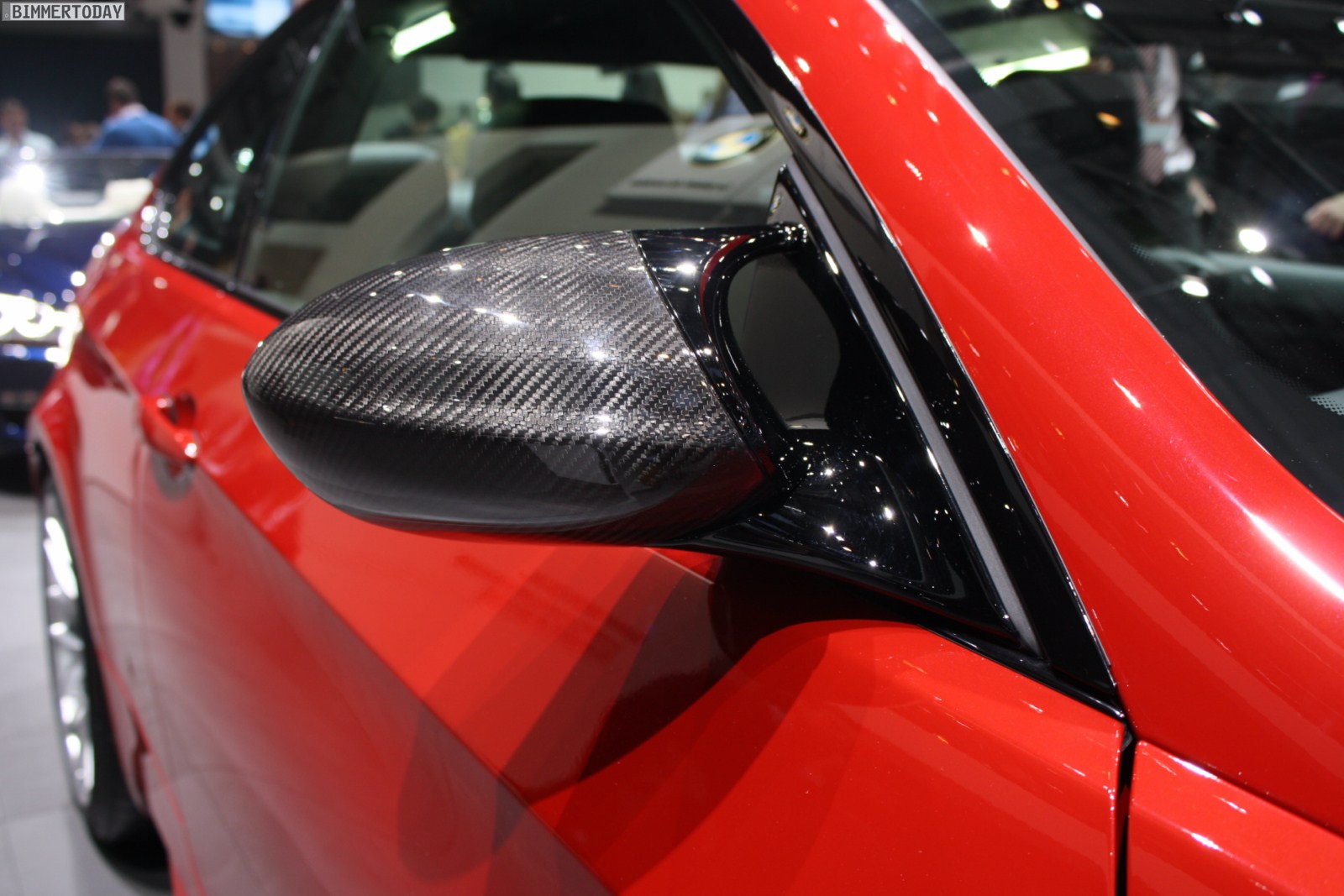 Das BMW M3 Coupé stellt zwar keine Neuheit mehr dar und auch die Farbe Melbourne Rot Metallic ist eigentlich gut bekannt, aber das in Genf ausgestellte Fahrzeug zieht dennoch jede Menge Blicke auf sich. Verantwortlich dafür sind neben der auffälligen Lackierung zahlreiche Komponenten von BMW M Performance aus Sichtcarbon, die einen herrlichen Kontrast zur Außenfarbe bilden.