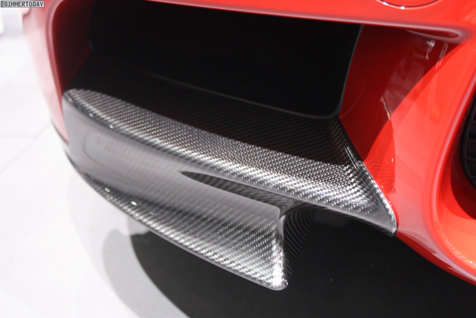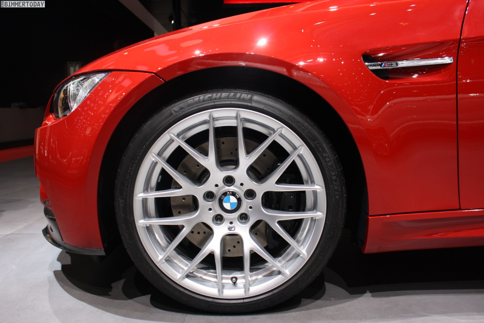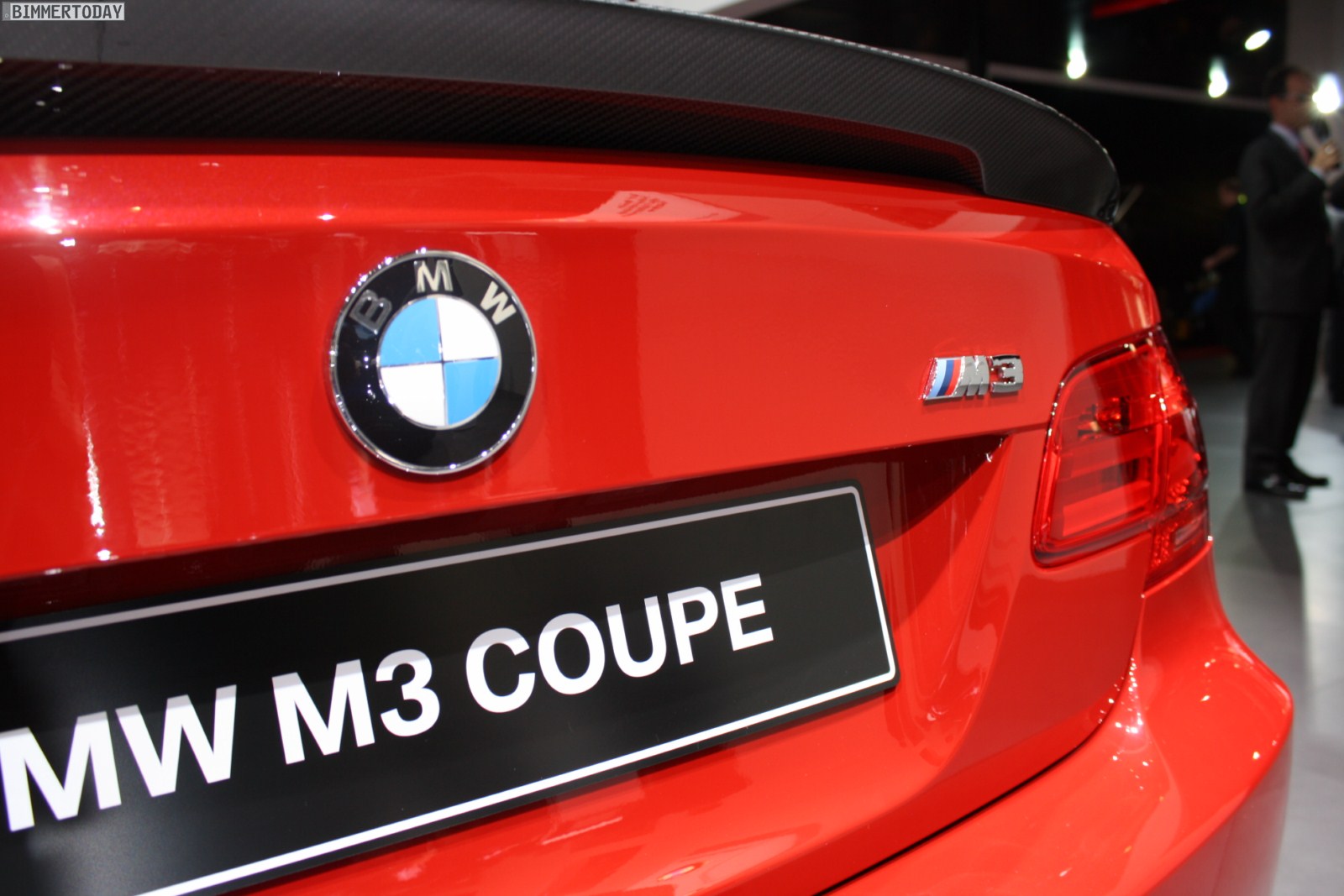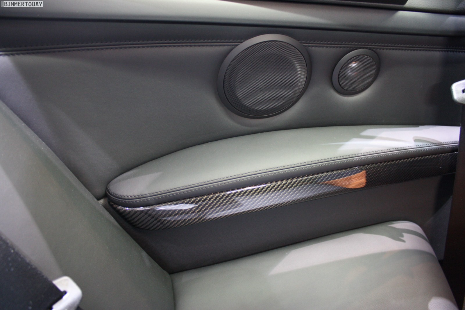 Das BMW M3 Coupé stellt zwar keine Neuheit mehr dar und auch die Farbe Melbourne Rot Metallic ist eigentlich gut bekannt, aber das in Genf ausgestellte Fahrzeug zieht dennoch jede Menge Blicke auf sich. Verantwortlich dafür sind neben der auffälligen Lackierung zahlreiche Komponenten von BMW M Performance aus Sichtcarbon, die einen herrlichen Kontrast zur Außenfarbe bilden.