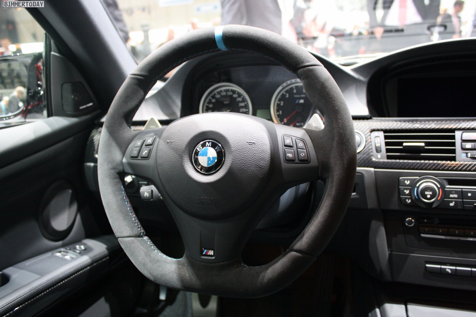 Auch im Innenraum stellt das am unteren Rand abgeflachte Lenkrad von BMW Performance einen Blickfang dar, der zusätzliches sportliches Flair ins Interieur bringt. Auch innen spielt der leichte Werkstoff Carbon eine wichtige Rolle und verdeutlicht den sportlichen Anspruch des M3, der sich auf der Rennstrecke auch im Herbst seines Lebenszyklus nicht vor den jüngeren Wettbewerbern aus Affalterbach und Neckarsulm verstecken muss.
