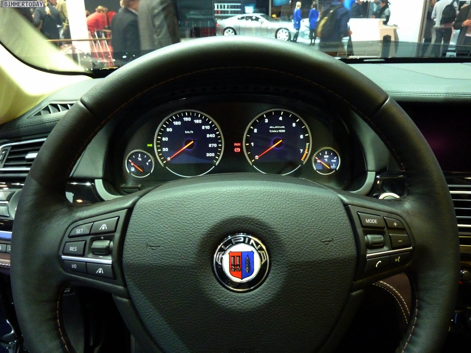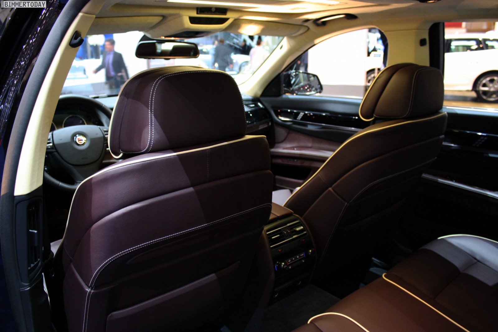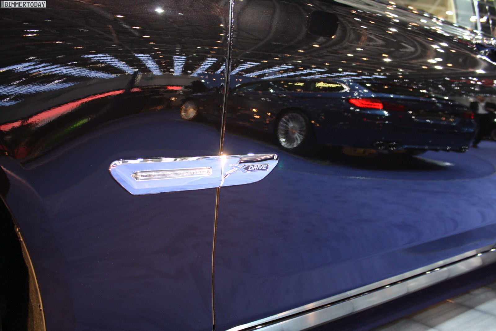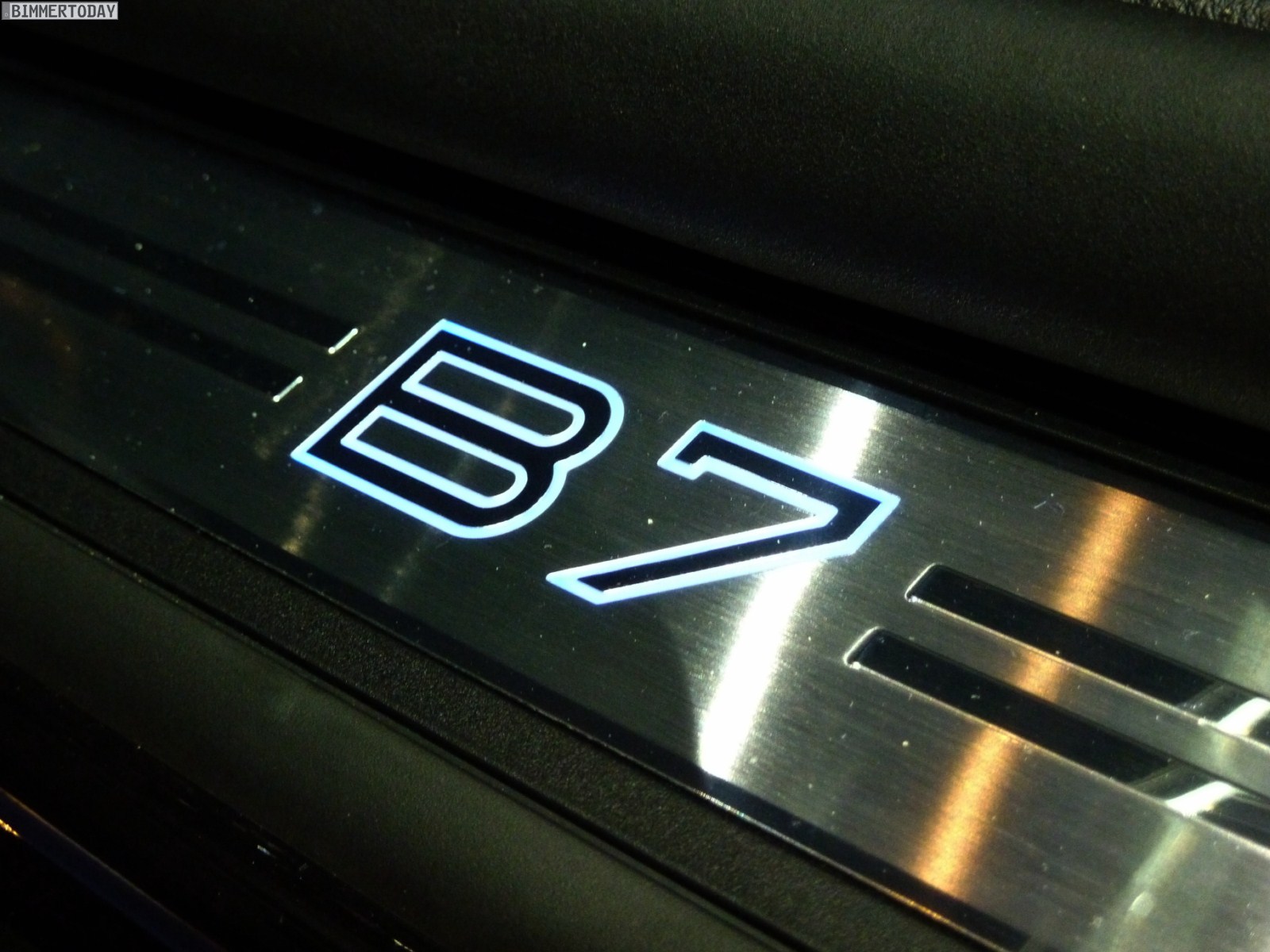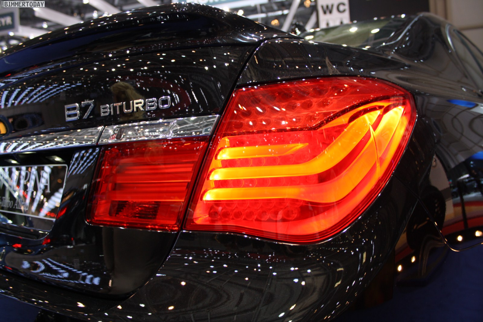 Auf vielfachen Wunsch haben wir uns in Genf auch Zeit für den BMW Alpina B7 Biturbo genommen, der als Allradfahrzeug mit BMW xDrive ausgestellt war. Während B5 Limousine und Touring in Alpinablau und das B3 S Cabrio in Alpinagrün ausgestellt waren, trug die B7 Limousine keine Alpina-Lackierung. Weniger exklusiv war die Außenfarbe dennoch kaum, denn es handelt sich um die Individualfarbe Rubinschwarz Metallic, die sich durch einen dezenten rötlichen Akzent von den normalen Schwarztönen unterscheidet.
