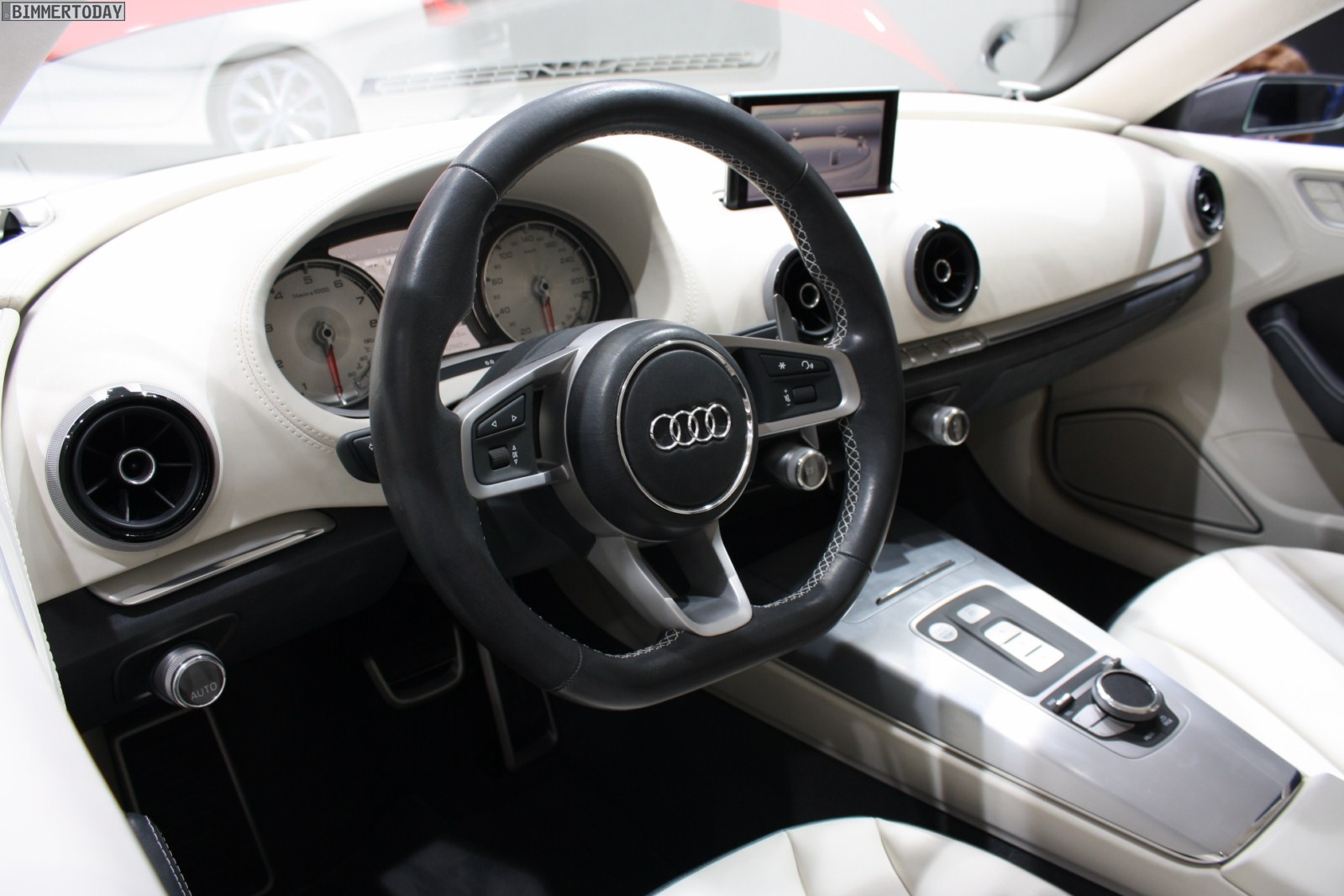 Das Concept Car verfügt noch über zahlreiche Details, die es so nicht in die Serie schaffen werden, aber ein Blick auf den kommenden Wettbewerber lohnt natürlich trotzdem. Mit einer Außenlänge von 4,44 Metern liegt der A3 auf dem Level der BMW 3er Limousine der Generation E36 und rangiert ziemlich genau in der Mitte zwischen aktuellem 1er Coupé und aktueller 3er Limousine. Mit einer Höhe von nur 1,39 Metern unterbietet der A3 sowohl den 1er als auch den 3er und wirkt entsprechend stämmig.