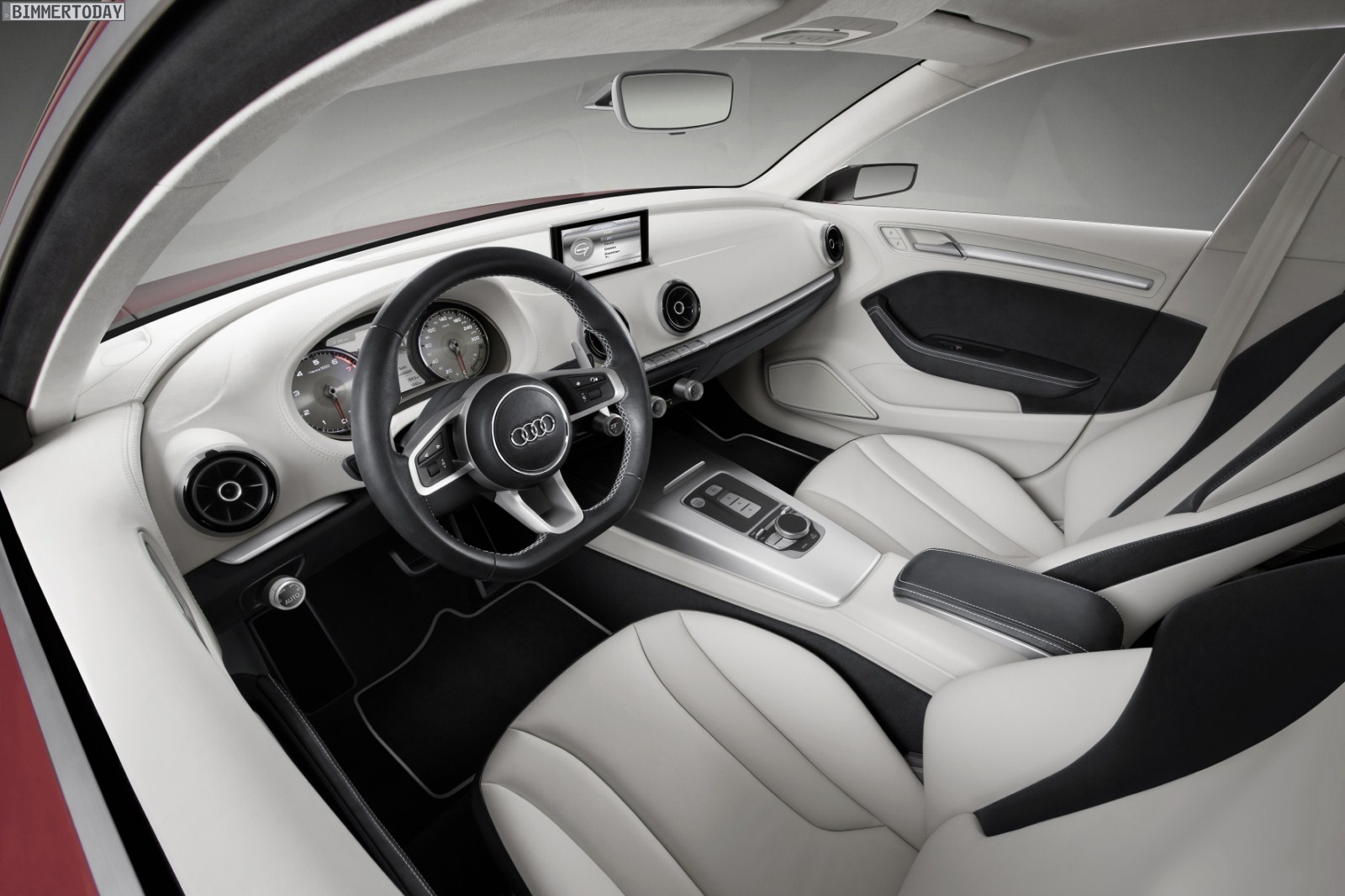 Im Innenraum verfügt das A3 Concept über ein umfangreiches Infotainment-System inklusive dem neuen MMI-Regler mit Touchpad-Oberfläche, der bald in Serie gehen soll. Das Fahrzeug verfügt über einen WLAN-Hotspot mit UMTS-Modul, der diverse internetbasierte Dienste ermöglicht. Neben dem zentralen MMI-Display hat Audi noch ein zweites acht Zoll-Display zwischen den Rundinstrumenten untergebracht. Die Inhalte dieses Fahrerinformationssystems (FIS) sollen frei programmierbar sein.