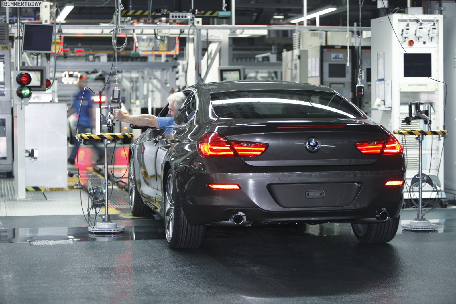 Nach zahllosen Bildern zum neuen BMW 6er Coupé in Vermilionrot Metallic gibt es nun einige Bilder von der Produktion im Werk Dingolfing, auf denen das neue Modell auch in Spacegrau Metallic zu sehen ist. Neben der Farbe sind auch die Endrohre des abgebildeten Fahrzeugs interessant, denn es handelt sich um die ersten offiziellen Bilder zum BMW 640i Coupé F13.