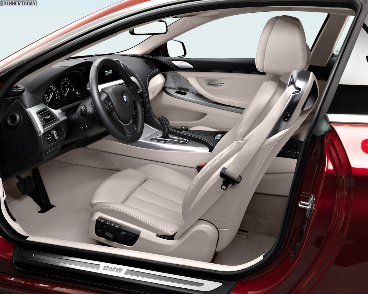 Auffällig beim Interieur sind außerdem der Wählhebel für die serienmäßige Achtgang-Sportautomatik mit Start-Stopp-Funktion und Schaltwippen am Lenkrad sowie der iDrive-Controller mit Keramikapplikationen. Wie die anderen jüngeren Modelle von BMW zeichnet sich auch das neue 6er Coupé durch die Black Panel-Technologie und ein im Tacho untergebrachtes zweites Display aus. Letzteres misst im Fall des F13 ganze 9,2 Zoll und ist somit nur ein Zoll kleiner als das zentrale Infotainment-Display, das wie im 6er Cabrio freistehend ausgeführt ist.