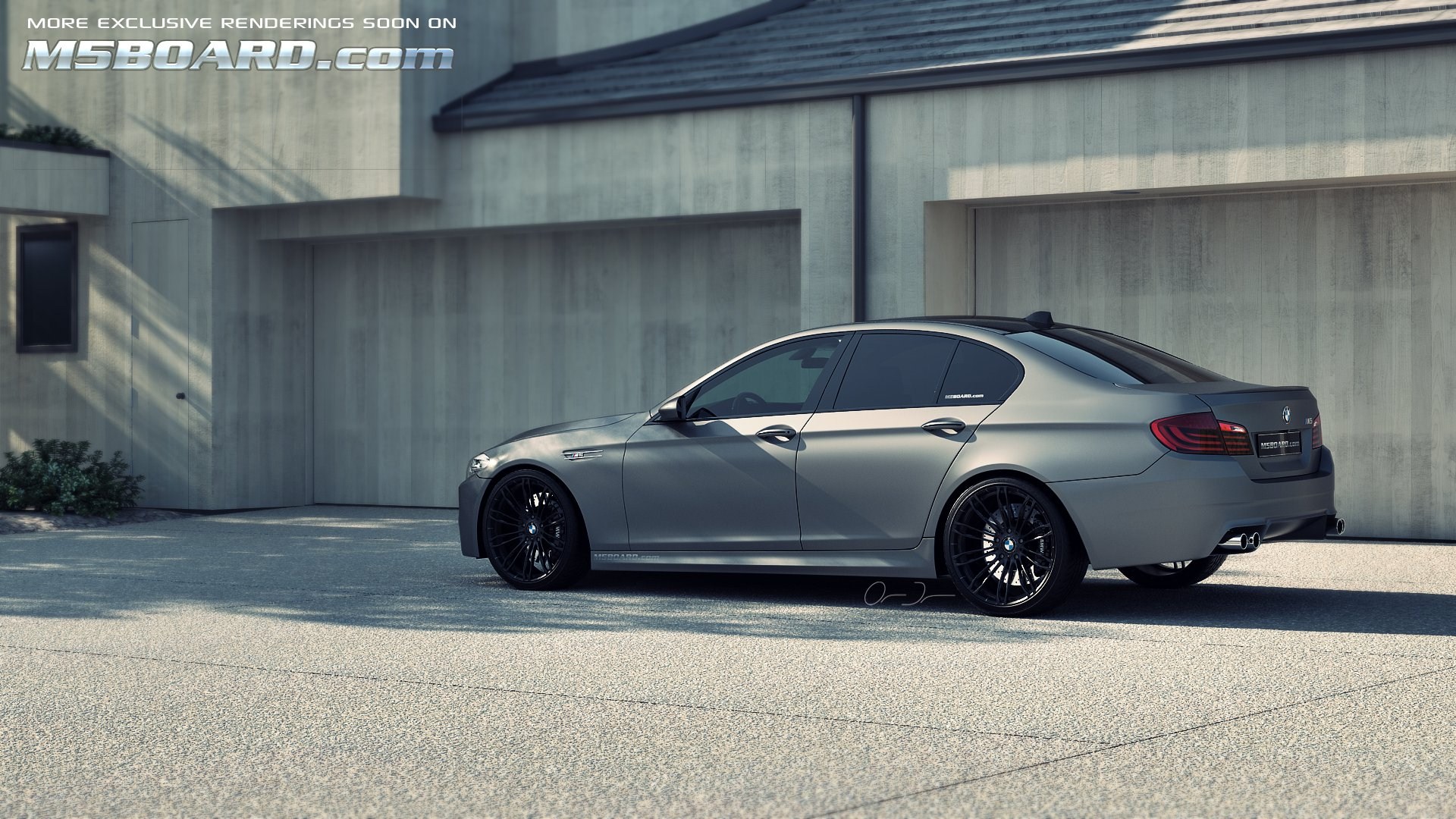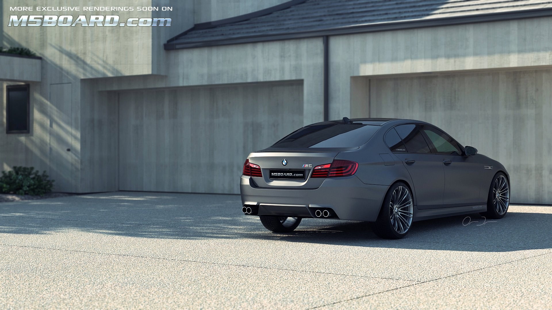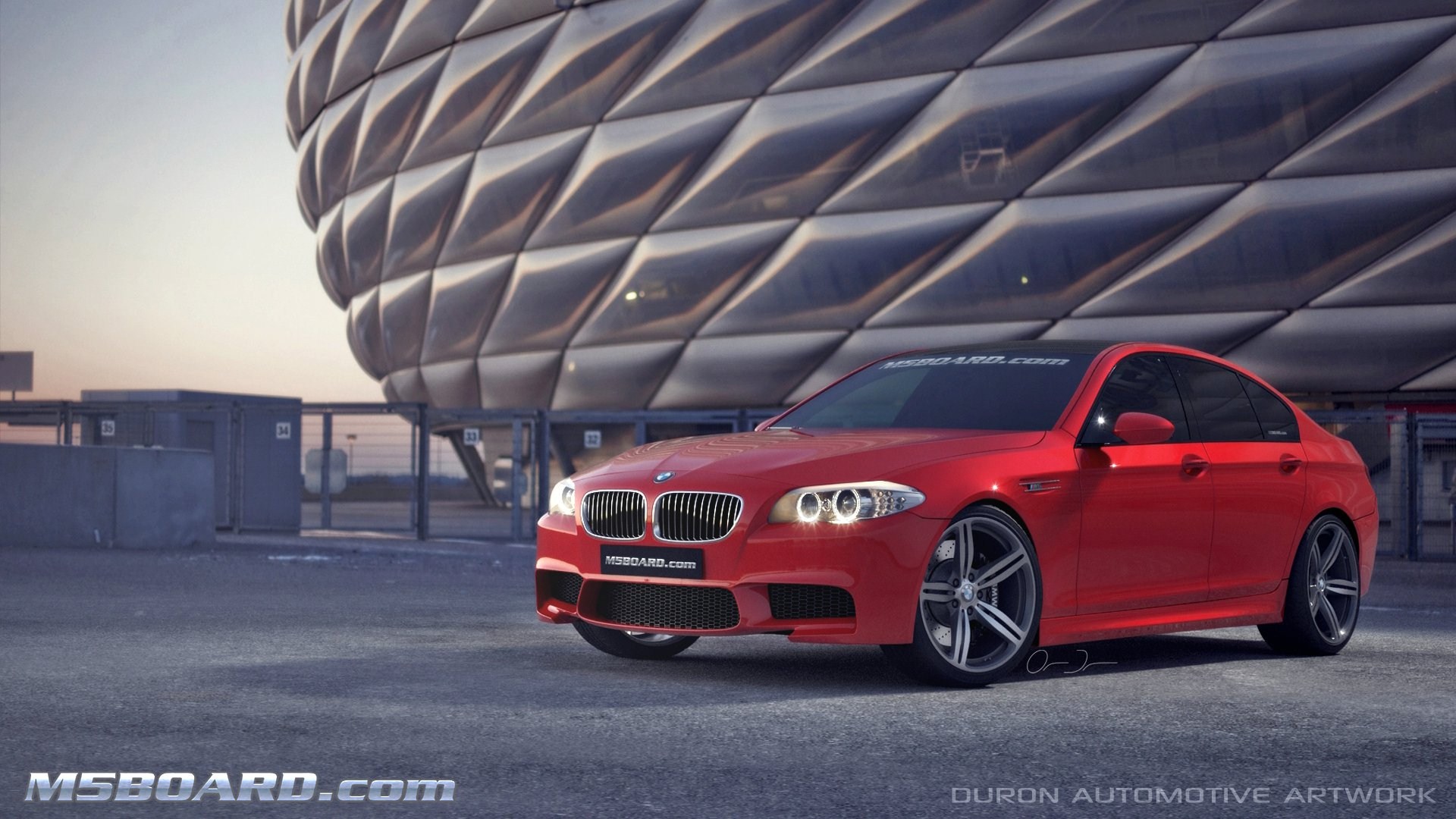 Die neuesten Entwürfe für M5Board.com zeigen uns die allem Anschein nach 560 bis 565 PS starke Limousine mit Sieben-Gang-Doppelkupplungsgetriebe im Umfeld der Münchner Allianz Arena sowie in diversen anderen künstlichen Umgebungen – genau wie beim Fahrzeug handelt es sich auch bei der Umgebung lediglich um virtuelle Modelle, die in einer 3D-Umgebung aus allen Blickwinkeln und unter frei wählbaren Lichtbedingungen betrachtet werden können.