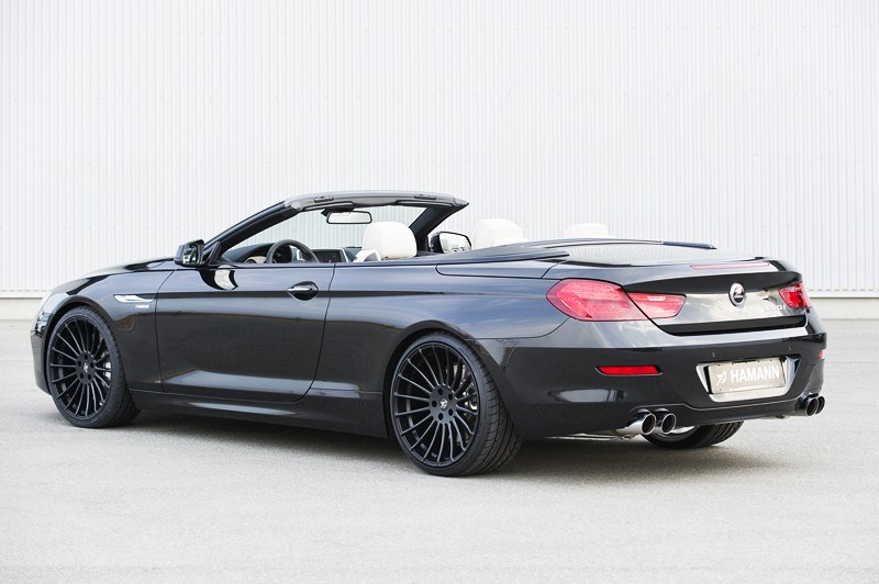 Die Aufnahmen zeigen uns ein 6er Cabrio in Saphirschwarz Metallic mit diversen Leichtmetallrädern von Hamann. Außerdem ist eine Abgasanlage mit vier Endrohren verbaut, abgesehen davon befindet sich das Fahrzeug aber allem Anschein nach in serienmäßigem Zustand und unterstreicht eindrucksvoll, wie gut der neue 6er in dunklen Farben aussieht.