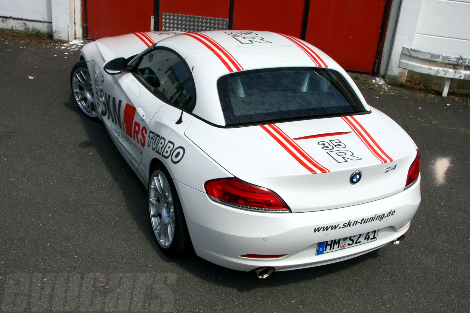 Günstiger wird der Tritt in die Fußstapfen des seligen BMW Z4M (343 PS), wenn man sich zunächst mit der “Stufe 1” begnügt. Denn schon für 1599 Euro hat SKN ein Basis-Tuning im Programm, das dem Z4 sDrive 35i zu 360 PS und einer Sprintzeit von 4,4 Sekunden verhilft. Schon jetzt sind also die 5,2 Sekunden der Serie und die 5,0 Sekunden des Z4 M vergangener Zeiten passé. Hinzu kommt eine neue Höchstgeschwindigkeit von über 275 km/h.