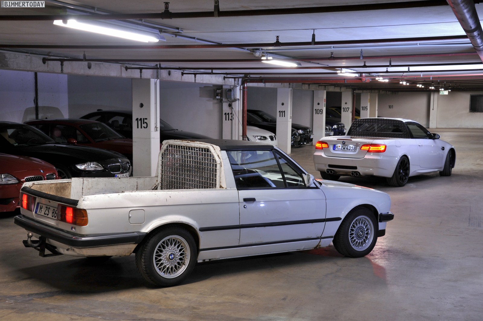 In unserer Bilderserie seht ihr neben den offiziellen Bildern vom aktuellen M3 Pick Up auch einige Fotos vom BMW M3 Pick Up der Generation E30, der mittlerweile doch etwas in die Jahre gekommen ist und auch nie mit so viel Liebe zum Detail gebaut wurde wie das aktuelle Modelle. Zu einigen der Fahrzeuge, wie im Hintergrund in der Garage der M GmbH zu sehen sind, werden wir in den nächsten Stunden noch weitere Infos veröffentlichen. Nicht alles ist so, wie es scheint…