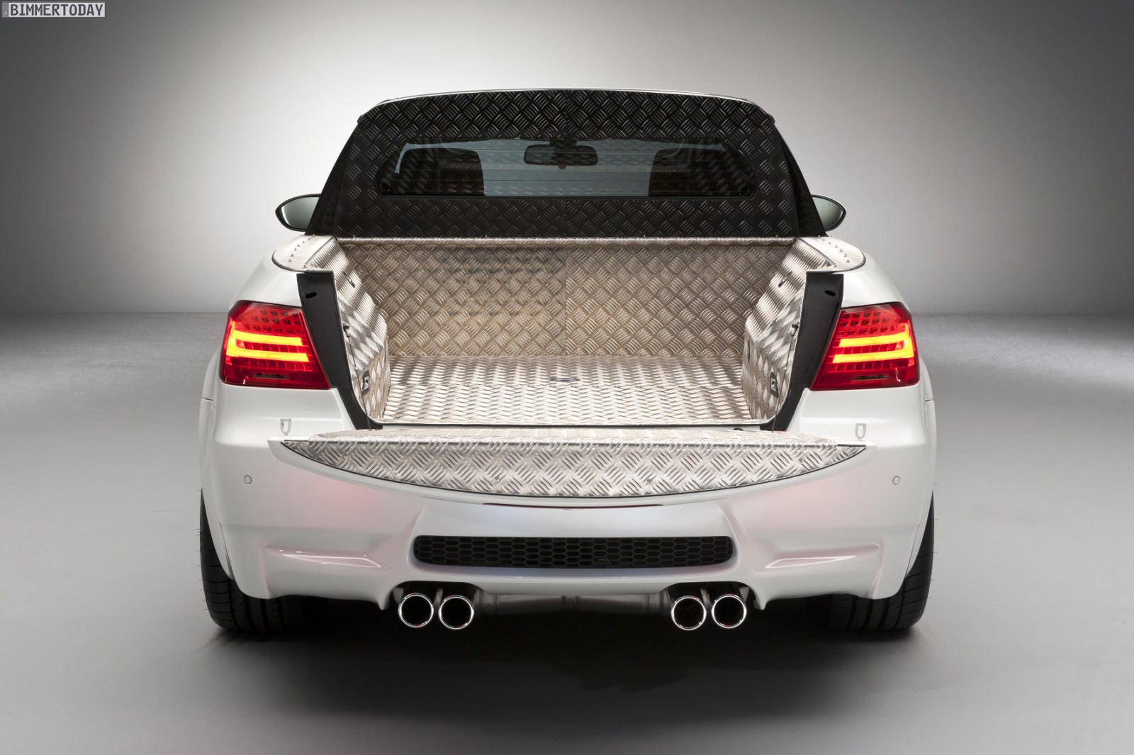Anders als zunächst vermeldet wissen wir nun, dass der BMW M3 Pickup Truck nicht auf dem Coupé, sondern tatsächlich auf dem Cabrio E93 basiert. Grundlage war ein heruntergekommenes Exemplar, für das es keine Verwendung mehr gab und um das Fahrzeug nicht einfach nur zu verschrotten, überlegte man sich, was man wohl noch aus ihm machen könnte. Mit Blick auf den mittlerweile doch etwas angegrauten BMW M3 Pickup auf Basis des Italo-M3 der Generation E30 lag es Nahe, einen neuen Pick Up zu bauen.