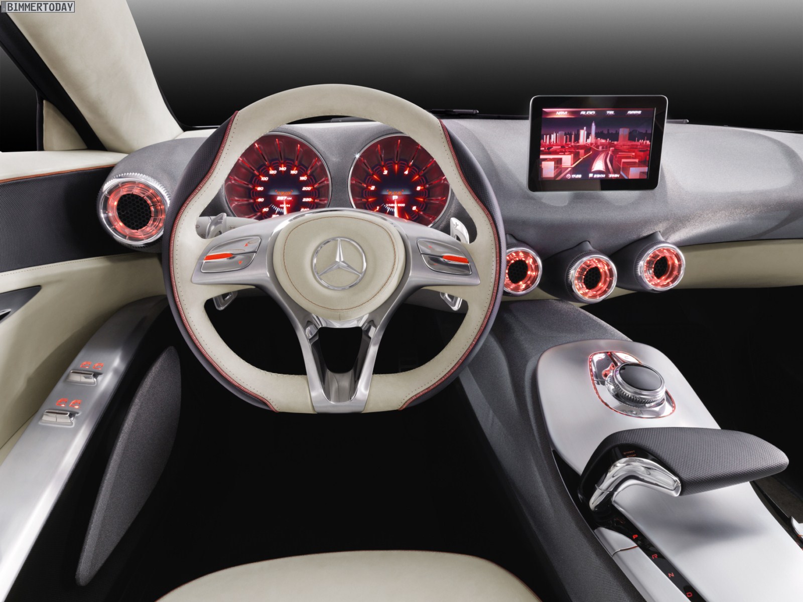 Als Highlight präsentiert Mercedes-Benz eine radargestützte Kollisionswarnung mit adaptivem Bremsassistenten, die im Falle einer Gefahrensituation die Gefahr eines Auffahrunfalls reduziert. Ebenfalls unüblich für die Kompaktklasse sind die Voll-LED-Scheinwerfer, aber es darf bezweifelt werden, ob es diese Option in die Serie schaffen wird.