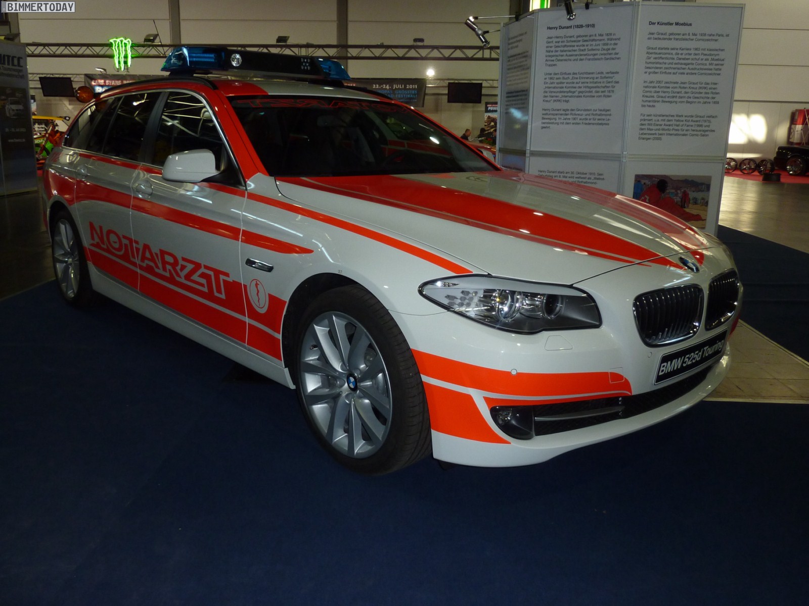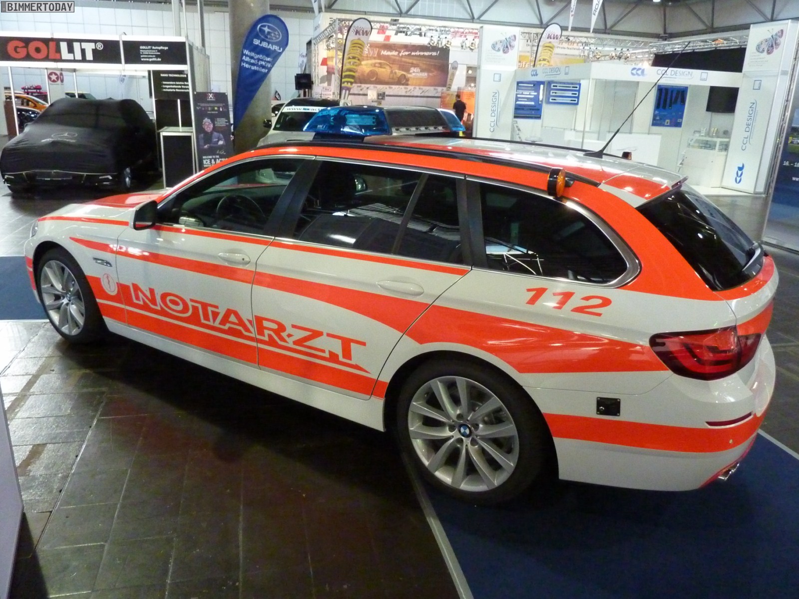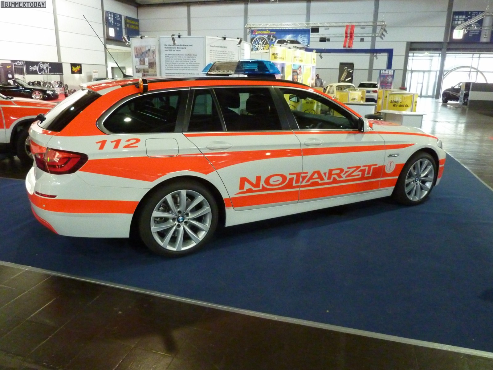 Wir haben heute der AMISTYLE in Leipzig einen kurzen Besuch abgestattet und dabei natürlich auch ein paar Fotos von den zwei Fahrzeugen gemacht, die unserer Meinung nach besonders interessant waren. Beginnen wollen wir mit einem BMW 5er Touring der aktuellen Generation F11, der als Notarzt Einsatzfahrzeug ausgestellt war und dabei eine sehr gute Figur abgab. Die Einsatzfahrzeuge für Feuerwehr und andere Rettungsdienste gehören seit kurzem zum Geschäftsbereich der M GmbH in Garching, denn dort kennt man sich mit BMW Individual ja ohnehin sehr gut aus.