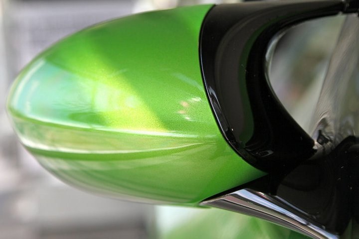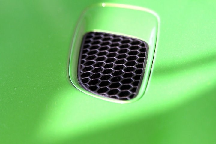 Der Aufpreis für die exklusive und äußerst seltene Farbe beträgt 4.700 Euro und beim gezeigten Auto wurden gleich noch weitere 4.950 Euro in die Hand genommen, um auch dem Interieur eine besondere Note zu verpassen: Das Individual Polster Novillo Schwarz greift mit grüner Kontraststeppung die Außenfarbe auf, ohne dabei störend oder aufdringlich zu wirken.