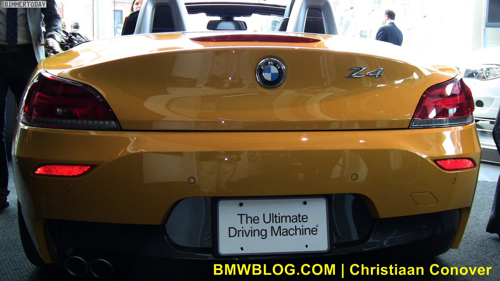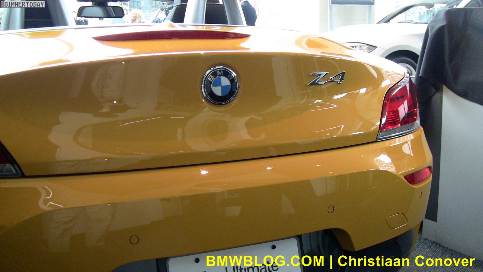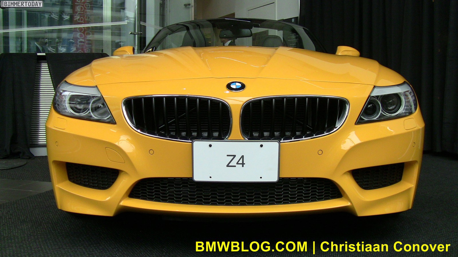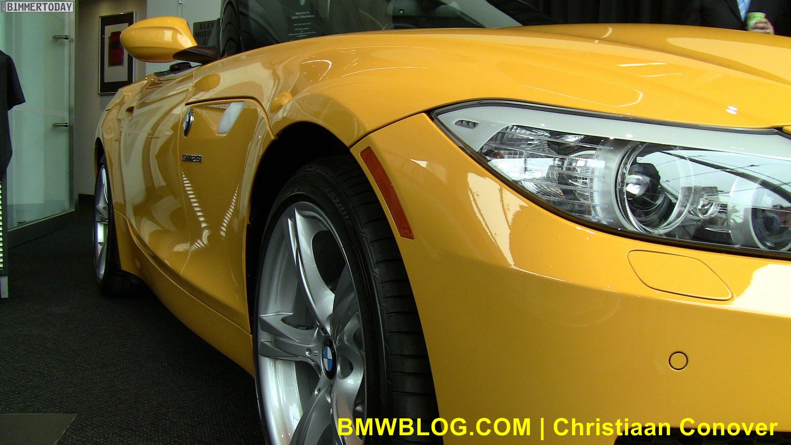Direkt von der New York Auto Show können wir nun erste Bilder zum neuen BMW Z4 sDrive28i E89 präsentieren, der dort in der zum Design Pure Impulse gehörenden Farbe Atacama Gelb gezeigt wird. Genau wie die Modelle sDrive23i und sDrive30i trägt auch der neue sDrive28i Nieren mit schwarzen Längsstäben, die verchromte Variante bleibt den Topmodellen sDrive35i und sDrive35is vorbehalten. Auch die beiden Endrohre auf der in Fahrtrichtung linken Seite bleiben offenbar unverändert.