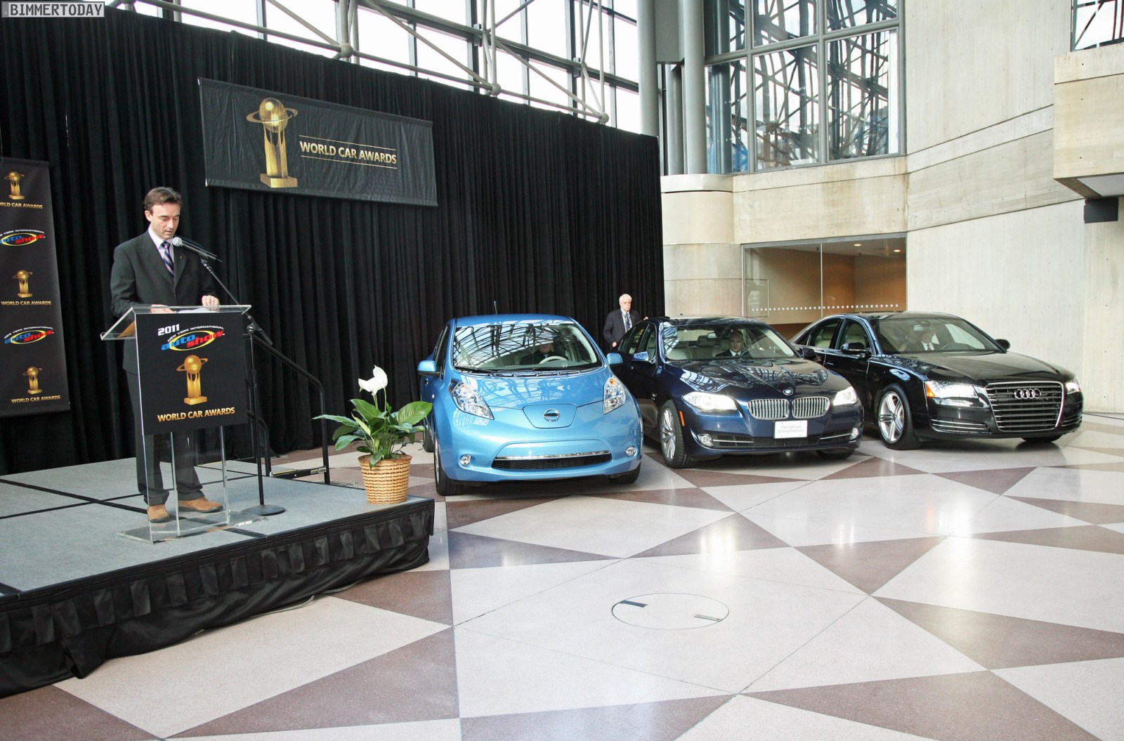 Wie berichtet stand die BMW 5er Limousine F10 gemeinsam mit dem neuen Audi A8 und dem Nissan Leaf in der engeren Auswahl für den Titel World Car of the Year 2011, im Finale hat es aber nicht ganz gereicht. Die 66-köpfige Jury aus 24 Ländern wählte mit 733,4 Punkten den Nissan Leaf an die Spitze, der BMW 5er folgte mit denkbar knappem Abstand und 730,0 Punkten auf dem zweiten Platz. Der dritte Finalist, die neue Generation des Audi A8, lag mit 709,0 Punkten relativ deutlich hinter den beiden Spitzenreitern.