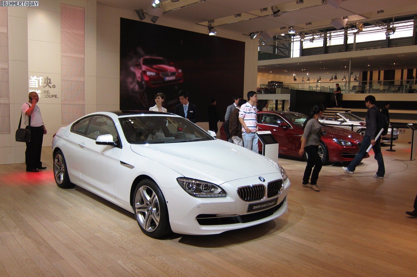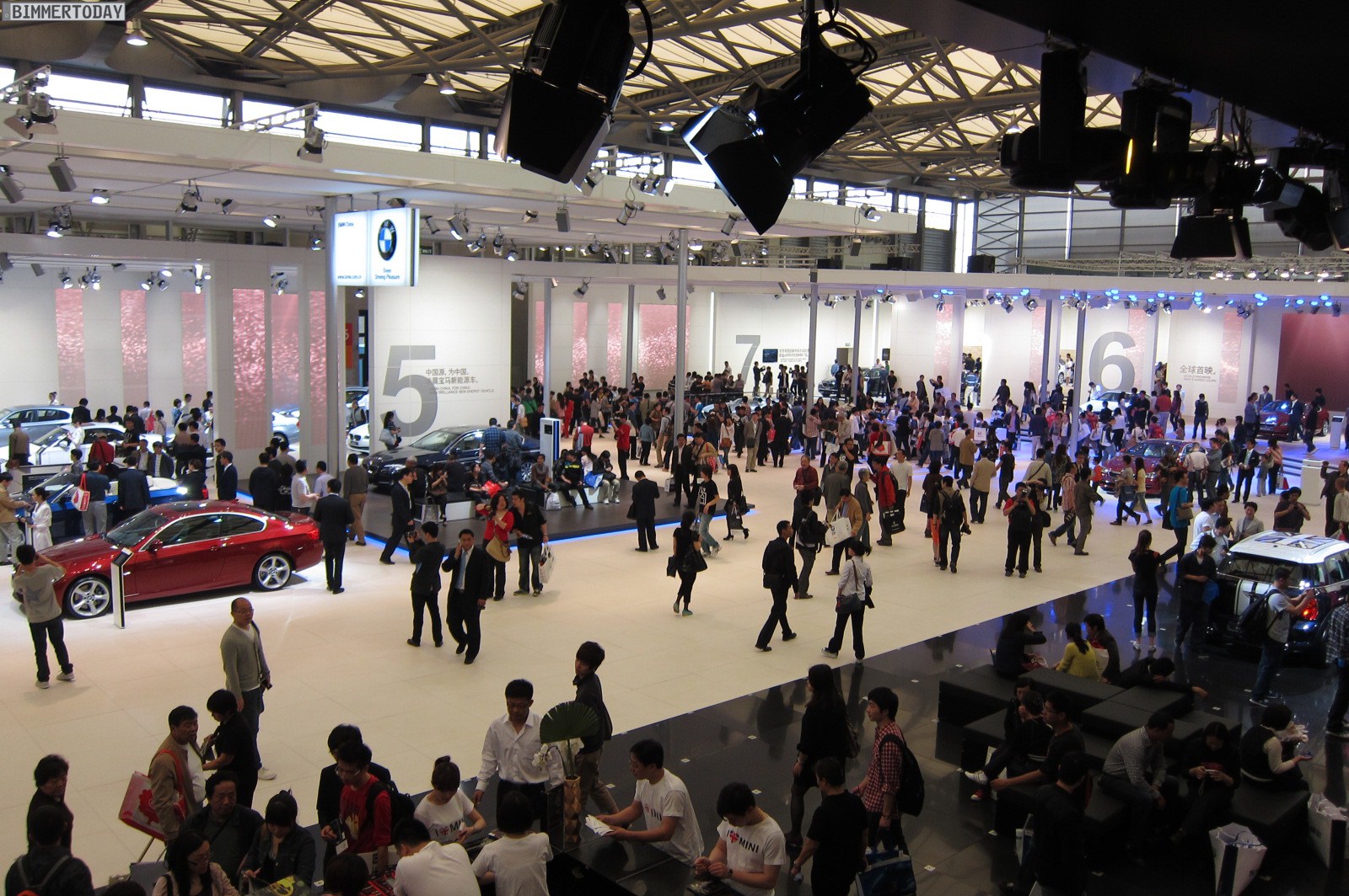 Wir sehen das neue BMW 6er Coupé F13, das als 650i in Vermilionrot Metallic mit Voll-LED-Scheinwerfern sowie in Weiß mit Panorama-Glasdach ausgestellt wird. Ein weiteres Highlight ist das BMW Concept M5 F10, von dem wir bereits in Garching jede Menge Bilder machen konnten und das in Shanghai seine Publikumspremiere erlebt. Ebenfalls aus Garching stammt das BMW 1er M Coupé, das in der exklusiven Außenfarbe Valencia Orange Metallic präsentiert wird.