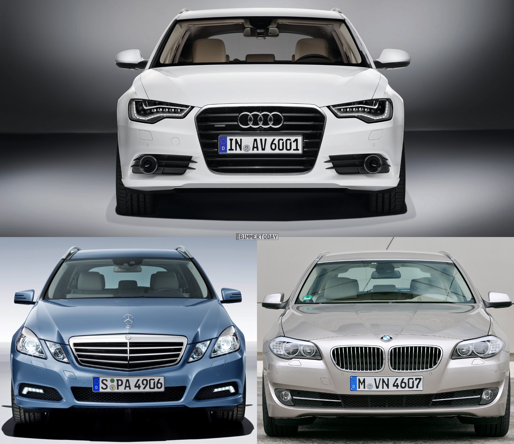 Vor wenigen Stunden hat Audi den neuen A6 Avant in Berlin präsentiert und wie gewohnt nutzen wir die Gelegenheit gleich für einen Bildvergleich mit den wichtigsten Wettbewerbern des neuen Modells, dem BMW 5er Touring F11 und dem Mercedes E-Klasse T-Modell. Optisch kann und will der A6 Avant nicht überraschen und orientiert sich eng an der aus Ingolstadt gewohnten Formensprache.