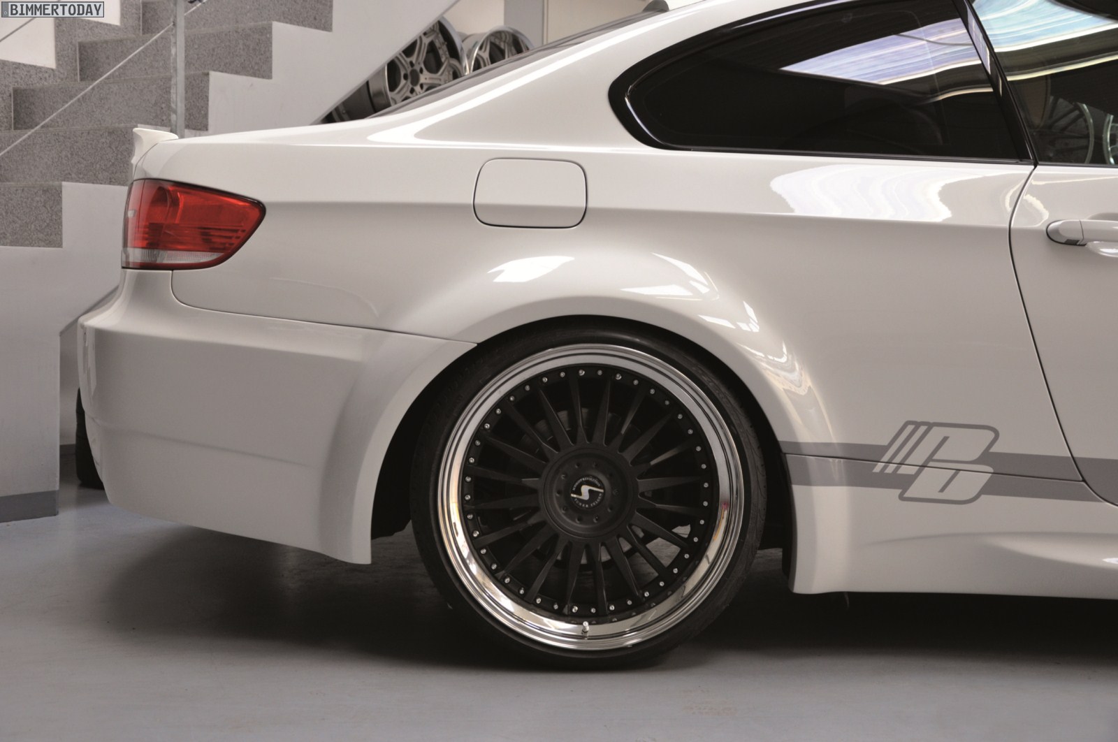 Das Paket umfasst neben neuen Kotflügeln an der Front auch eine Seitenwandverbreitung für das Heck, Seitenschweller, neue Front- und Heckschürzen sowie eine von Lufteinlässen und Powerdome geprägte Motorhaube, die sich wie die restlichen Komponenten an der Formensprache des BMW M3 orientiert.