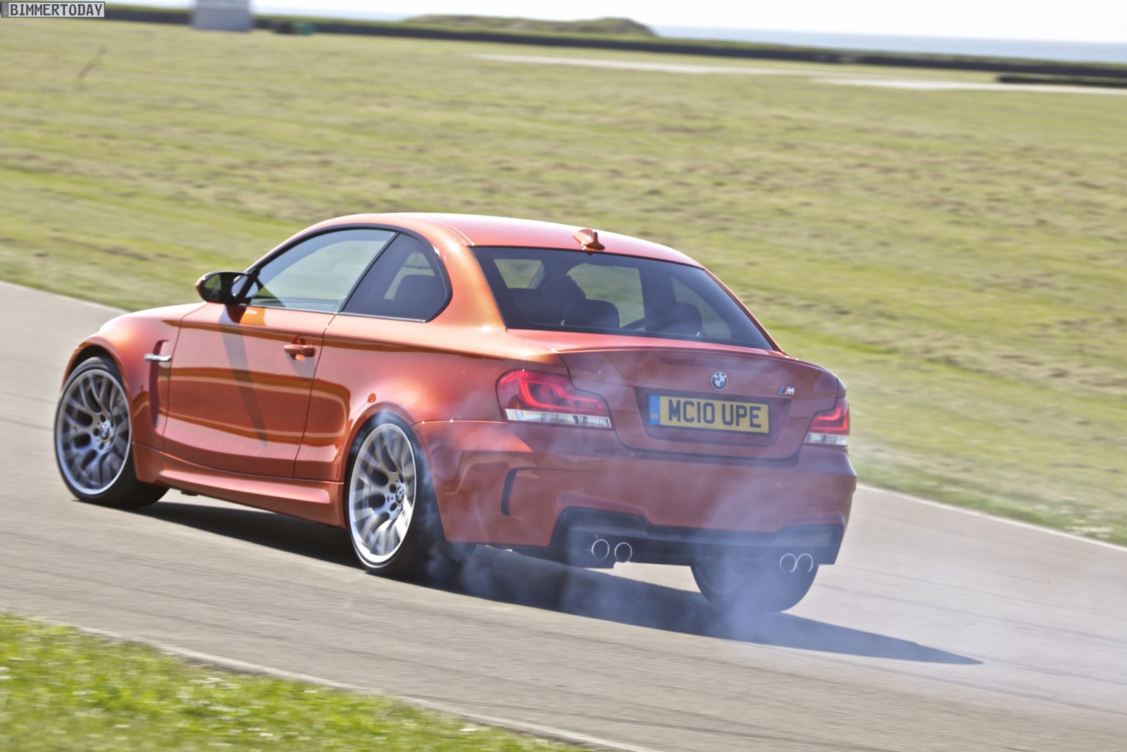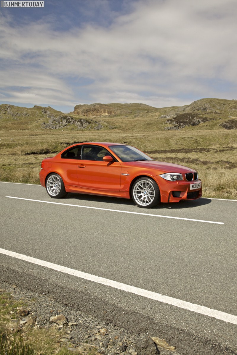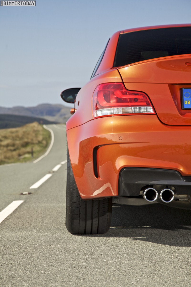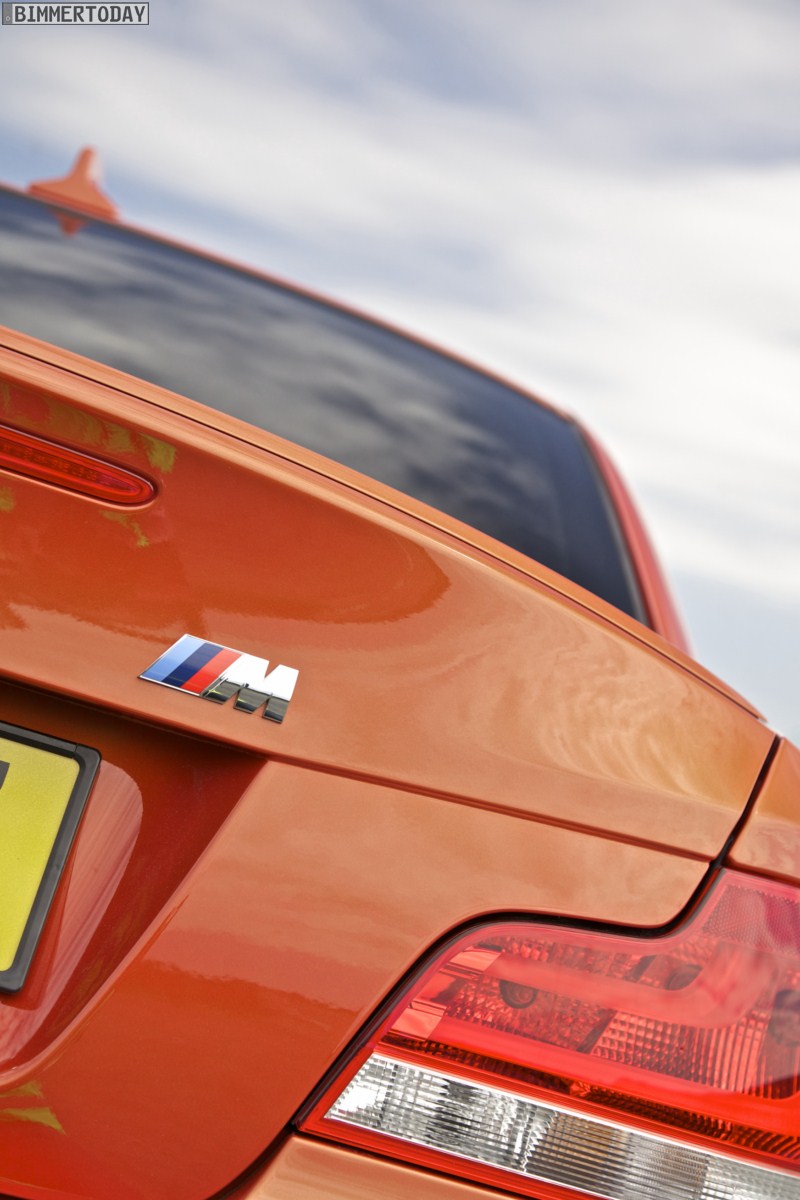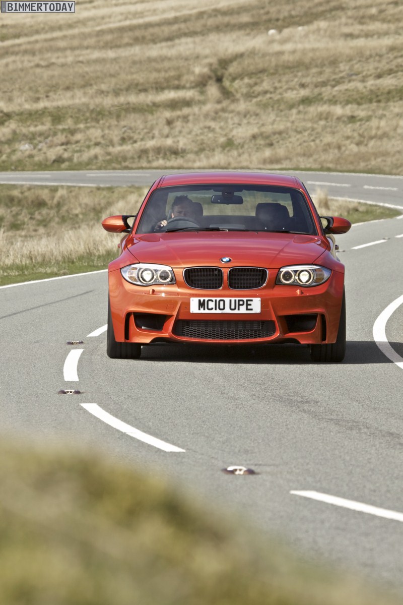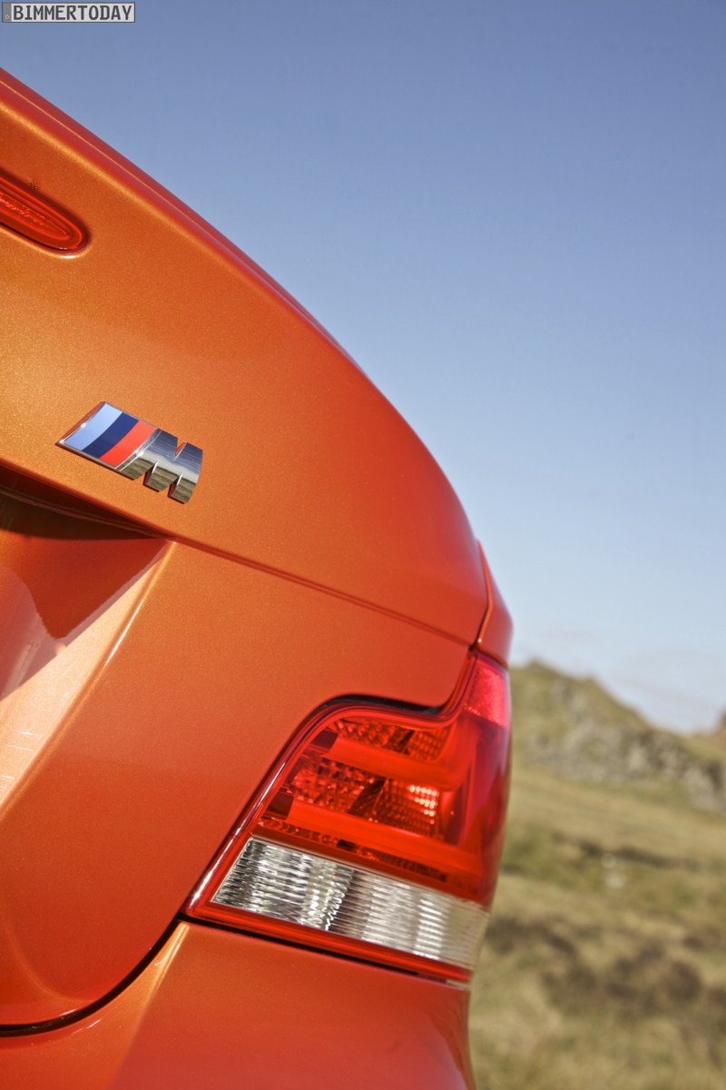 Genau wie im Video sind auch auf den Bildern durchaus qualmende Reifen zu sehen, die sich im internationalen Bildmaterial leider nicht finden. Im Video sieht man neben der englischen Landschaft auch die dazugehörigen Drifts des BMW 1er M Coupés in Valencia Orange Metallic, Fotos von den beiden anderen Farben Alpinweiß und Saphirschwarz bleiben leider weiterhin Mangelware.