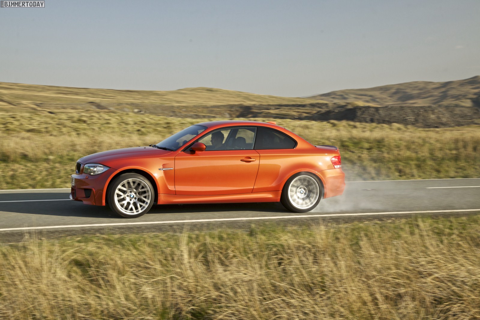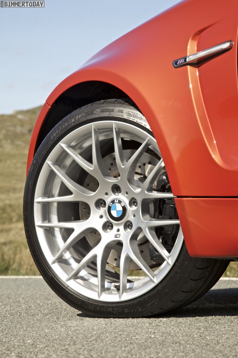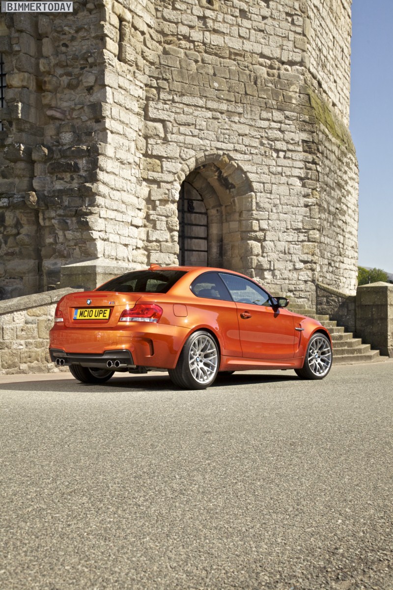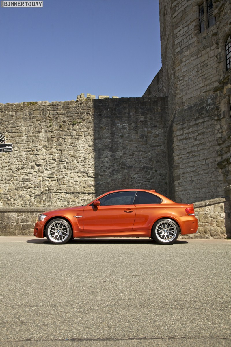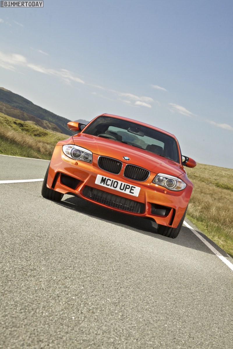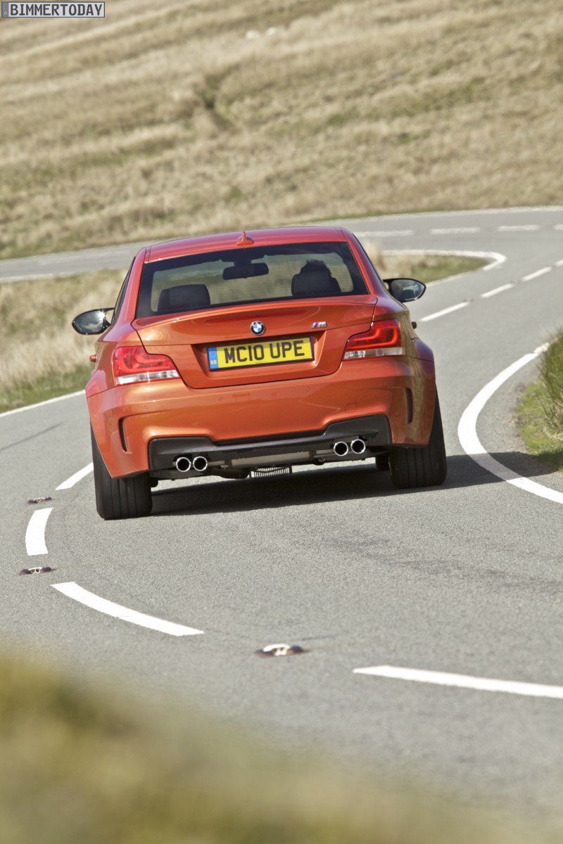 Genau wie im Video sind auch auf den Bildern durchaus qualmende Reifen zu sehen, die sich im internationalen Bildmaterial leider nicht finden. Im Video sieht man neben der englischen Landschaft auch die dazugehörigen Drifts des BMW 1er M Coupés in Valencia Orange Metallic, Fotos von den beiden anderen Farben Alpinweiß und Saphirschwarz bleiben leider weiterhin Mangelware.