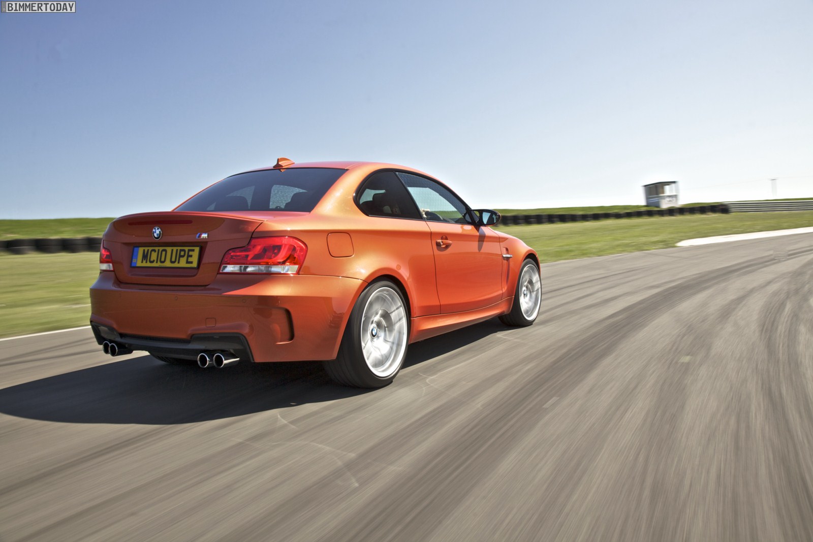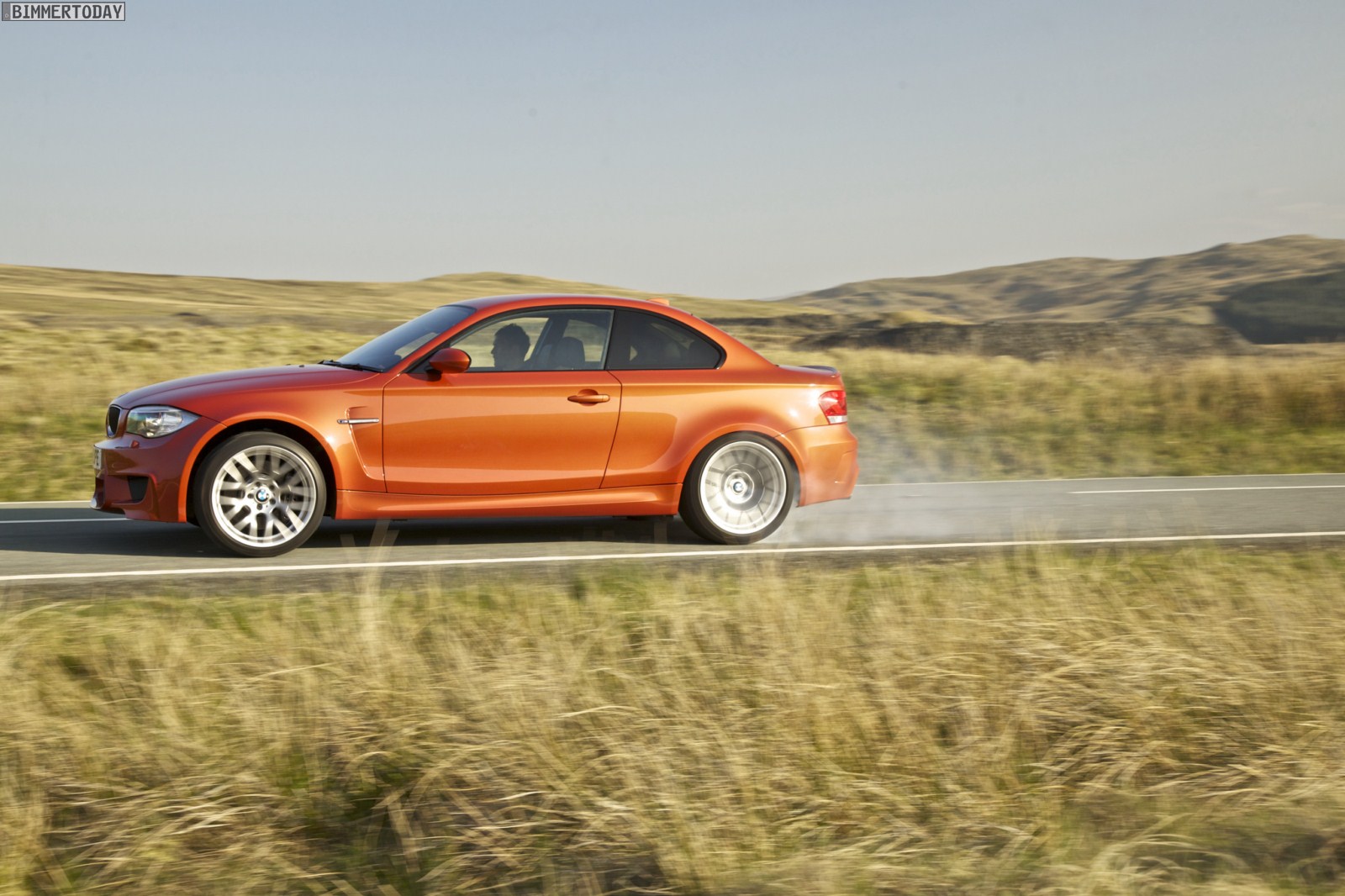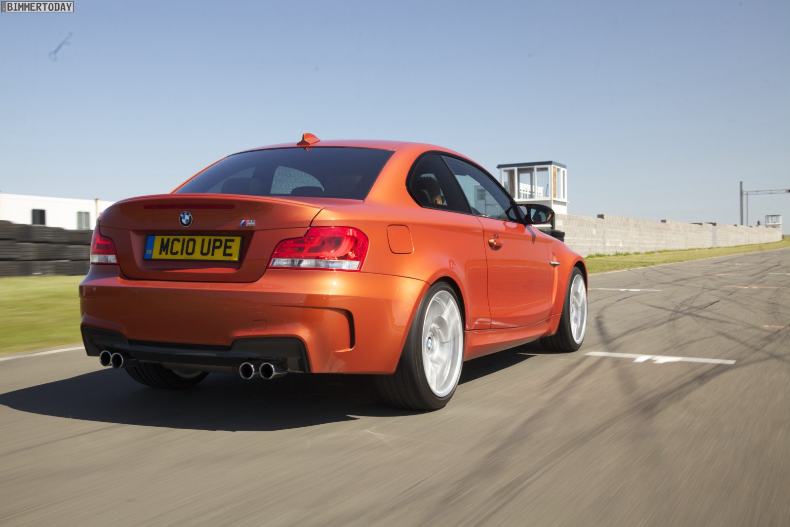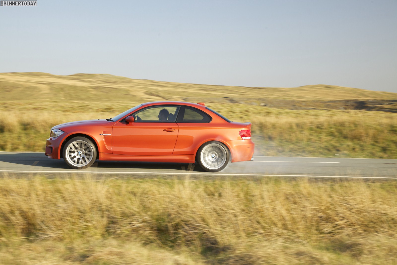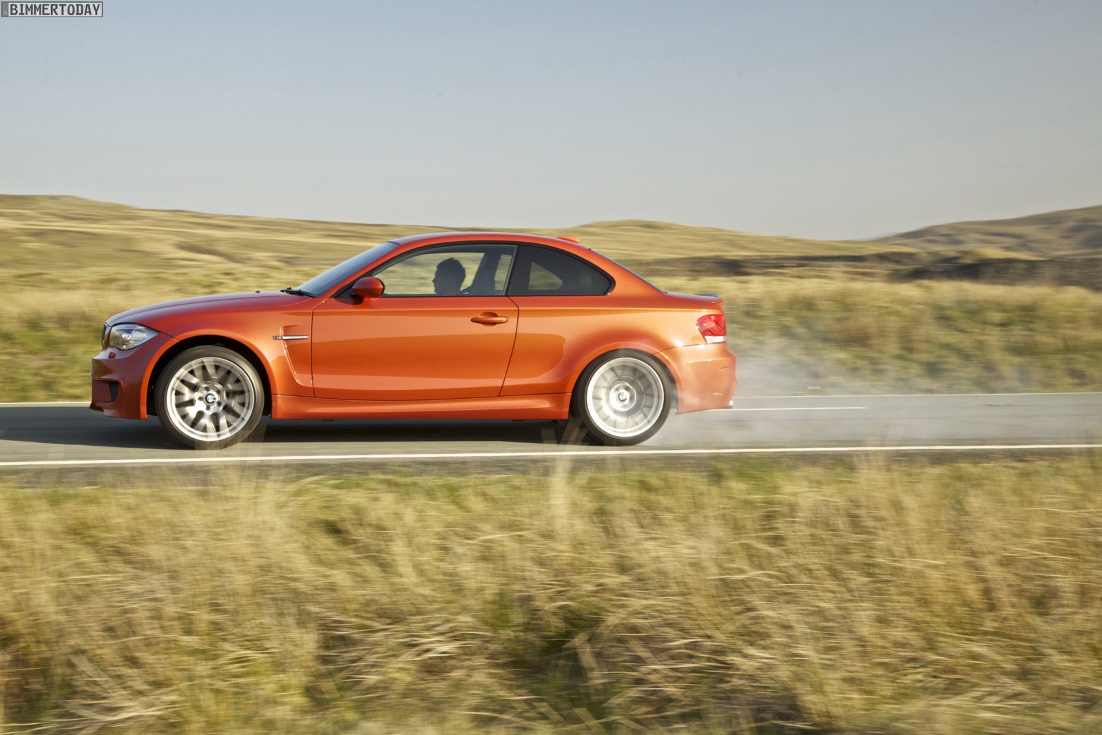 Genau wie im Video sind auch auf den Bildern durchaus qualmende Reifen zu sehen, die sich im internationalen Bildmaterial leider nicht finden. Im Video sieht man neben der englischen Landschaft auch die dazugehörigen Drifts des BMW 1er M Coupés in Valencia Orange Metallic, Fotos von den beiden anderen Farben Alpinweiß und Saphirschwarz bleiben leider weiterhin Mangelware.