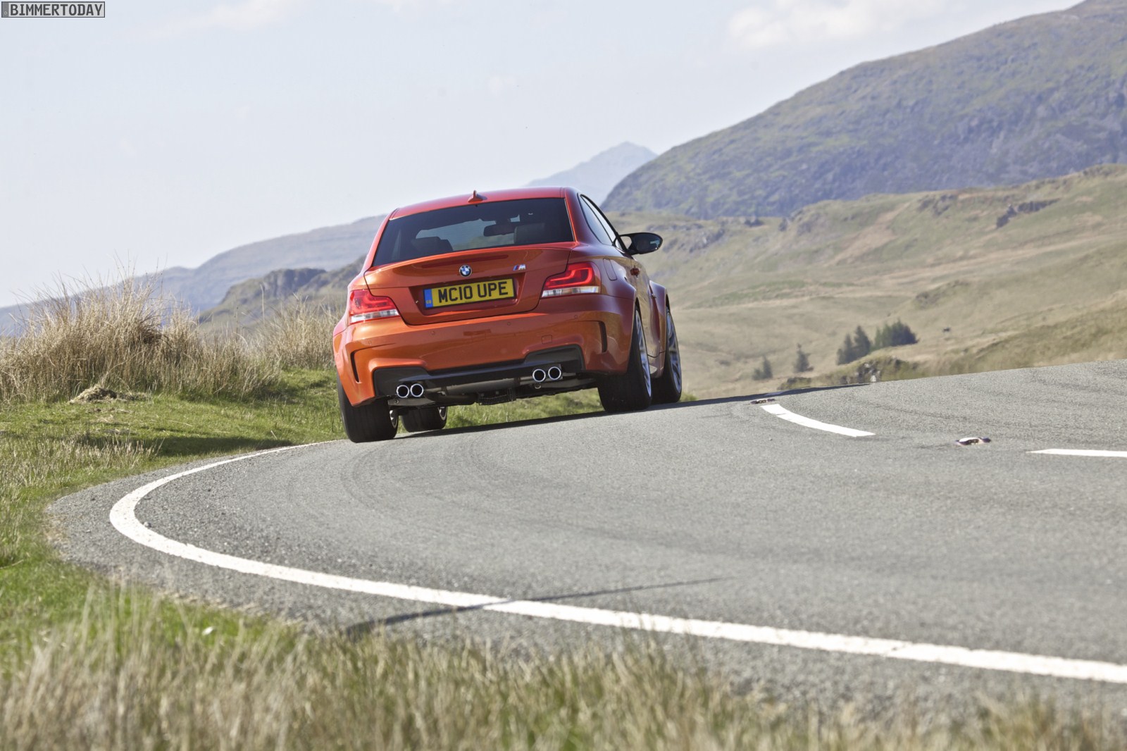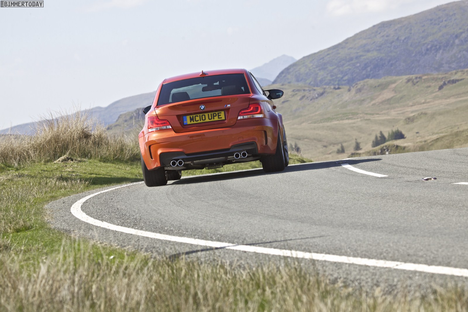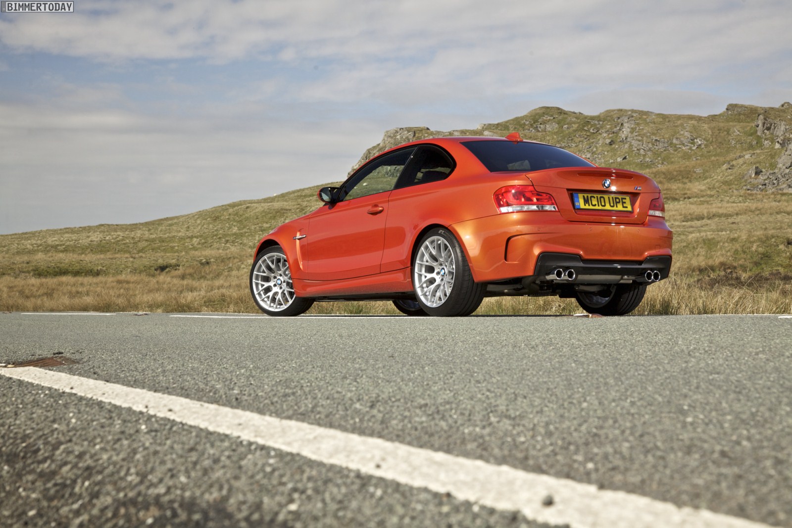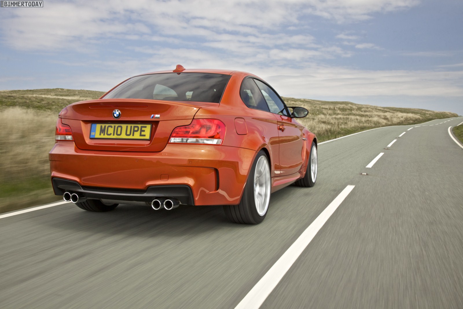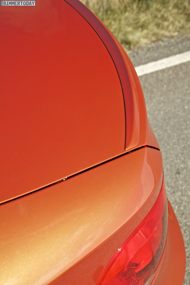 Genau wie im Video sind auch auf den Bildern durchaus qualmende Reifen zu sehen, die sich im internationalen Bildmaterial leider nicht finden. Im Video sieht man neben der englischen Landschaft auch die dazugehörigen Drifts des BMW 1er M Coupés in Valencia Orange Metallic, Fotos von den beiden anderen Farben Alpinweiß und Saphirschwarz bleiben leider weiterhin Mangelware.