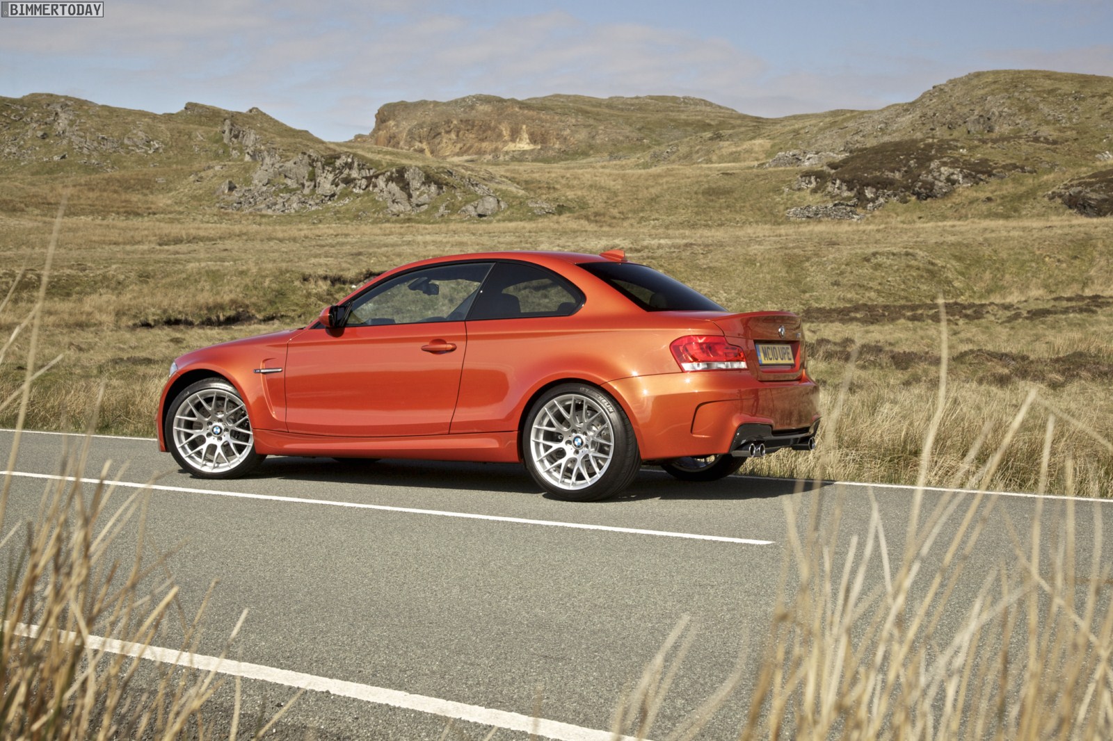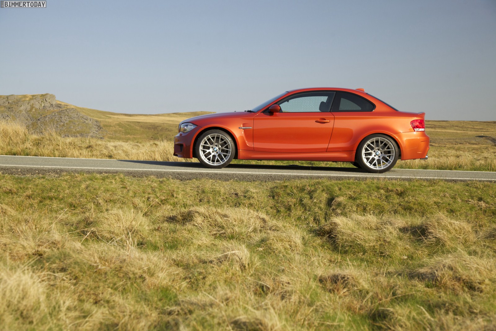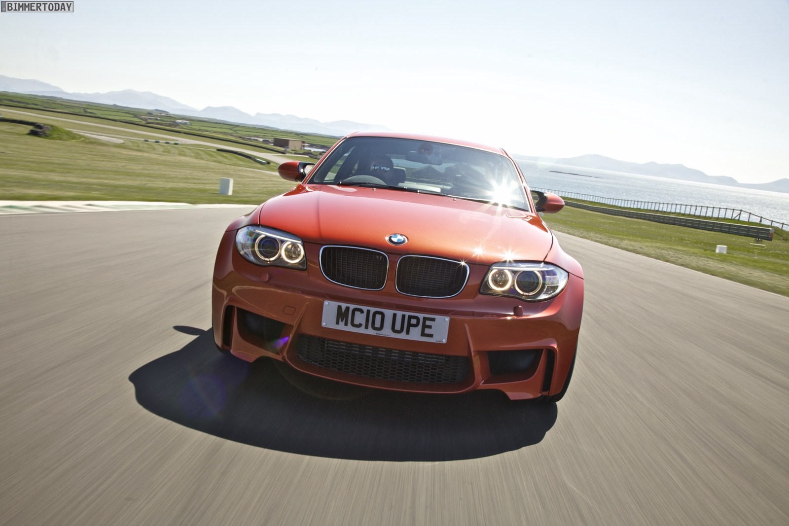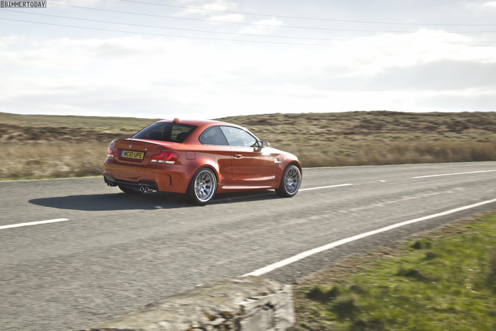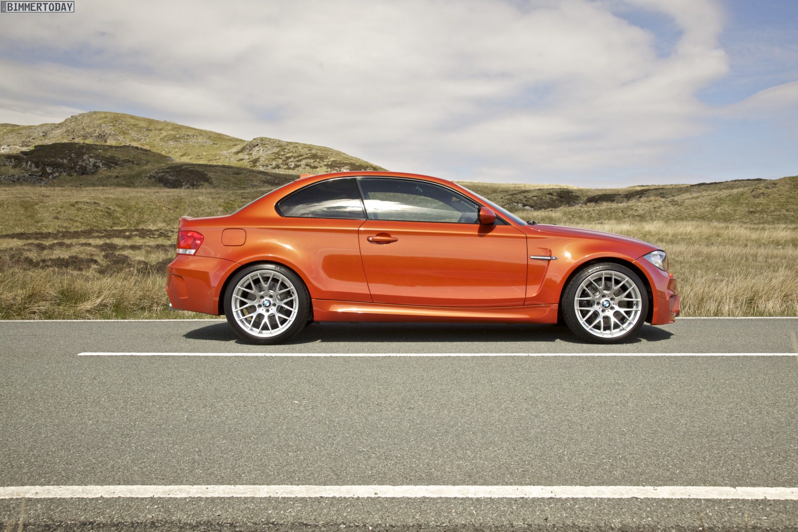 Genau wie im Video sind auch auf den Bildern durchaus qualmende Reifen zu sehen, die sich im internationalen Bildmaterial leider nicht finden. Im Video sieht man neben der englischen Landschaft auch die dazugehörigen Drifts des BMW 1er M Coupés in Valencia Orange Metallic, Fotos von den beiden anderen Farben Alpinweiß und Saphirschwarz bleiben leider weiterhin Mangelware.