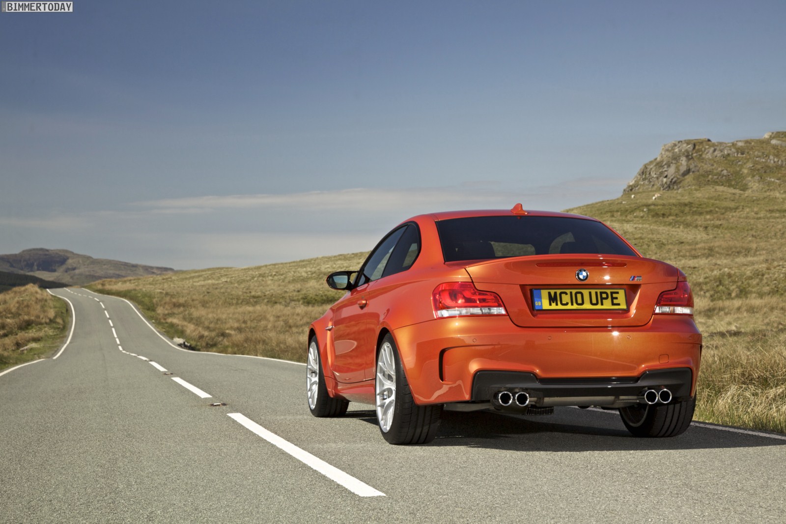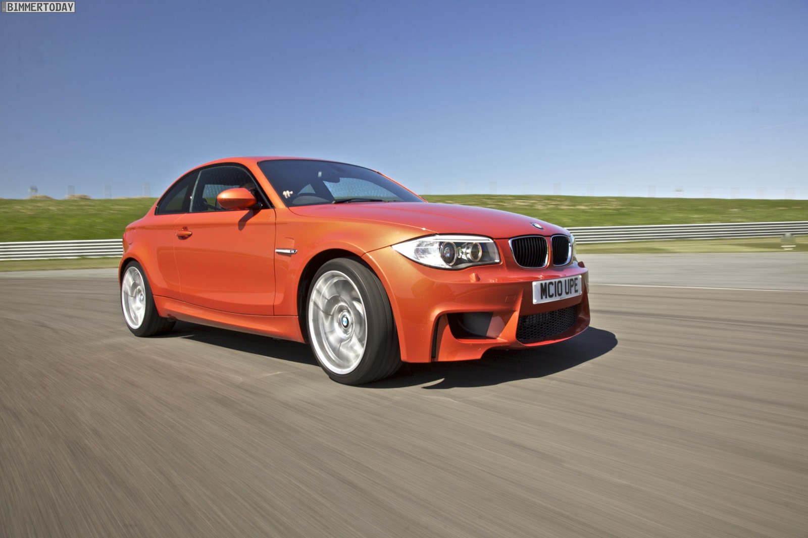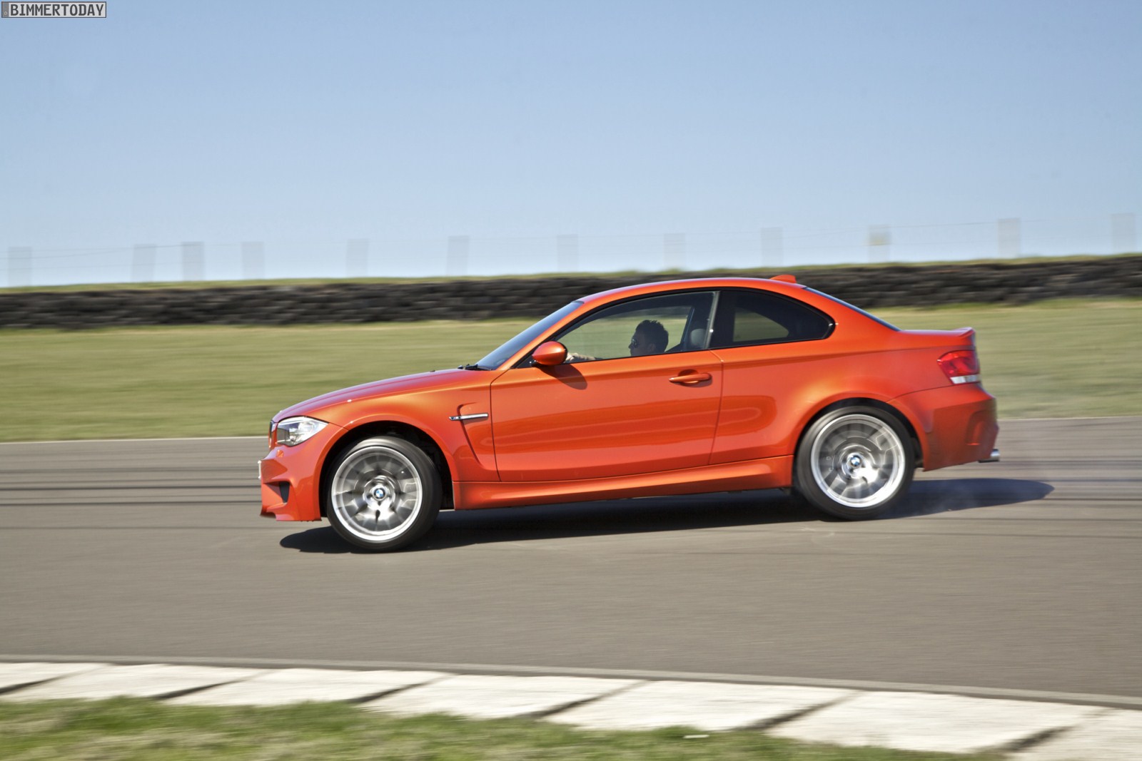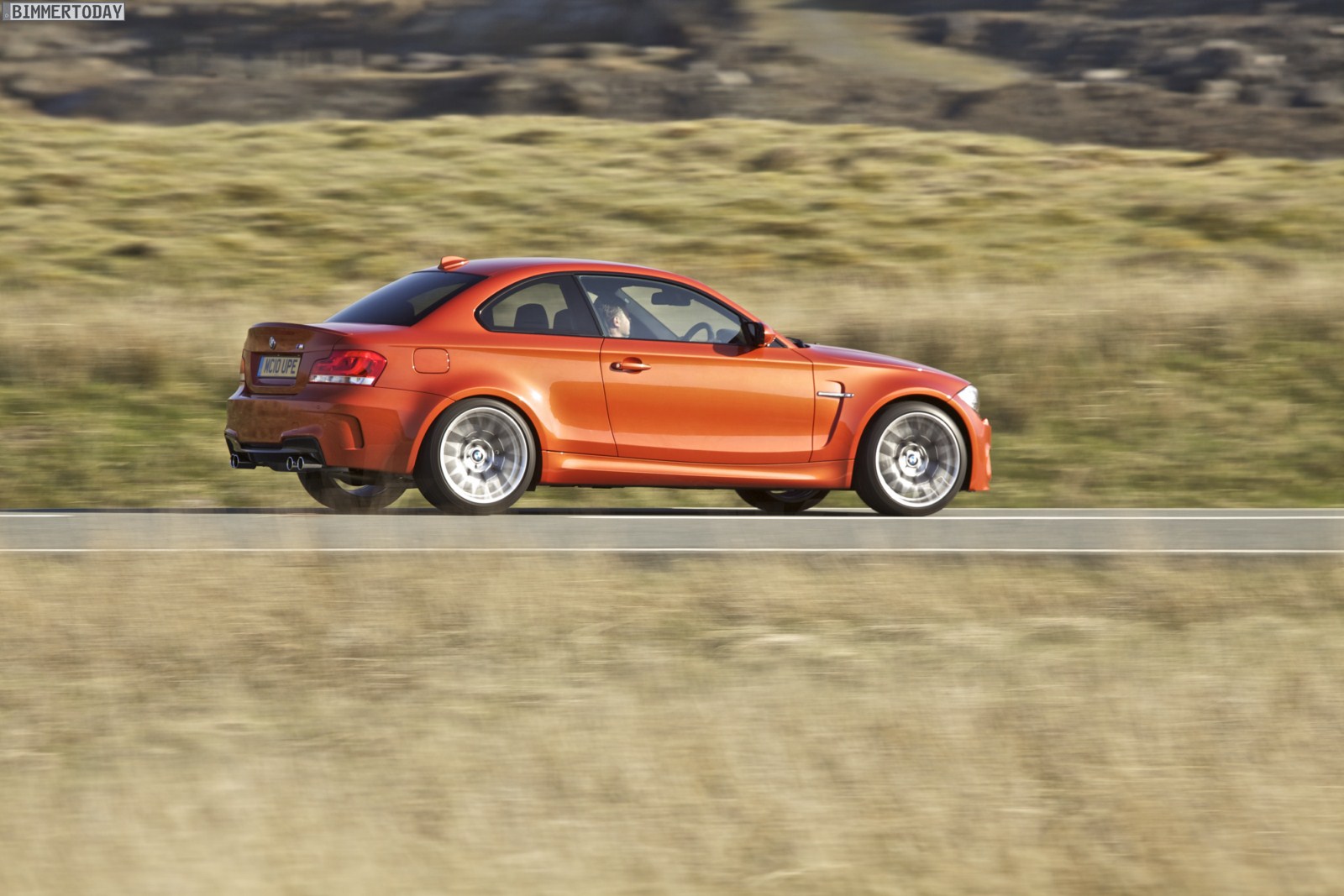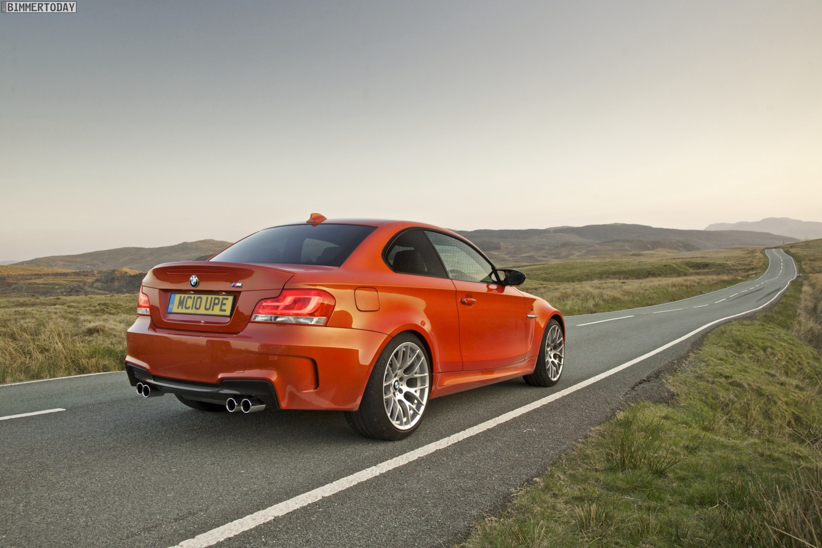 Genau wie im Video sind auch auf den Bildern durchaus qualmende Reifen zu sehen, die sich im internationalen Bildmaterial leider nicht finden. Im Video sieht man neben der englischen Landschaft auch die dazugehörigen Drifts des BMW 1er M Coupés in Valencia Orange Metallic, Fotos von den beiden anderen Farben Alpinweiß und Saphirschwarz bleiben leider weiterhin Mangelware.