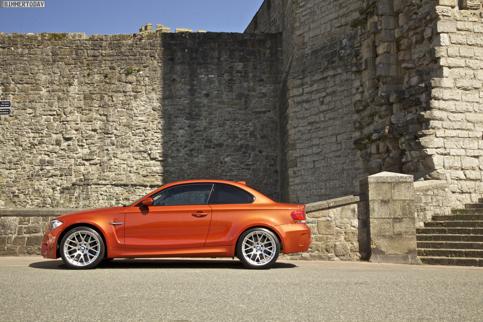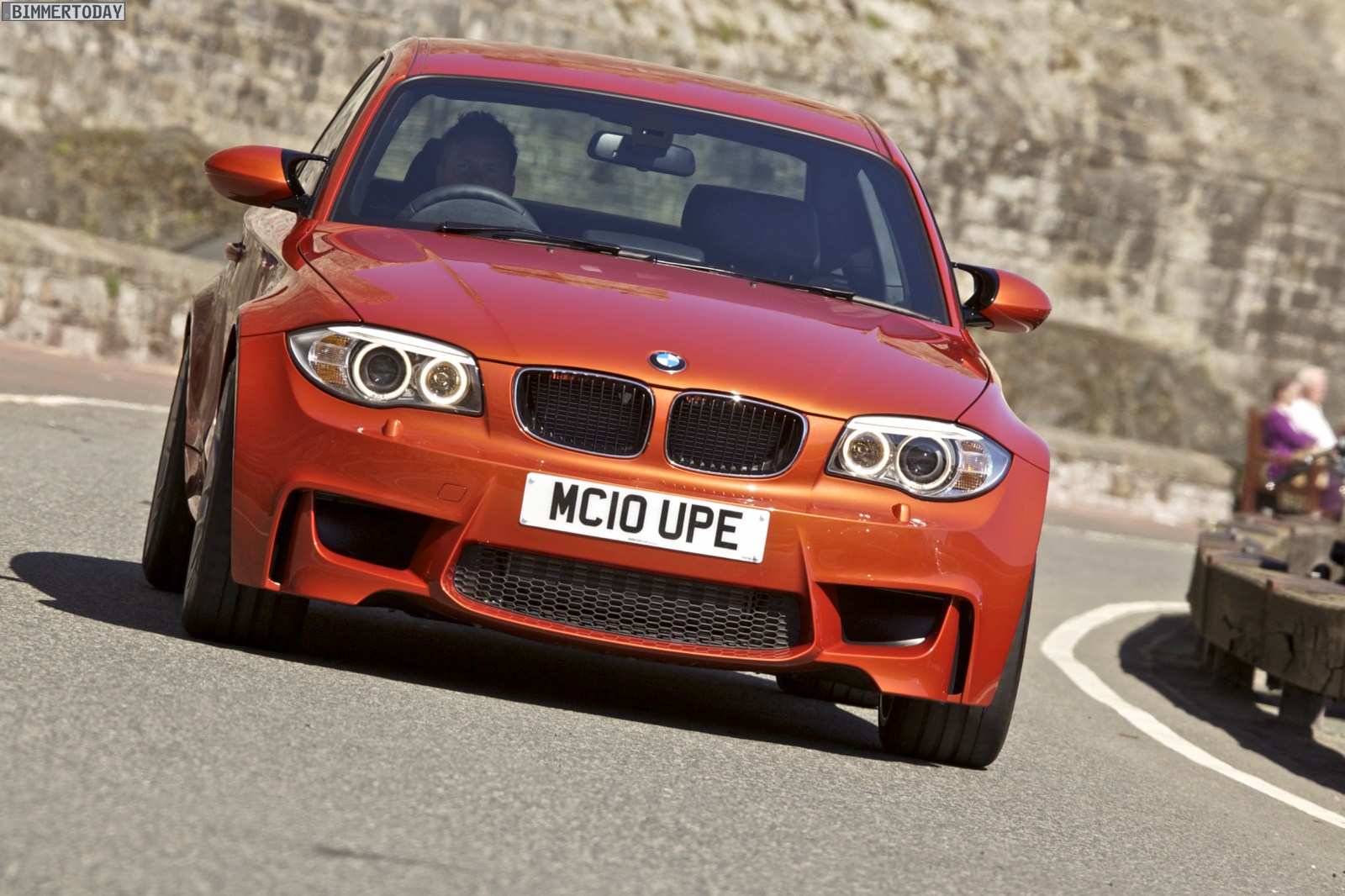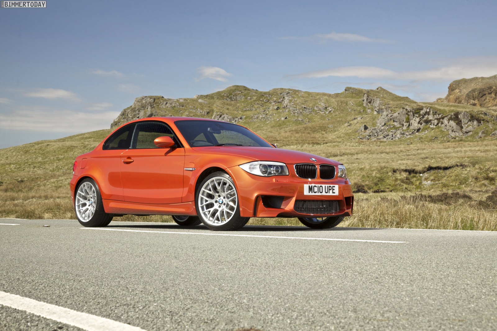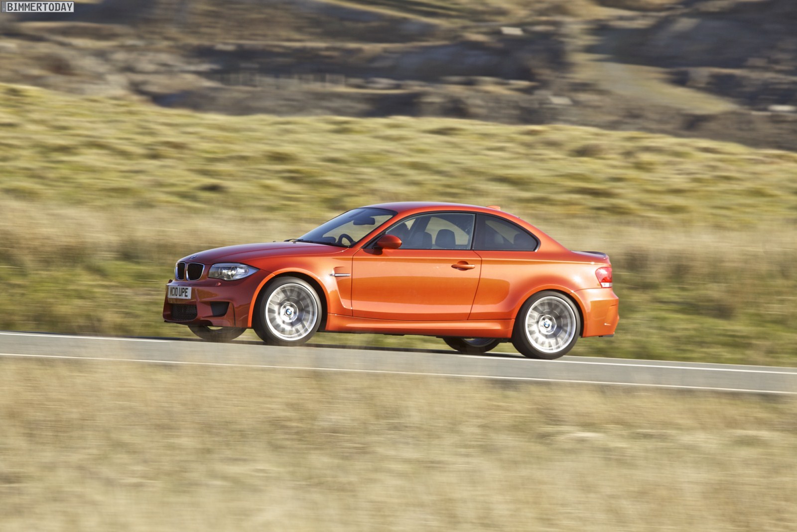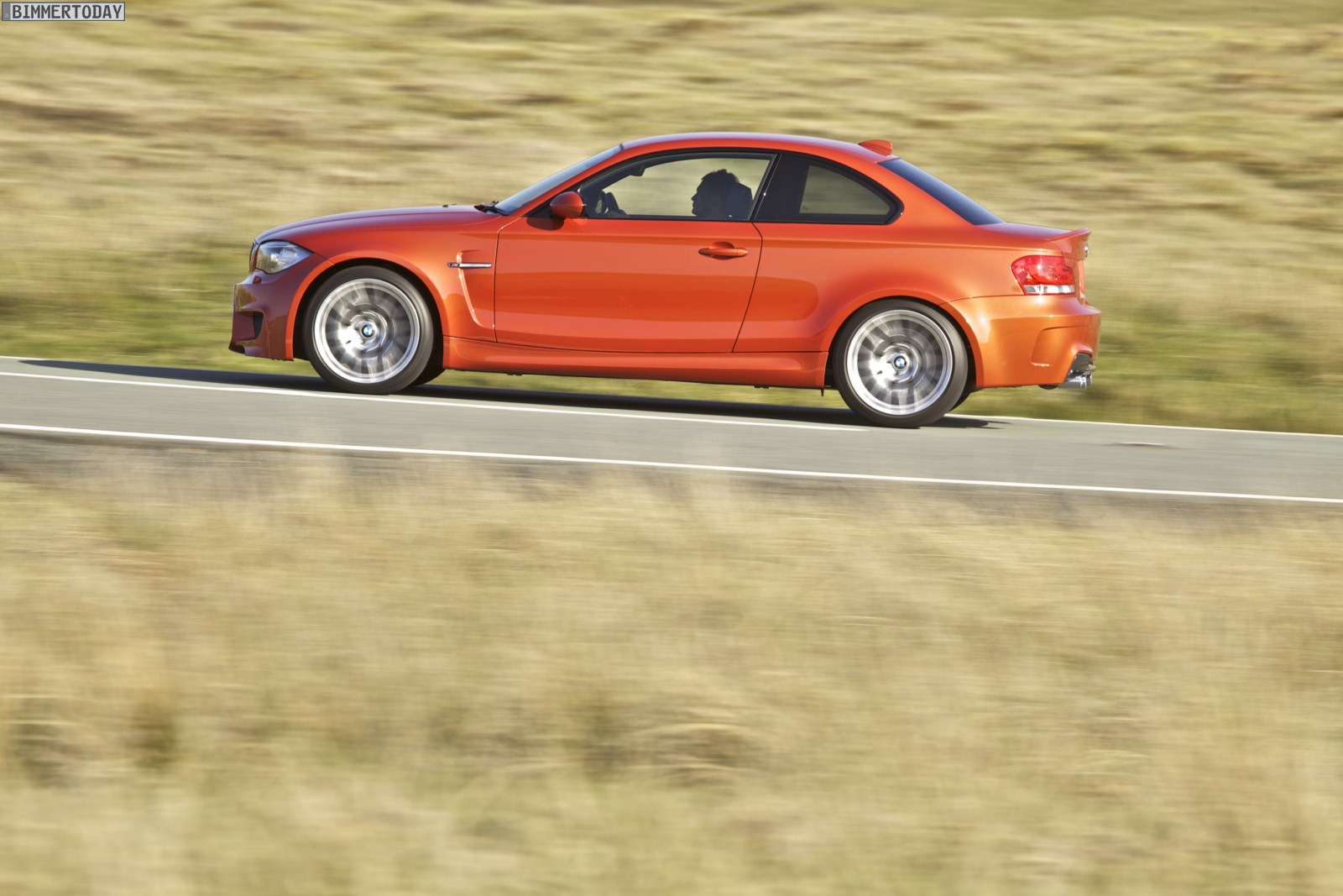Genau wie im Video sind auch auf den Bildern durchaus qualmende Reifen zu sehen, die sich im internationalen Bildmaterial leider nicht finden. Im Video sieht man neben der englischen Landschaft auch die dazugehörigen Drifts des BMW 1er M Coupés in Valencia Orange Metallic, Fotos von den beiden anderen Farben Alpinweiß und Saphirschwarz bleiben leider weiterhin Mangelware.