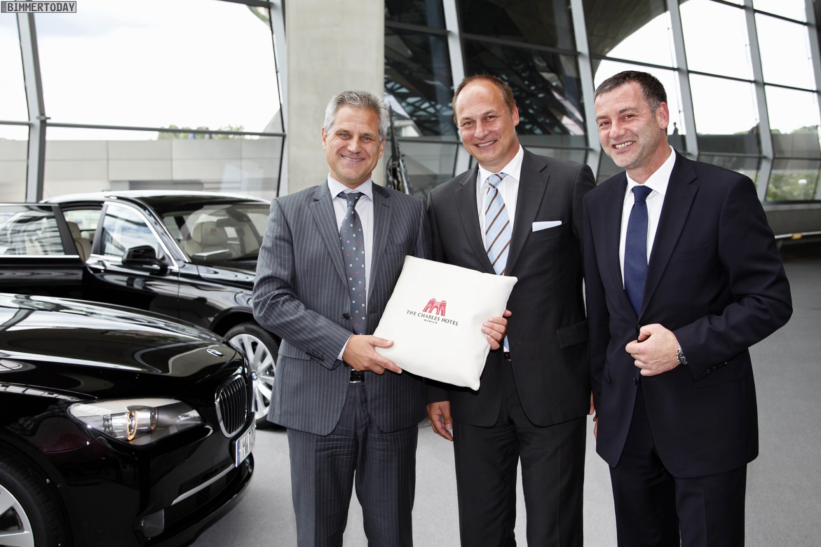 Frank Heller (Hoteldirektor The Charles München): “Ich freue mich, heute zwei BMW Luxuslimousinen in Empfang zu nehmen, die eigens für das The Charles Hotel gestaltet wurden. Individualität und Charakter – dafür stehen wir für unsere Gäste und dies spiegeln auch die BMW Individual 7er in perfekter Form wider.”