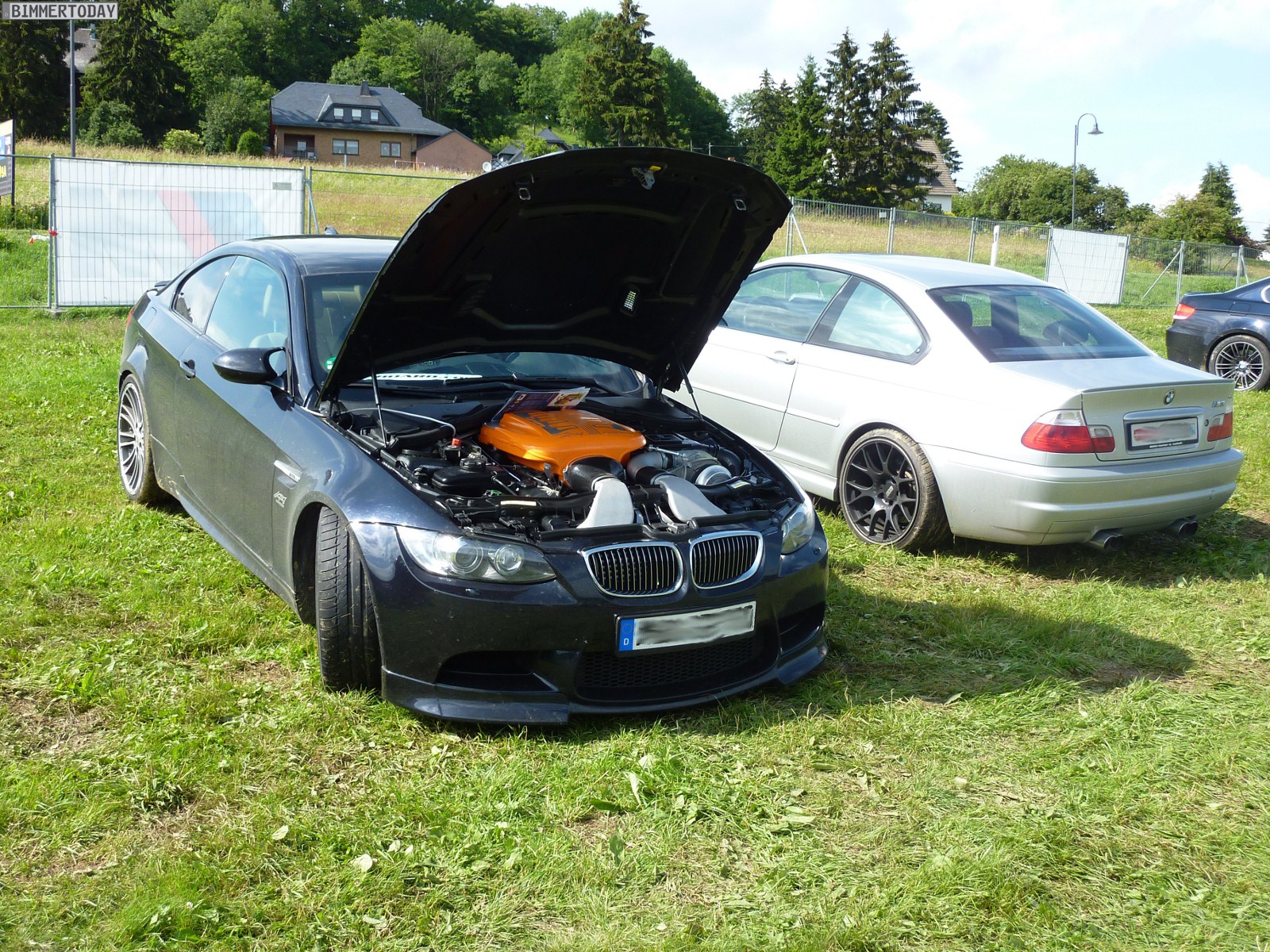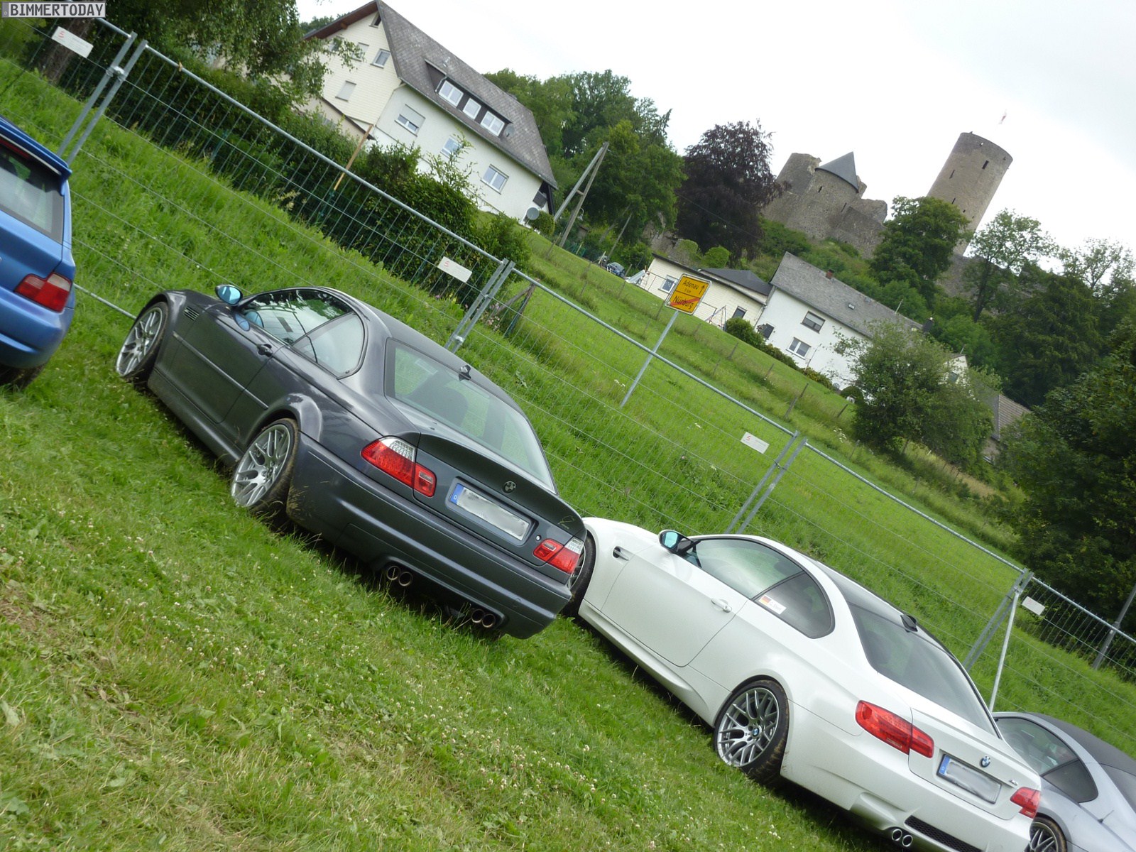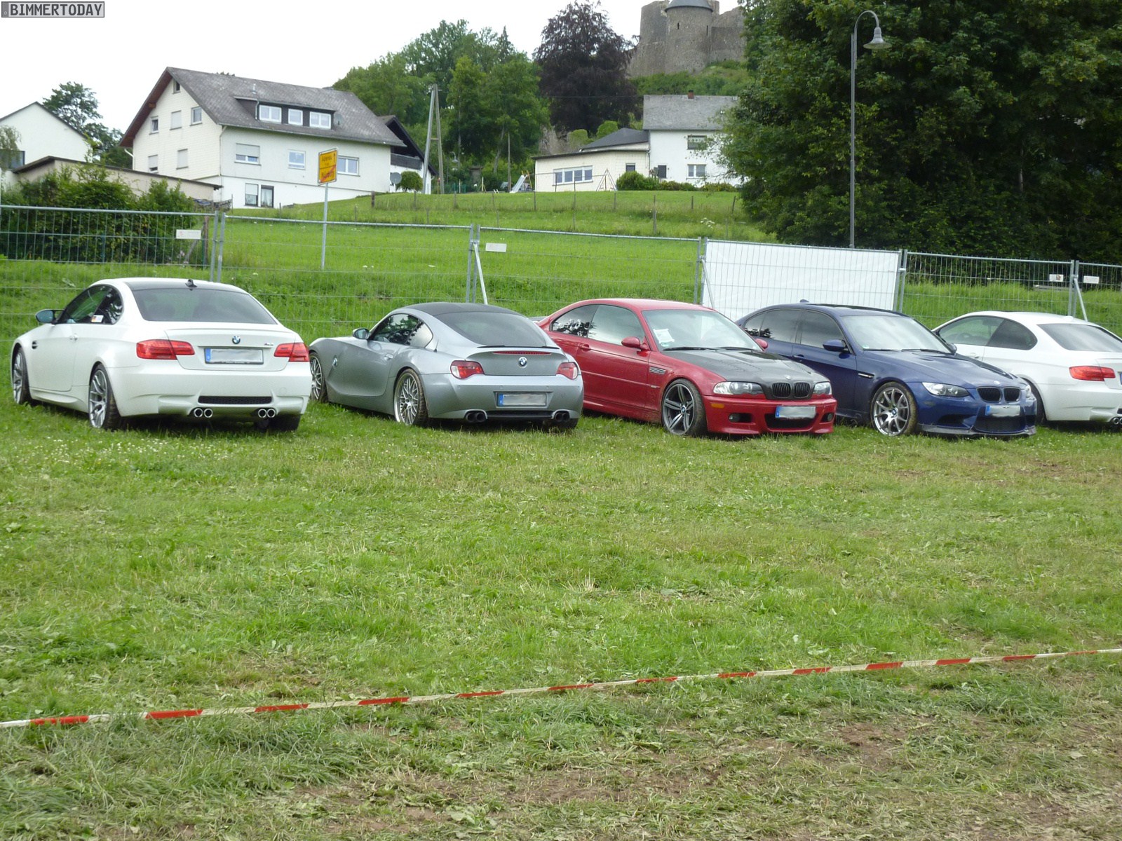 Erstmals findet in diesem Jahr das BMW M Festival statt und gleich die erste Ausgabe hat zahlreiche Besucher aus aller Welt angezogen. Auch wenn es der Wettergott bisher nicht zu gut gemeint hat und uns im Wesentlichen mit Niederschlag bedacht hat, findet sich beinahe jedes Modell der M GmbH auf dem Parkplatz unterhalb der Nürburg – dessen Verlassen mit Blick auf den andauernden Regen und den mittlerweile aufgeweichten Boden für manchen Besucher zum Problem werden dürfte.