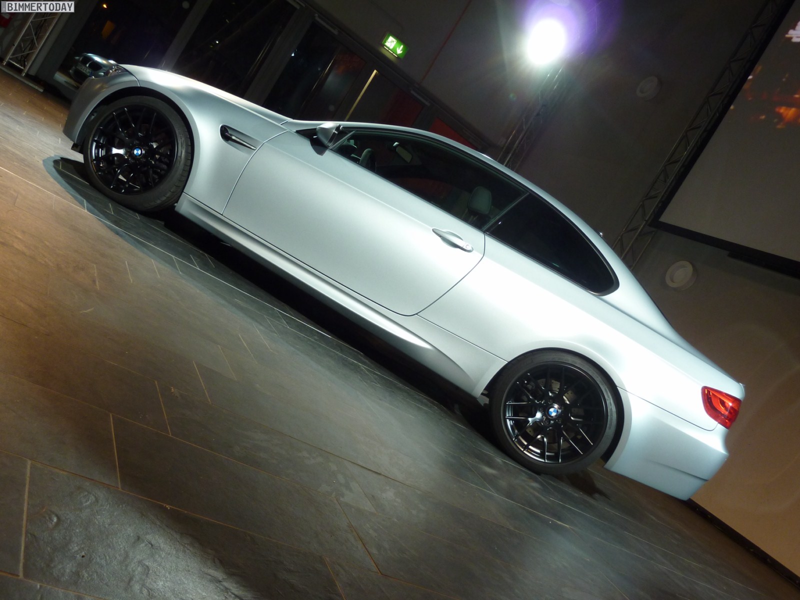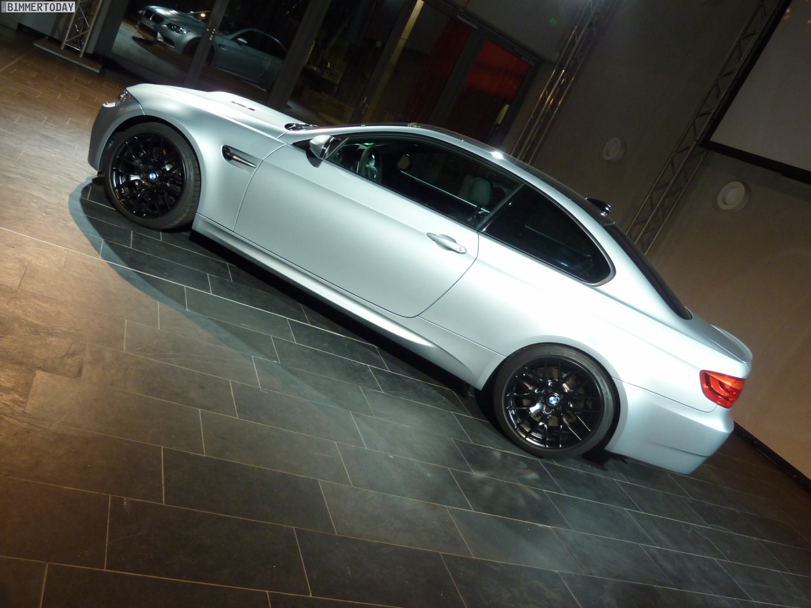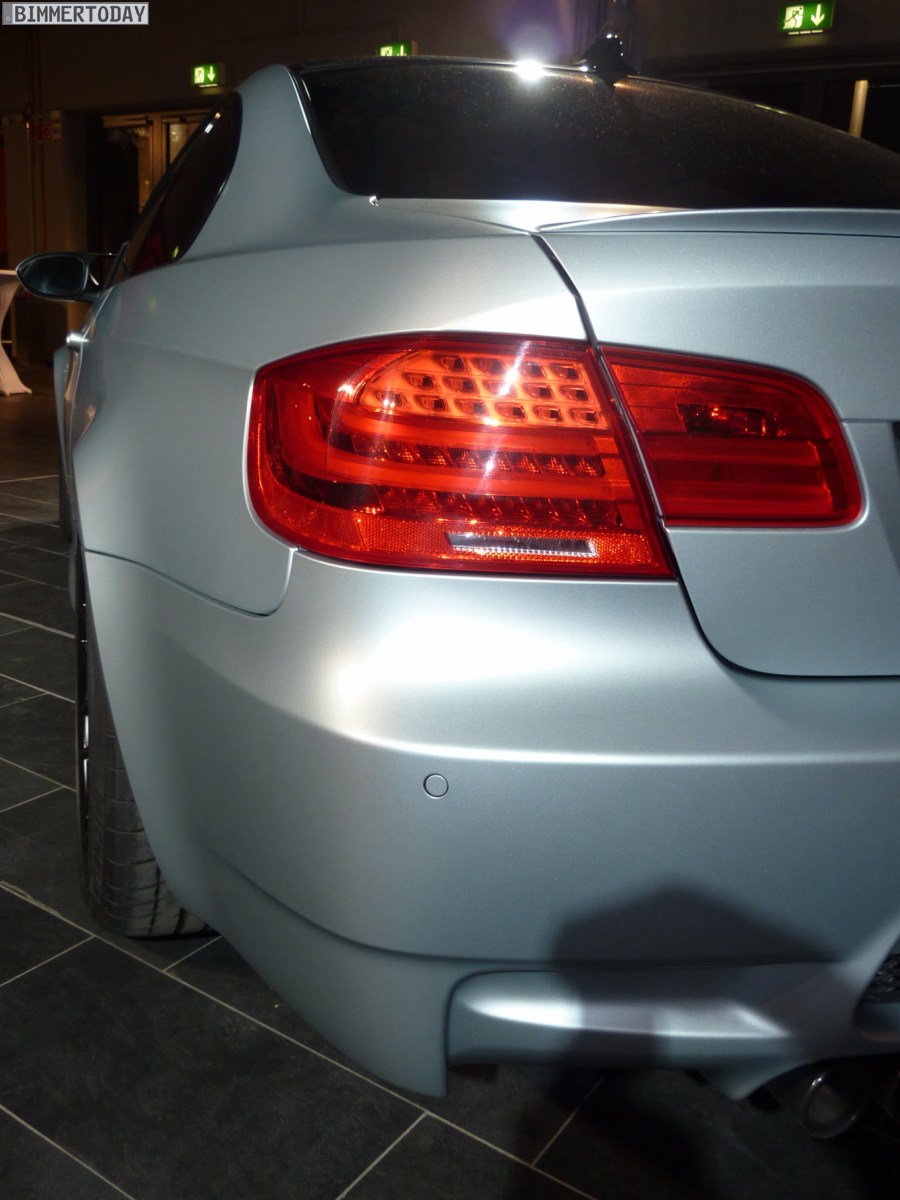 Der Fokus unserer Berichte von der BMW M Night 2011 lag auf dem erstmals präsentierten BMW M3 CRT und dem BMW M5 F10, aber am Rande gab es noch ein weiteres interessantes Fahrzeug: Ausgestellt war ein BMW M3 Coupé mit Competition Paket in der Außenfarbe Frozen Silver Metallic, die auch für den BMW M5 F10 bestellbar sein wird und eine hellere Alternative zur matten Lackierung Frozen Grey darstellt.