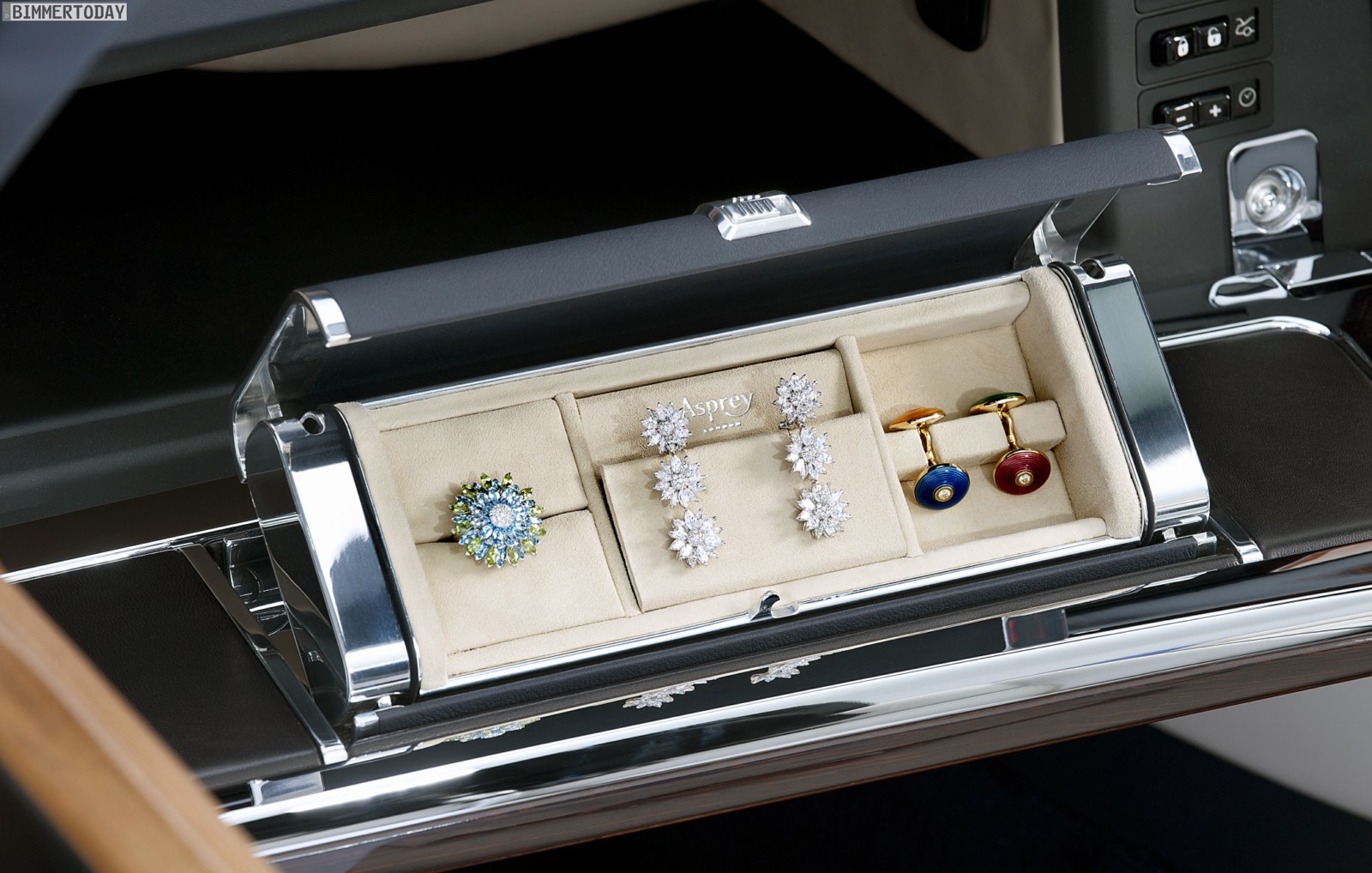 Im Grunde genommen handelt es sich bei fast jedem Rolls-Royce um ein Unikat, aber im konkreten Fall haben sich die Arbeiter des Individual-Programms Bespoke besonders große Mühe gegeben. Das Fahrzeug soll so das perfekte Gefährt für einen Wochenendausflug mit offenem Dach verkörpern, wozu nach Ansicht der Experten in Goodwood auch ein Schmuckkästchen von Asprey für das Handschuhfach gehört.