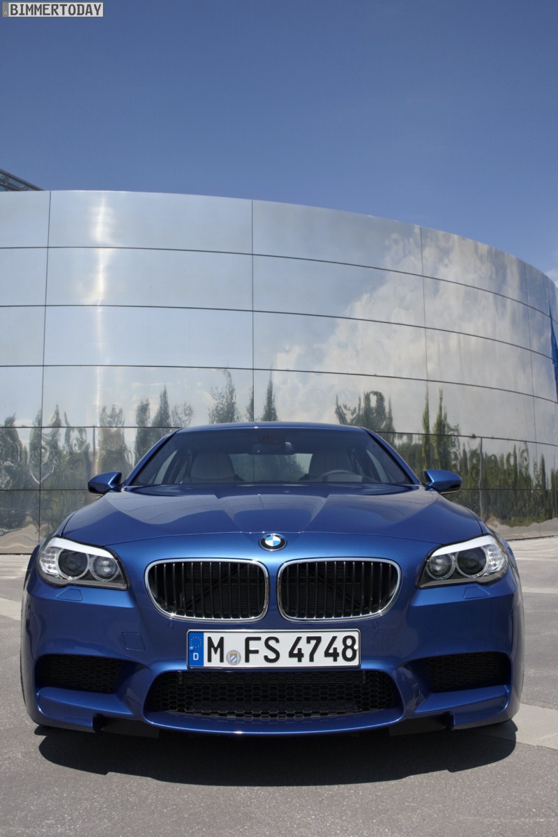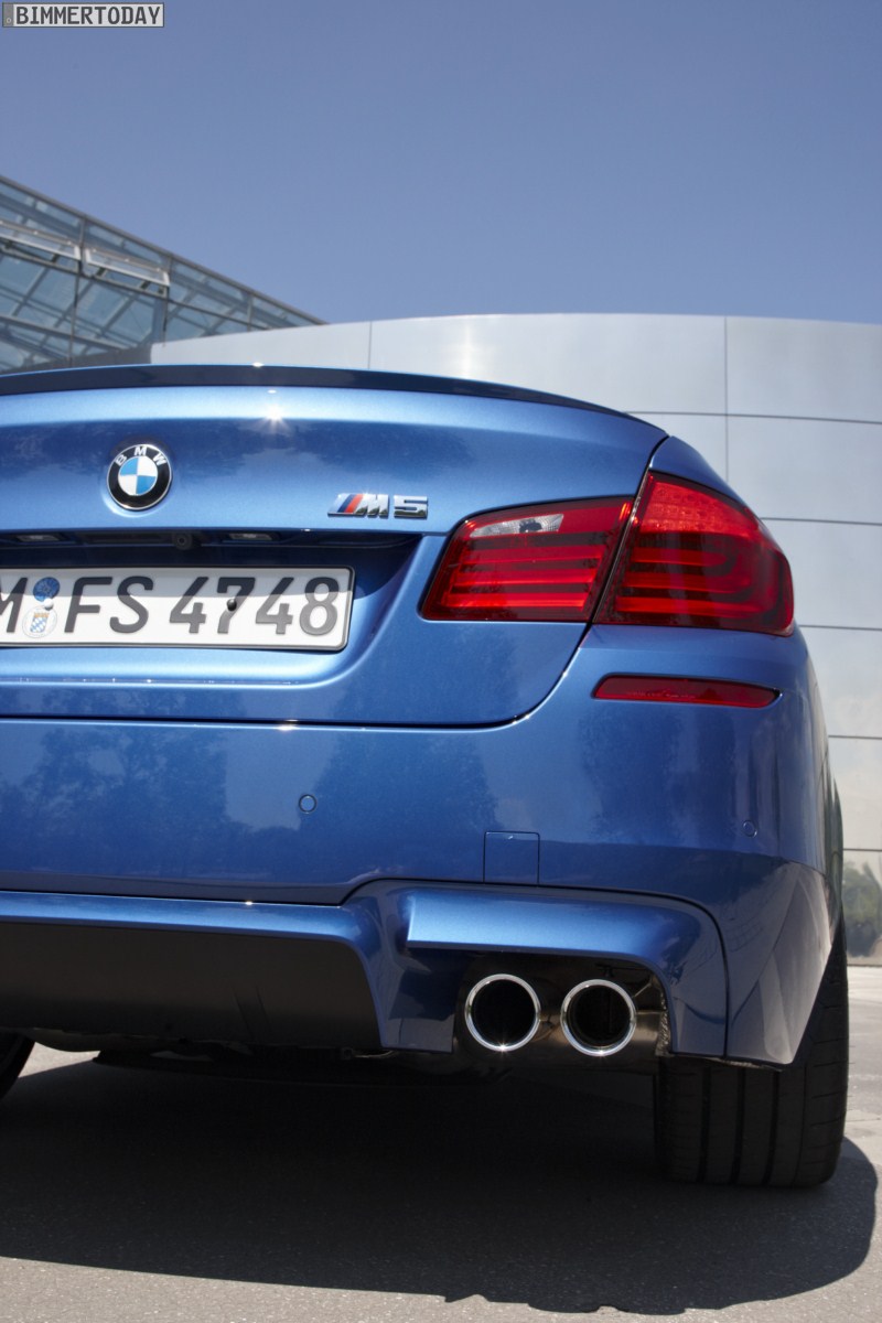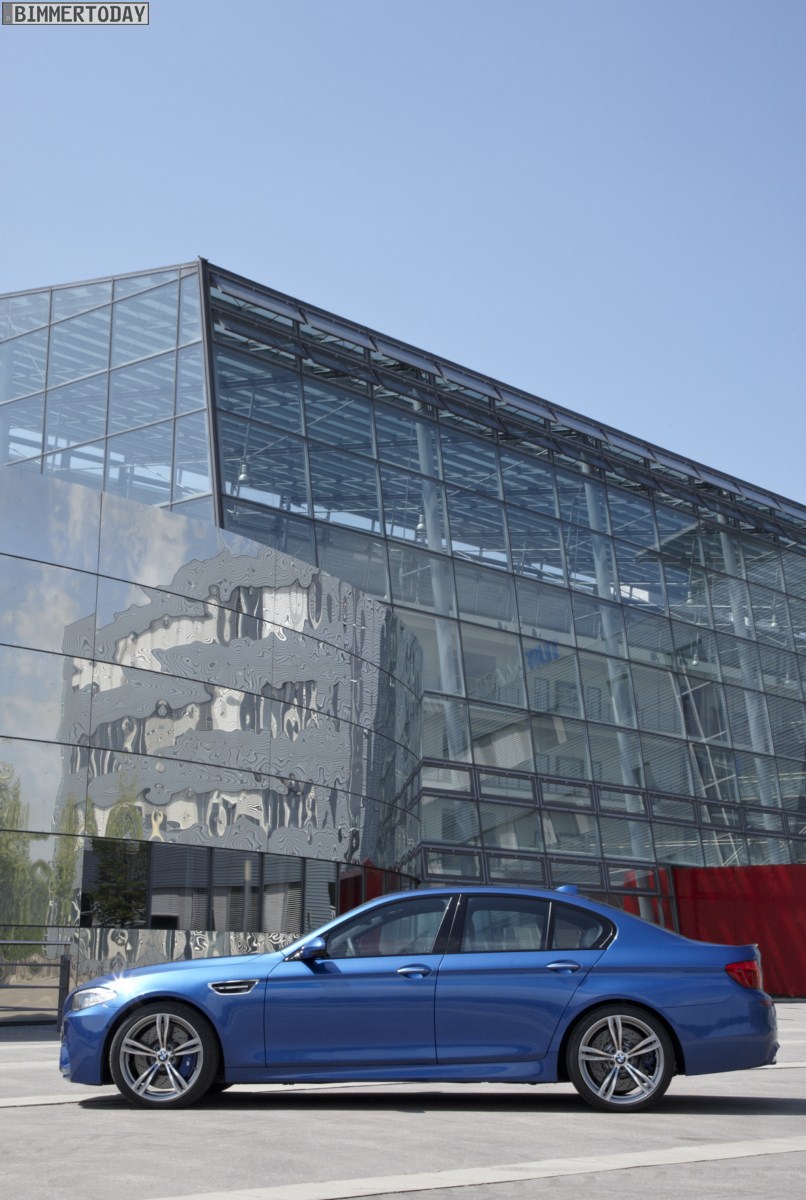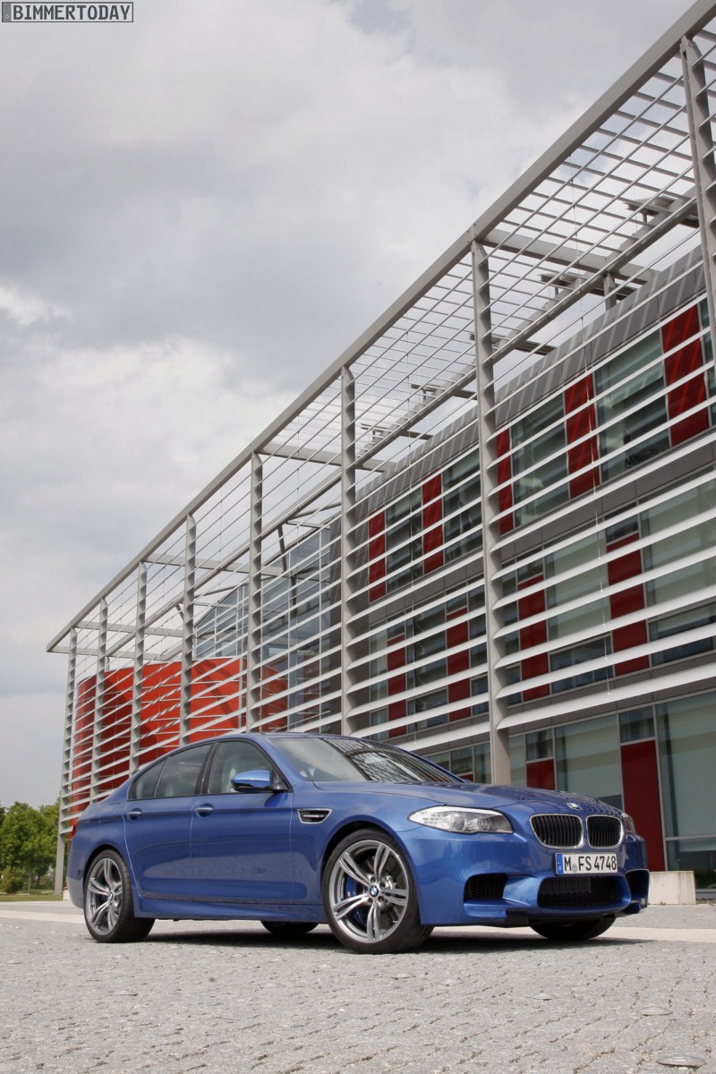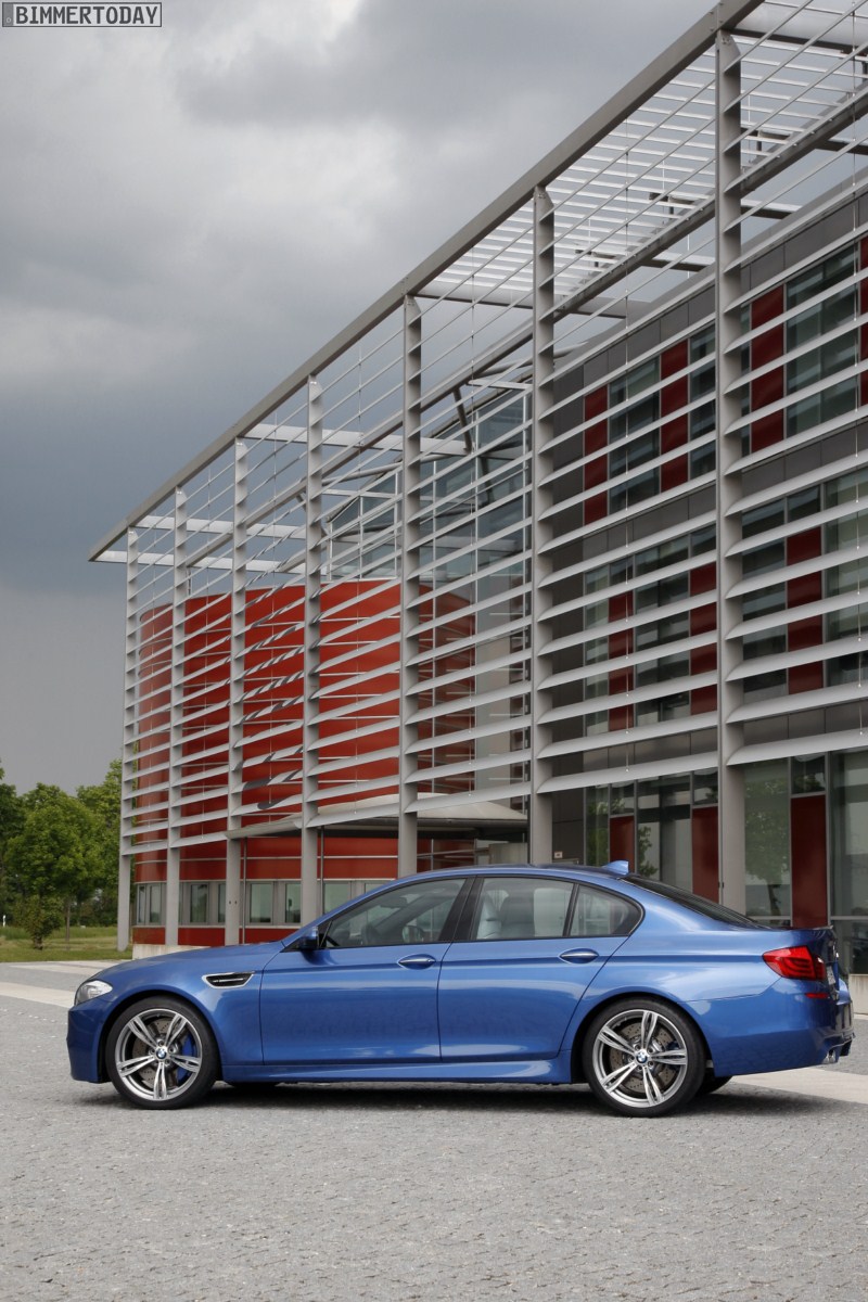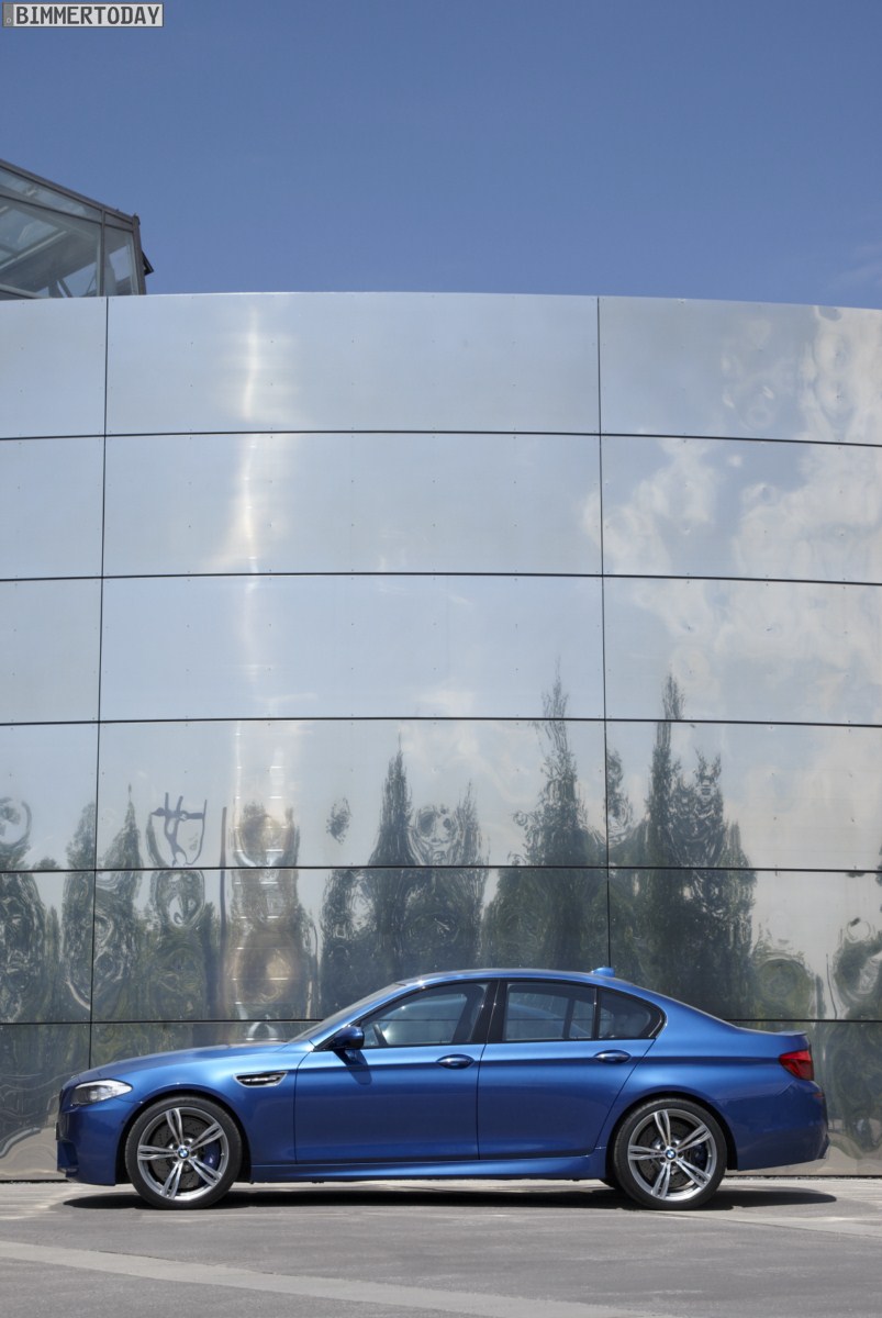 Im Rahmen der M Night am vergangenen Donnerstag hat BMW noch einige weitere Fotos zum neuen BMW M5 F10 veröffentlicht, die wir euch natürlich nicht vorenthalten wollen. Zu sehen ist die Power-Limousine auch auf diesen Bildern in Monte Carlo Blau Metallic und mit den optionalen Leichtmetallrädern Doppelspeiche 343 M im 20 Zoll-Format, die 2.750 Euro Aufpreis kosten und mit 265er respektive 295er Reifen bezogen sind.
