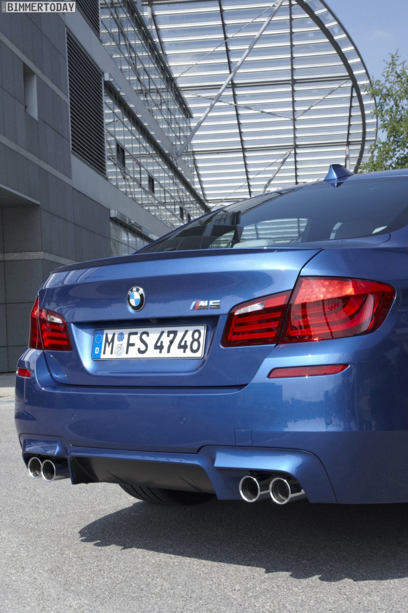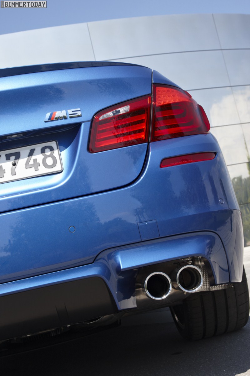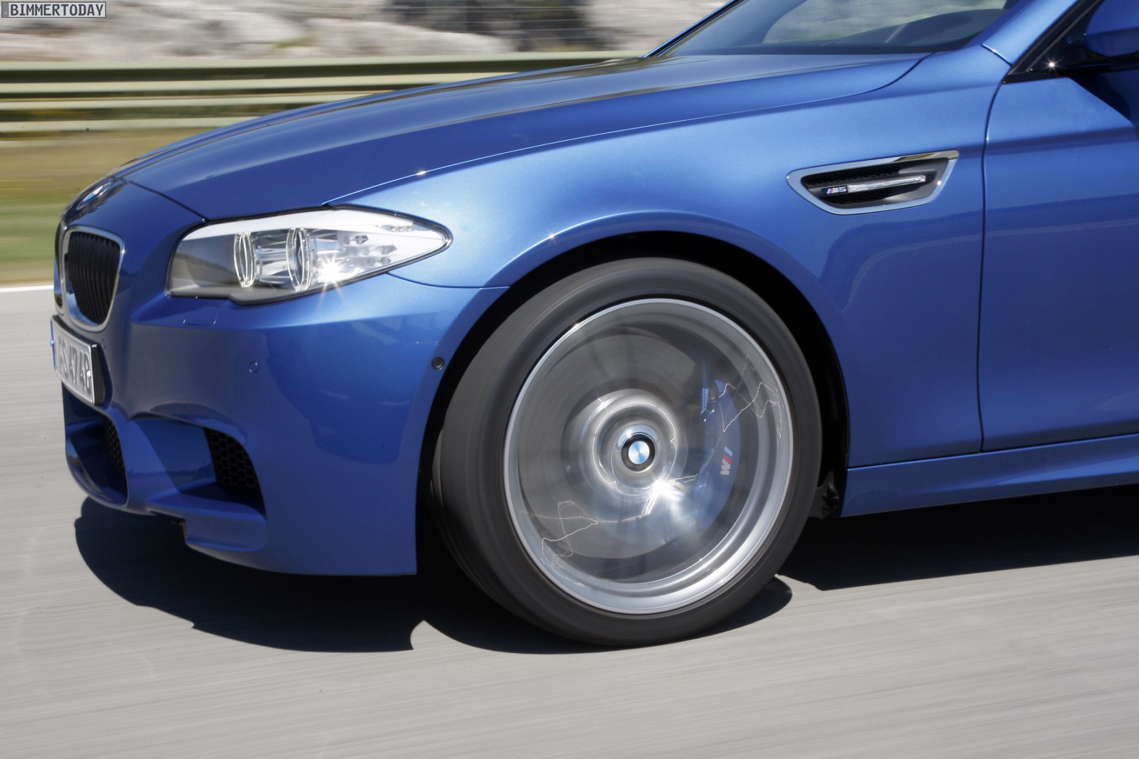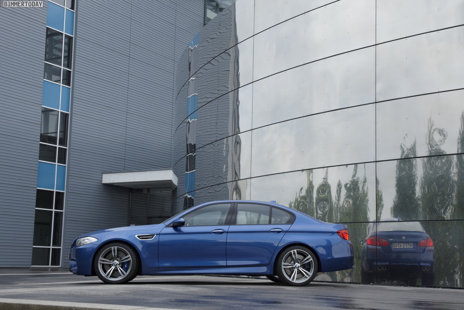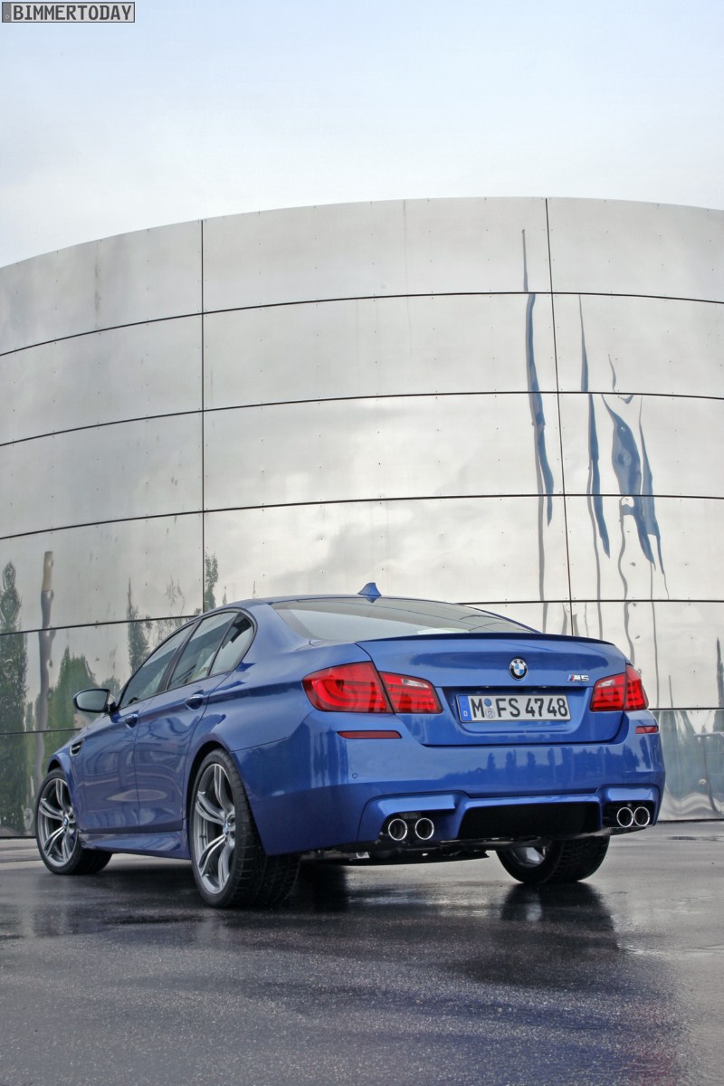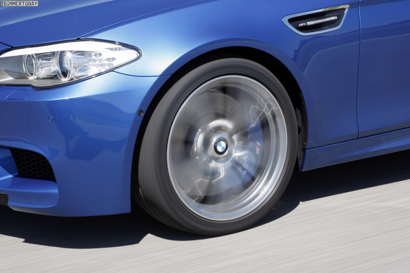 Im Rahmen der M Night am vergangenen Donnerstag hat BMW noch einige weitere Fotos zum neuen BMW M5 F10 veröffentlicht, die wir euch natürlich nicht vorenthalten wollen. Zu sehen ist die Power-Limousine auch auf diesen Bildern in Monte Carlo Blau Metallic und mit den optionalen Leichtmetallrädern Doppelspeiche 343 M im 20 Zoll-Format, die 2.750 Euro Aufpreis kosten und mit 265er respektive 295er Reifen bezogen sind.