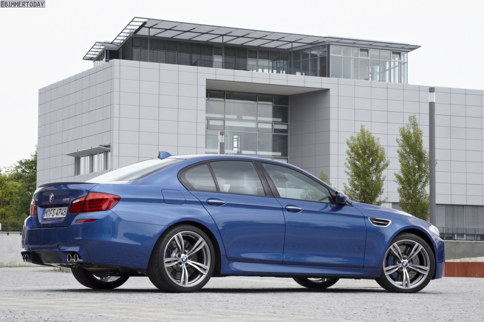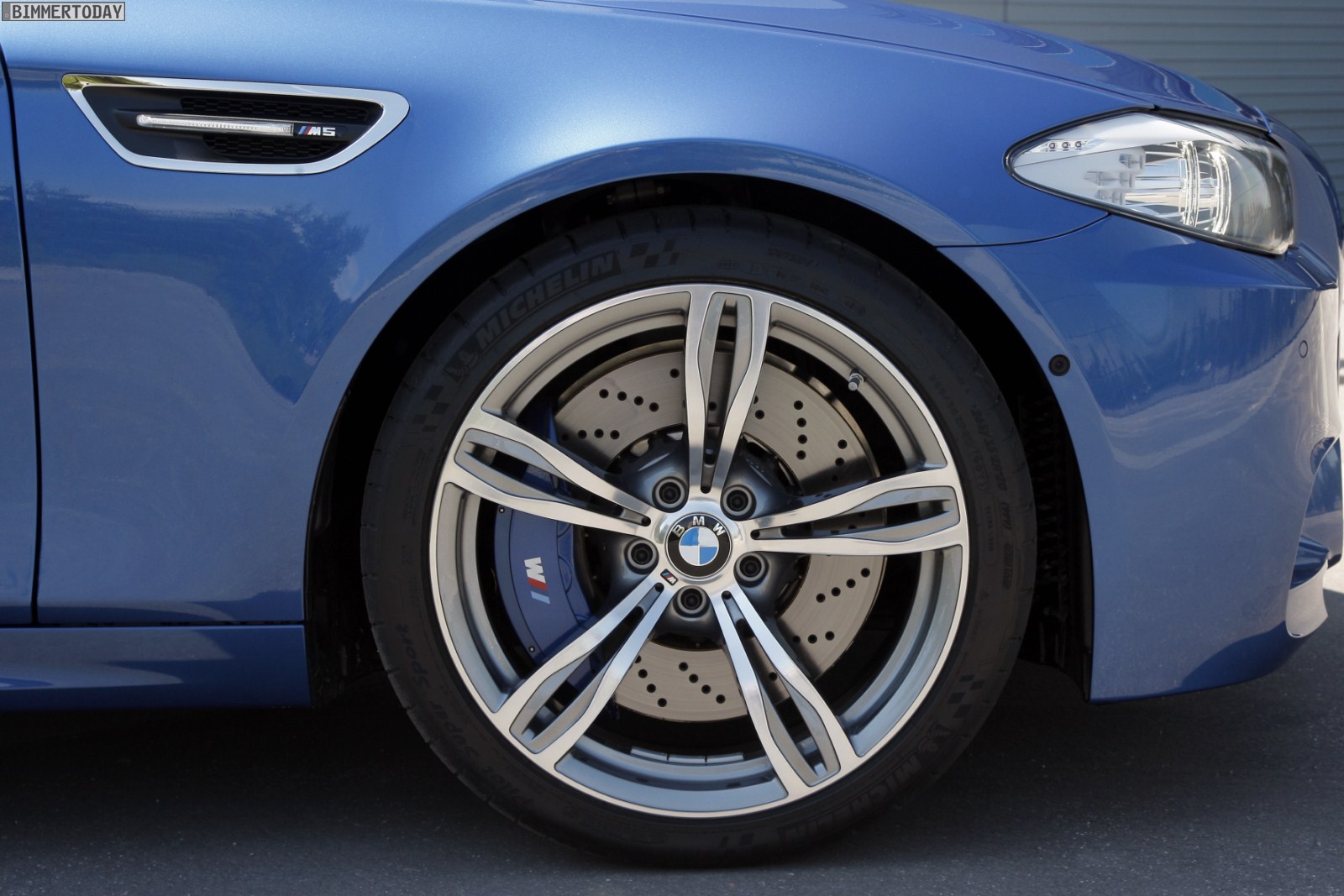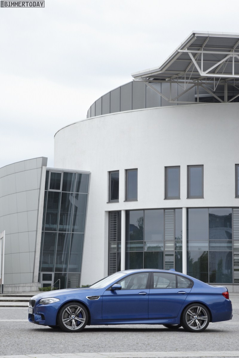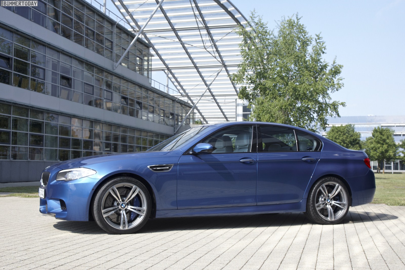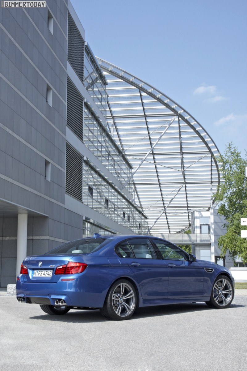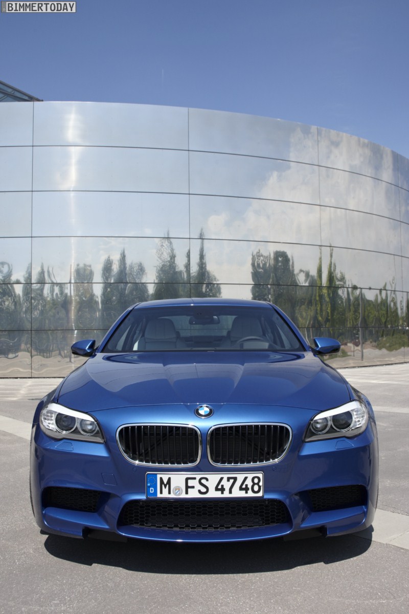 Im Rahmen der M Night am vergangenen Donnerstag hat BMW noch einige weitere Fotos zum neuen BMW M5 F10 veröffentlicht, die wir euch natürlich nicht vorenthalten wollen. Zu sehen ist die Power-Limousine auch auf diesen Bildern in Monte Carlo Blau Metallic und mit den optionalen Leichtmetallrädern Doppelspeiche 343 M im 20 Zoll-Format, die 2.750 Euro Aufpreis kosten und mit 265er respektive 295er Reifen bezogen sind.