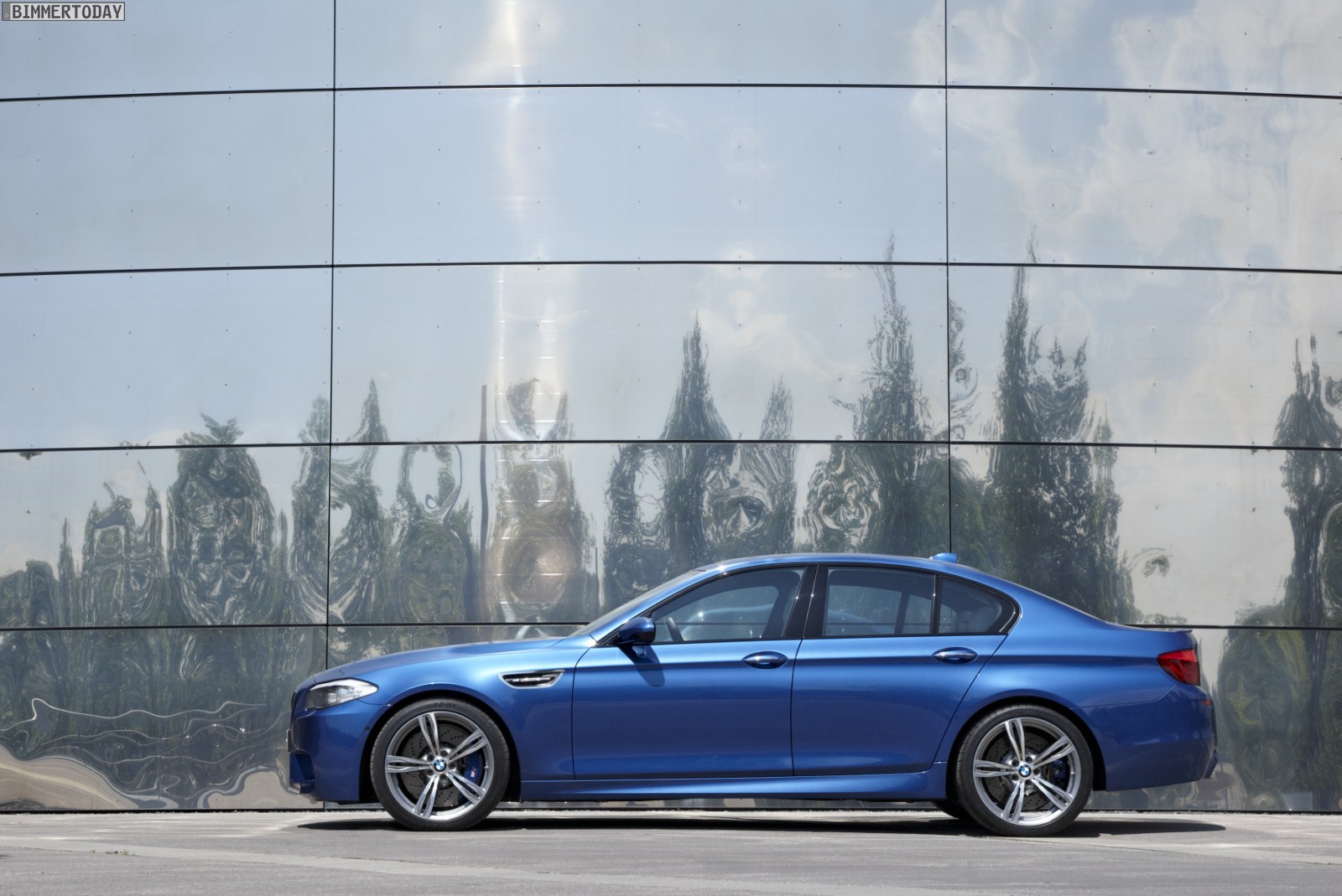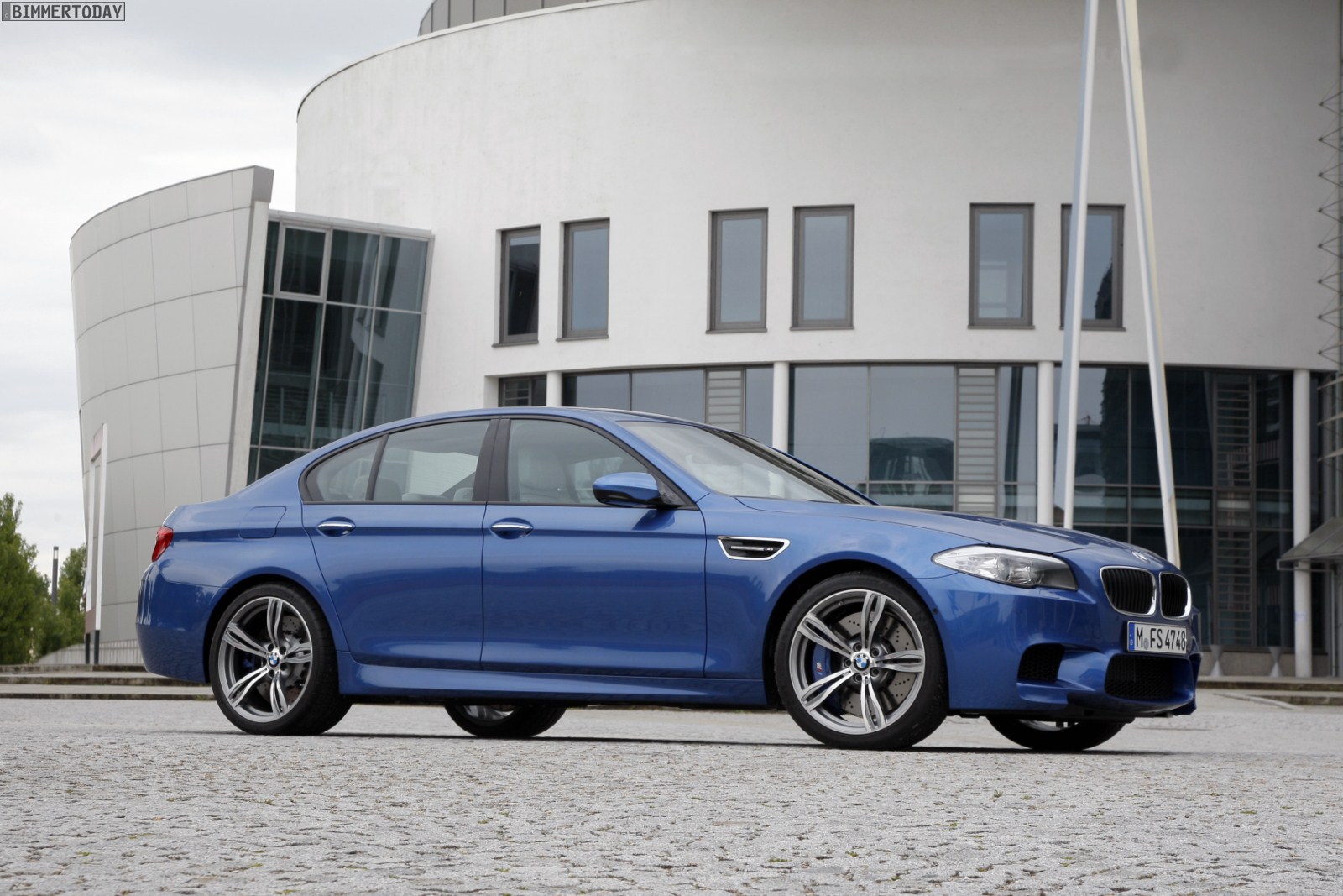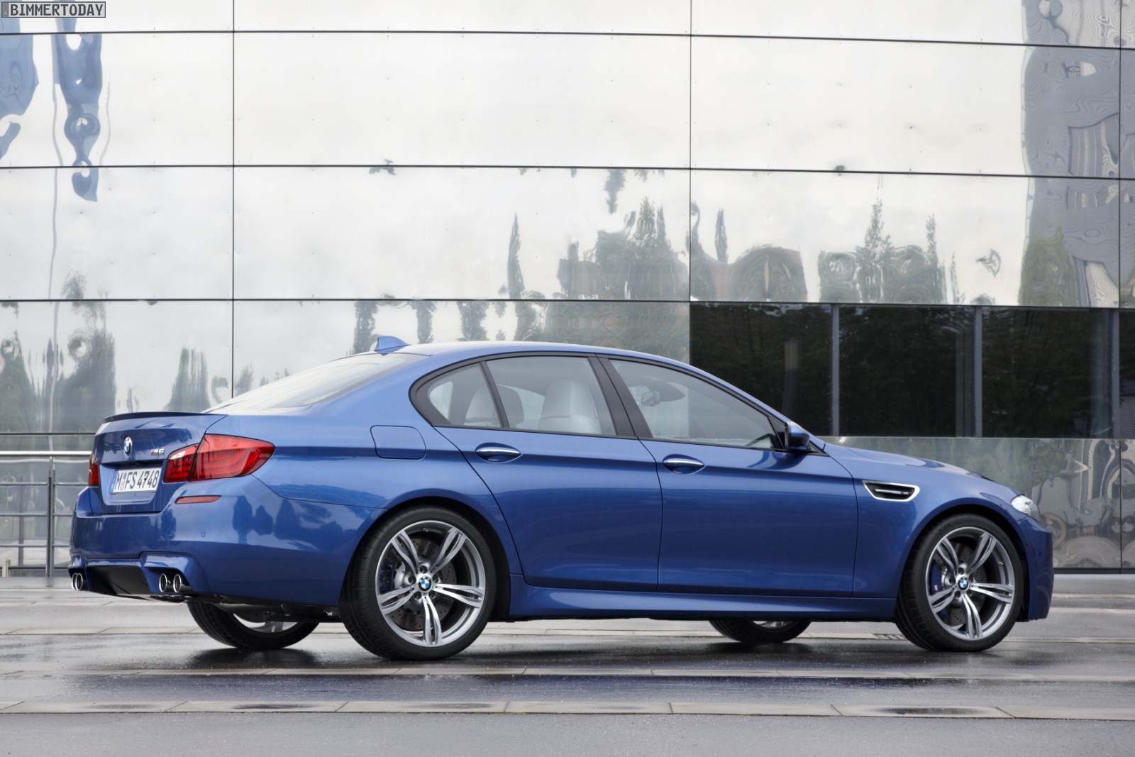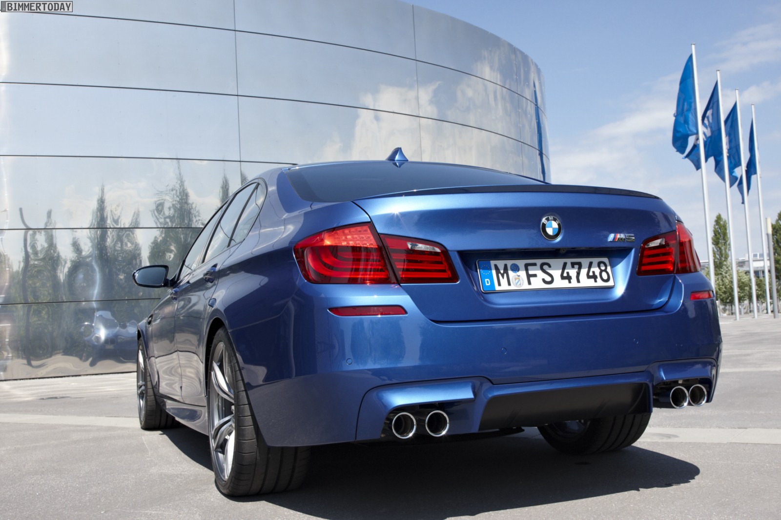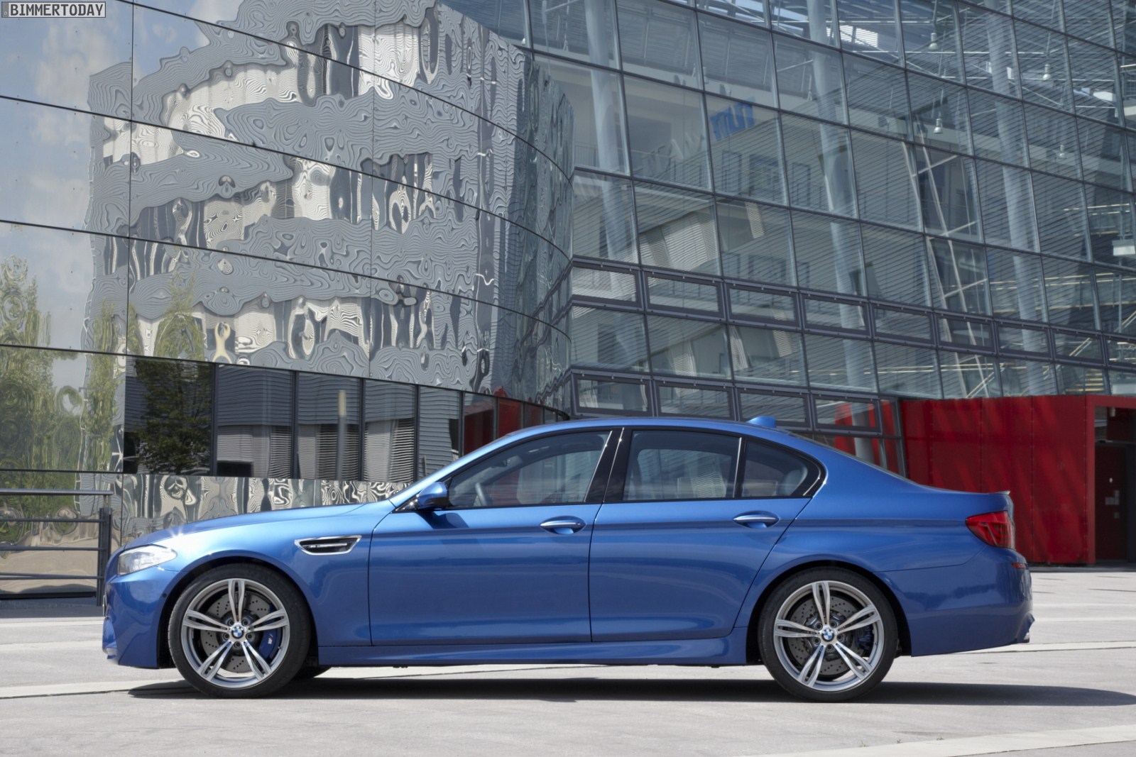 Im Rahmen der M Night am vergangenen Donnerstag hat BMW noch einige weitere Fotos zum neuen BMW M5 F10 veröffentlicht, die wir euch natürlich nicht vorenthalten wollen. Zu sehen ist die Power-Limousine auch auf diesen Bildern in Monte Carlo Blau Metallic und mit den optionalen Leichtmetallrädern Doppelspeiche 343 M im 20 Zoll-Format, die 2.750 Euro Aufpreis kosten und mit 265er respektive 295er Reifen bezogen sind.