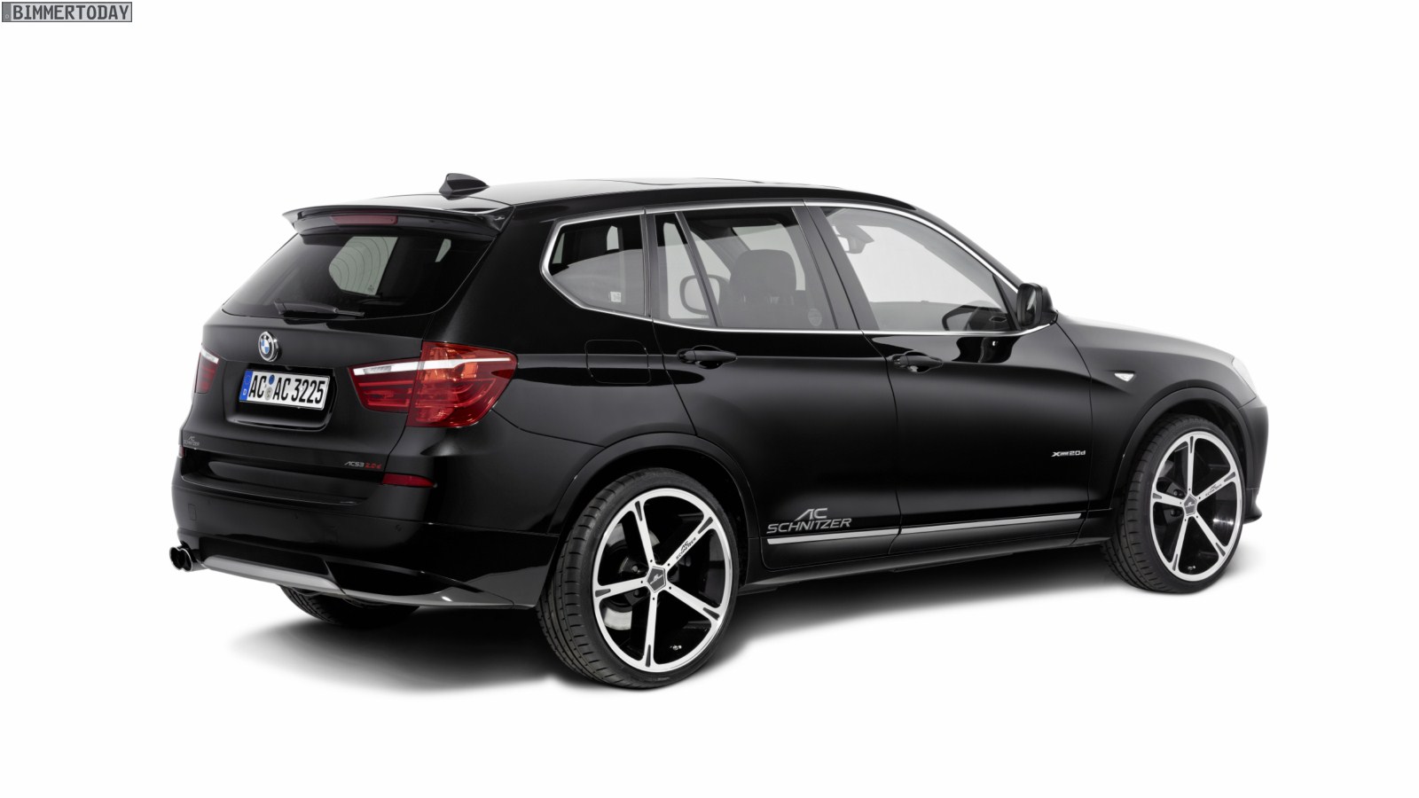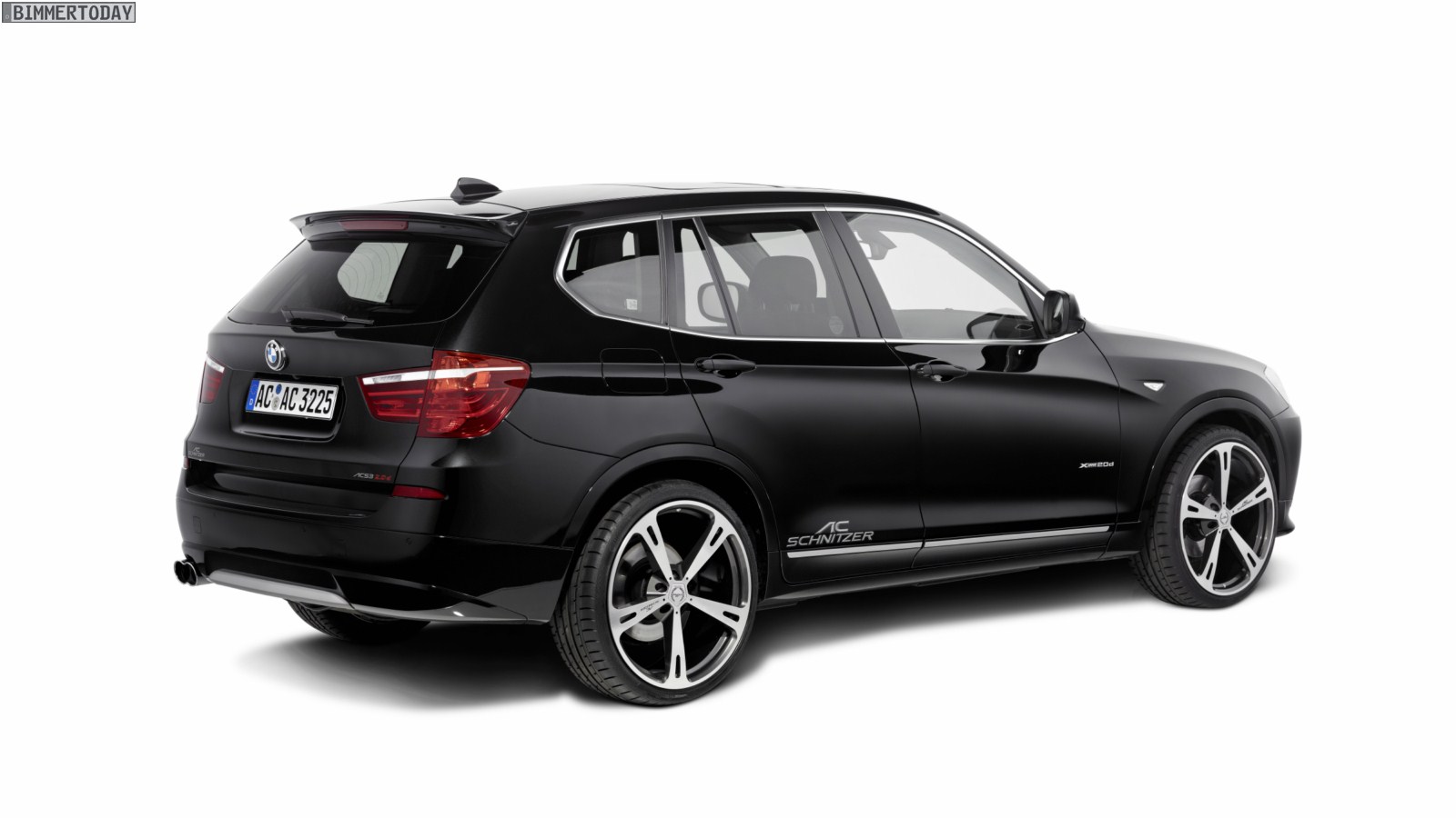 Der optisch gelungene X3 der zweiten Generation zitiert einige Details des ersten X5 und ist ihm mit seinen Abmessungen nahezu ebenbürtig. So verwundert es auch nicht sonderlich, dass der für das Design von AC Schnitzer verantwortliche Michele Viandante zum Beispiel beim Frontspoiler mit den angedeuteten Flaps einige Details der alten Tuningversion erneut aufgriff. Ebenso gibt es wieder einen vergrößerten Dachheckspoiler. Das Fahrwerk wird alltagsgerecht mittels Federn moderat tiefergelegt.
