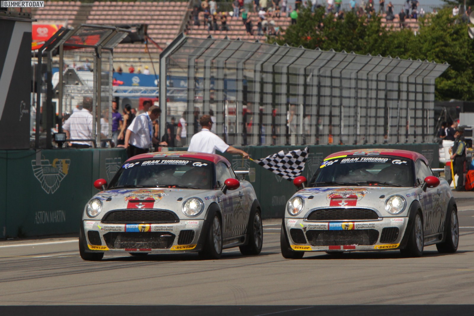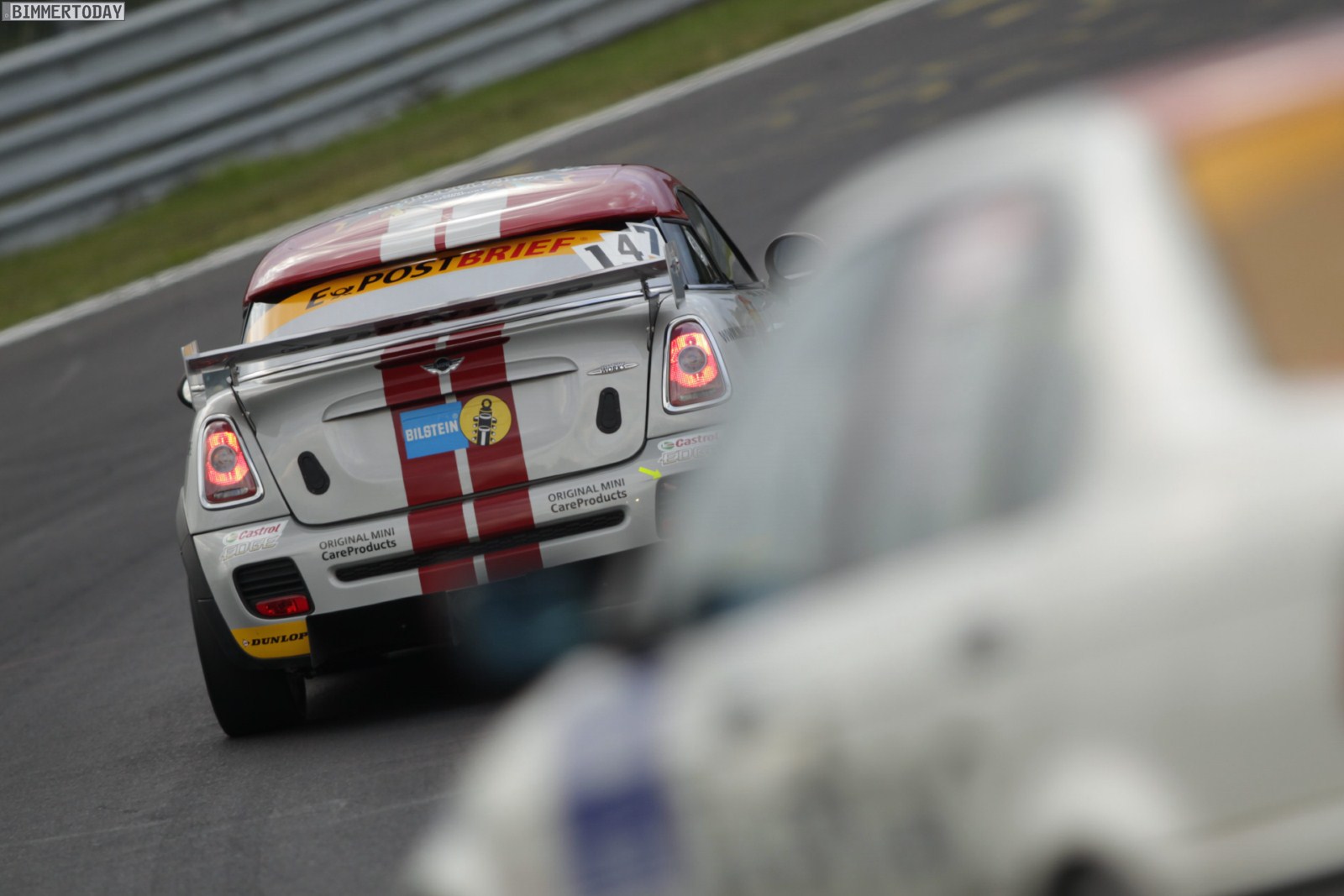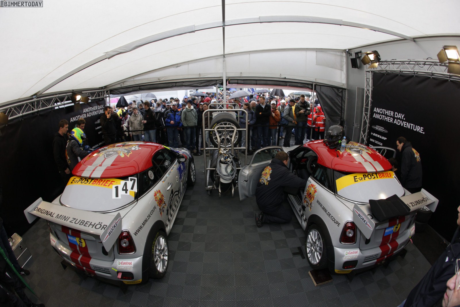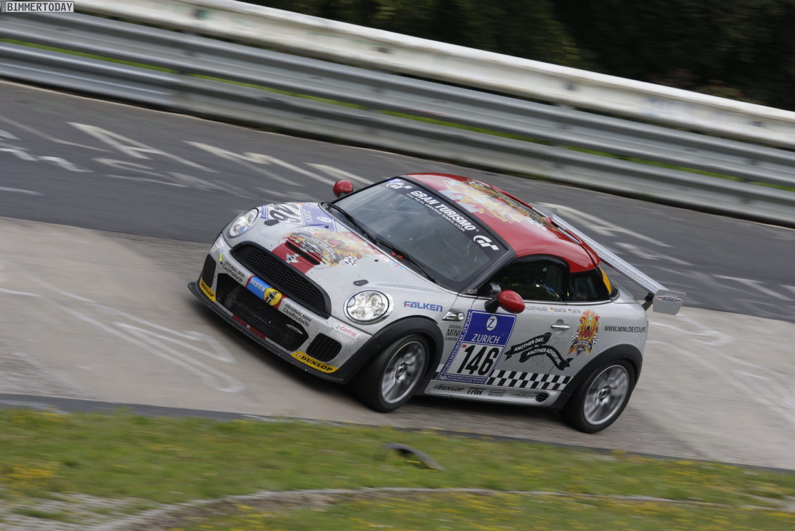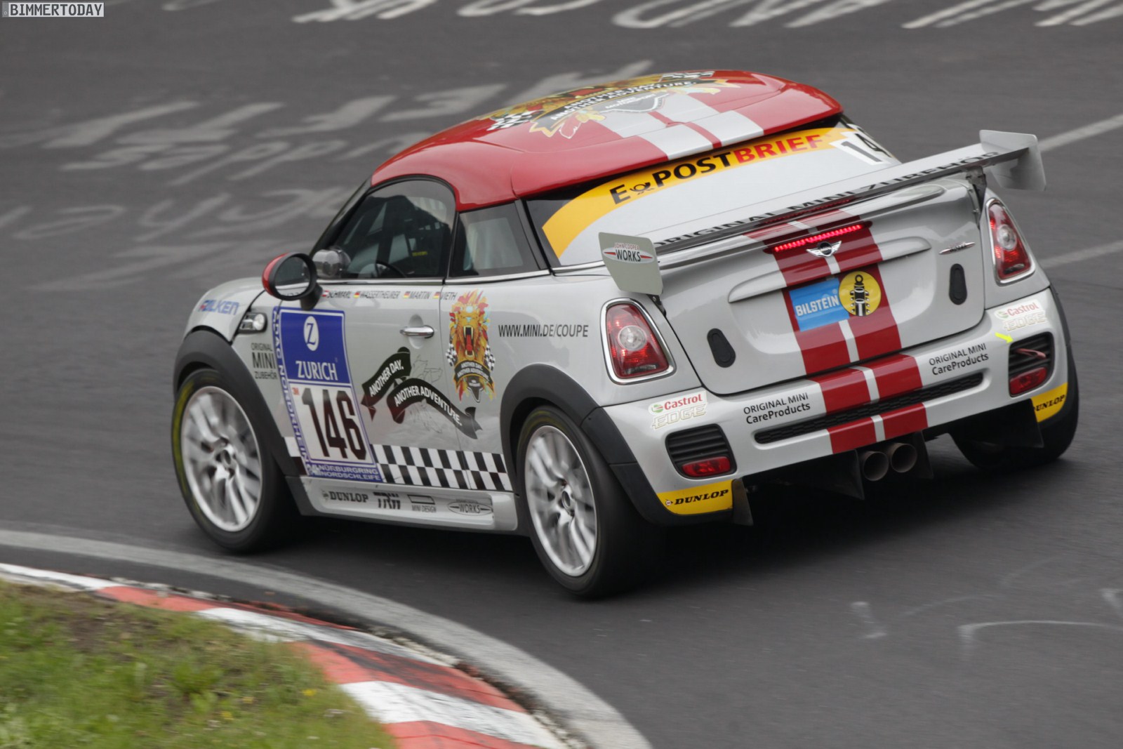 Neben den zwei von Schnitzer eingesetzten BMW M3 GT hatte die BMW Group noch zwei weitere Werksfahrzeuge beim 24 Stunden-Rennen am Nürburgring im Einsatz: Zwei MINI John Cooper Works Coupé Endurance mit 250 PS starkem Vierzylinder gingen mehr oder weniger ohne Vorbereitungszeit an den Start und sorgten für einen gelungenen und vor allem dynamischen ersten Auftritt des neuen MINI Coupé im Fokus der Öffentlichkeit.