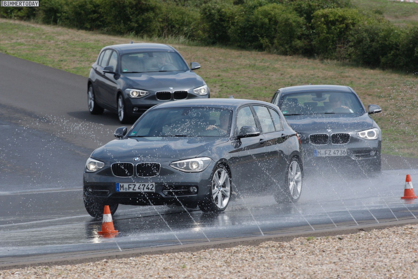 Wir werden einen der abgebildeten BMW 118i F20 mit 170 PS morgen testen und hoffen, dabei auch ein paar bewegte Bilder von den Fahrdynamikprüfungen einfangen zu können.