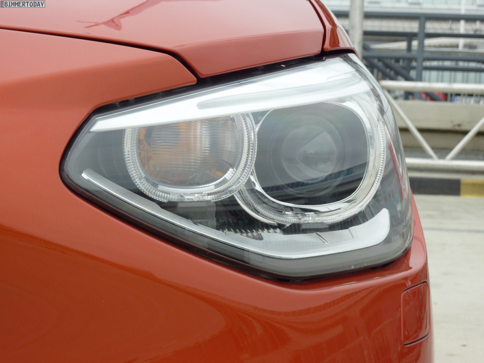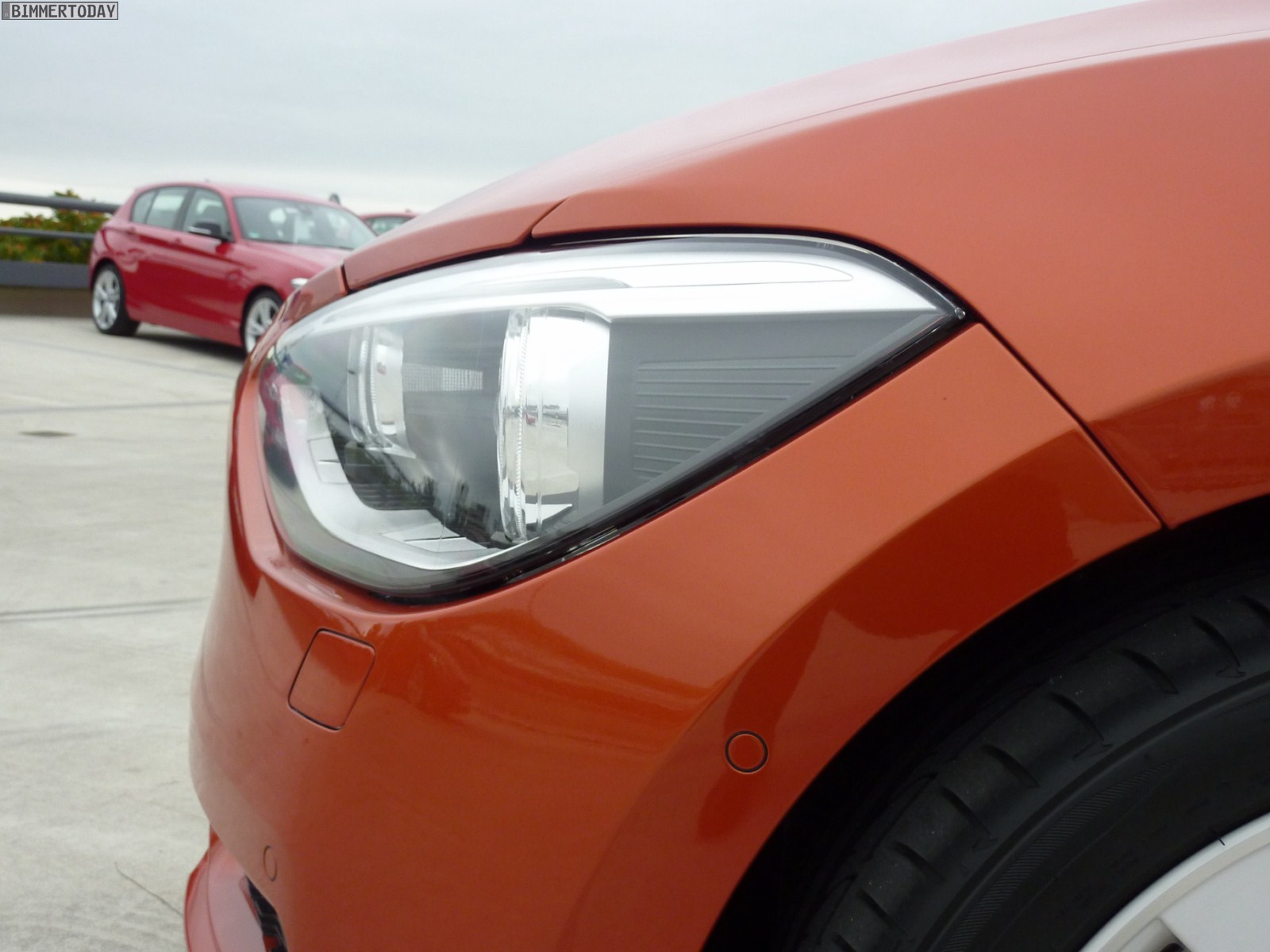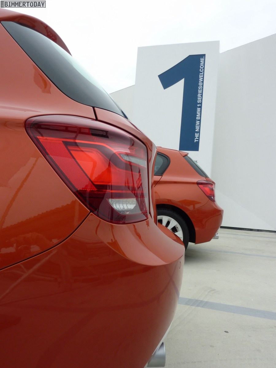 Der erste Eindruck völlig ungefiltert: Der BMW 1er F20 sieht in natura deutlich besser aus als man anhand von Fotos befürchtet. Die Fläche zwischen Nieren und Scheinwerfern wirkt deutlich weniger störend als auf Bildern und insgesamt sieht der F20 dynamisch und jugendlich aus. Das Heck nimmt man in der Praxis viel stärker als Evolution des E87 wahr und die Ähnlichkeit der Rückleuchten zum VW Polo fällt in der Praxis – wenn man die gesamte Heckpartie betrachtet und nicht nur die Leuchten – deutlich weniger ins Auge als auf Fotos.